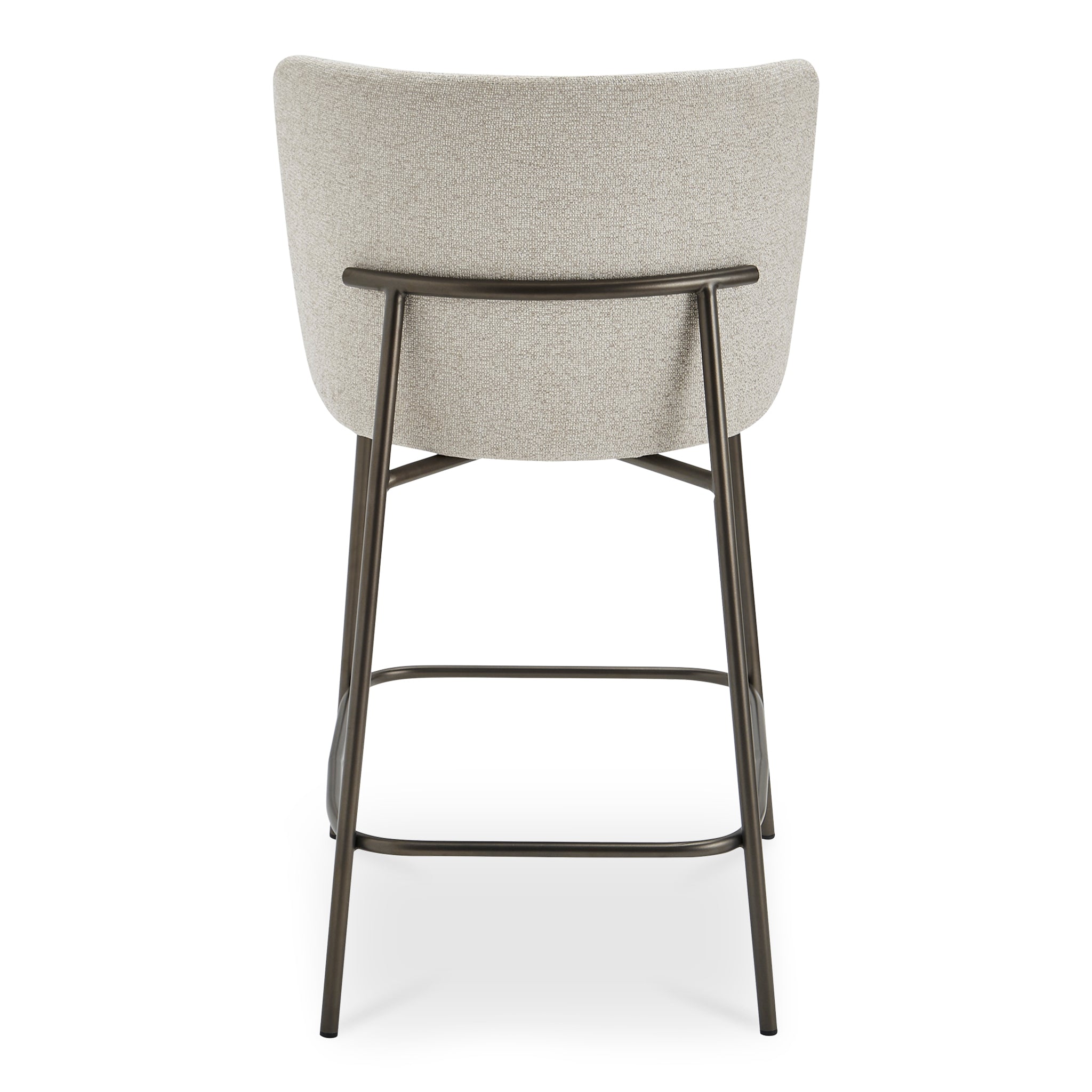 The Sterling counter stool is an elegant fusion of minimalist design and comfort that features a slim metal frame in a blackened bronze finish. Its seat and comfortably curved back are upholstered in durable, easy-to-maintain Performance fabric. It complements any dining setting, especially alongside wooden tables, presenting a clean, cohesive look that invites sophisticated ease.
