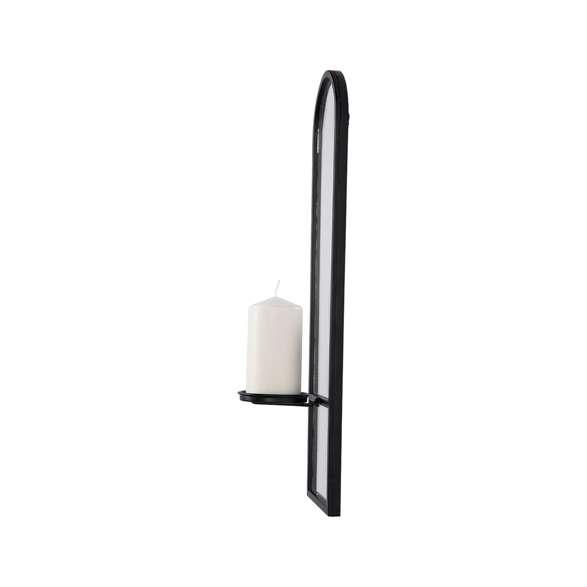 A wall candle holder with a mirrored back to reflect candlelight glow