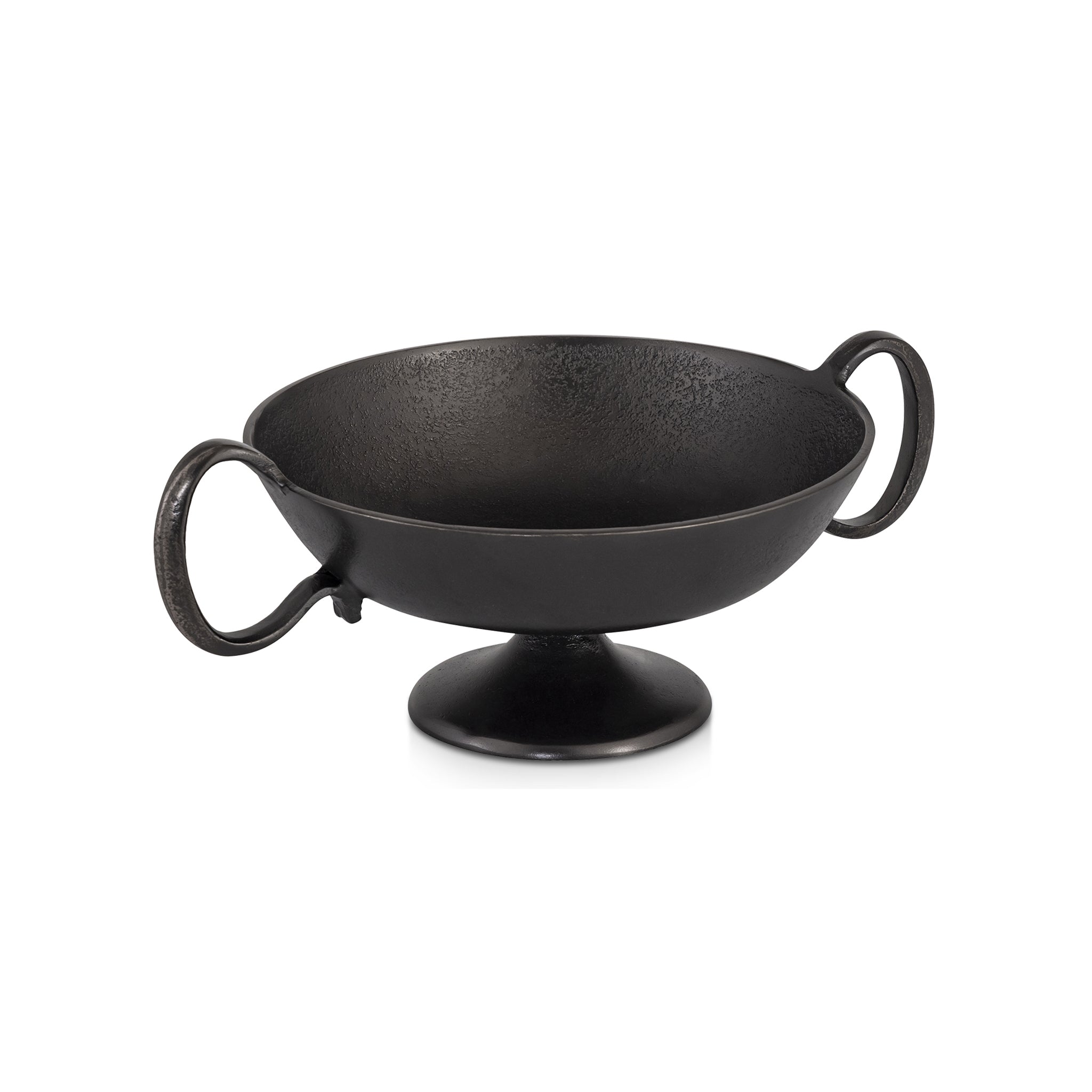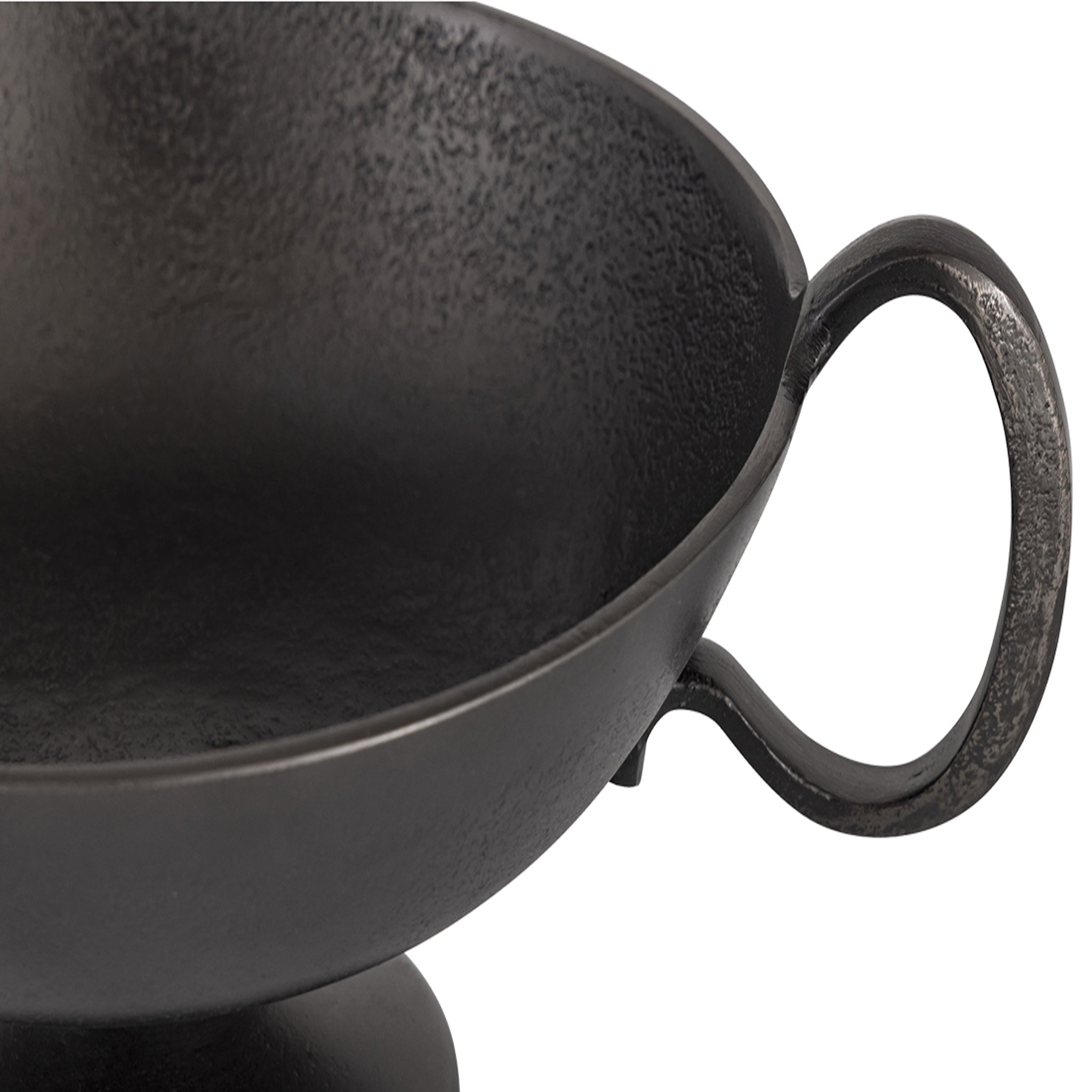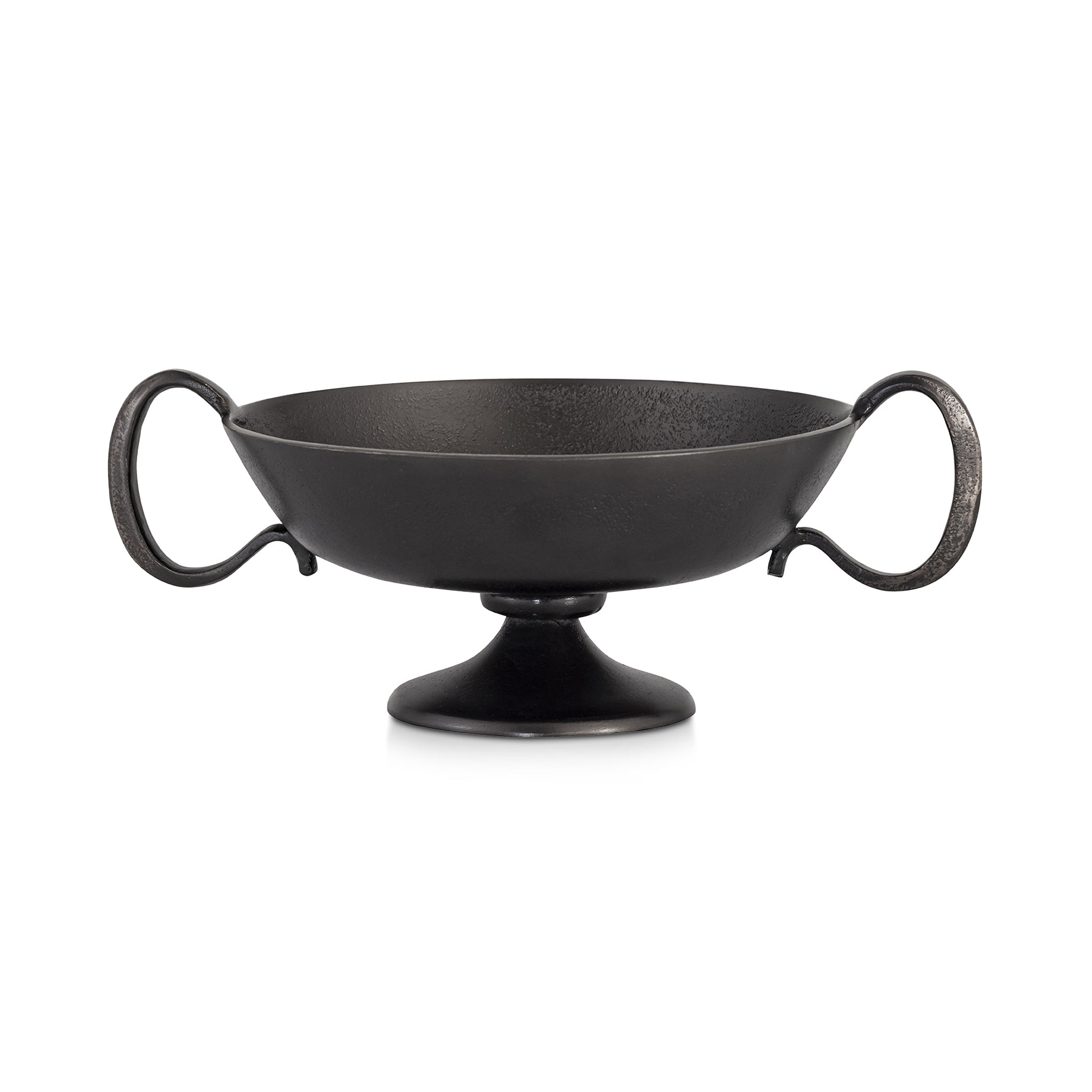A harmonious blend of vintage allure and modern elegance, the Florence decorative bowl's hand-poured cast aluminum boasts a rich, textured surface, evoking found relics of bygone eras. Art Deco inspired, the graceful curvilinear handles adds ornamentation to its artisanal character.