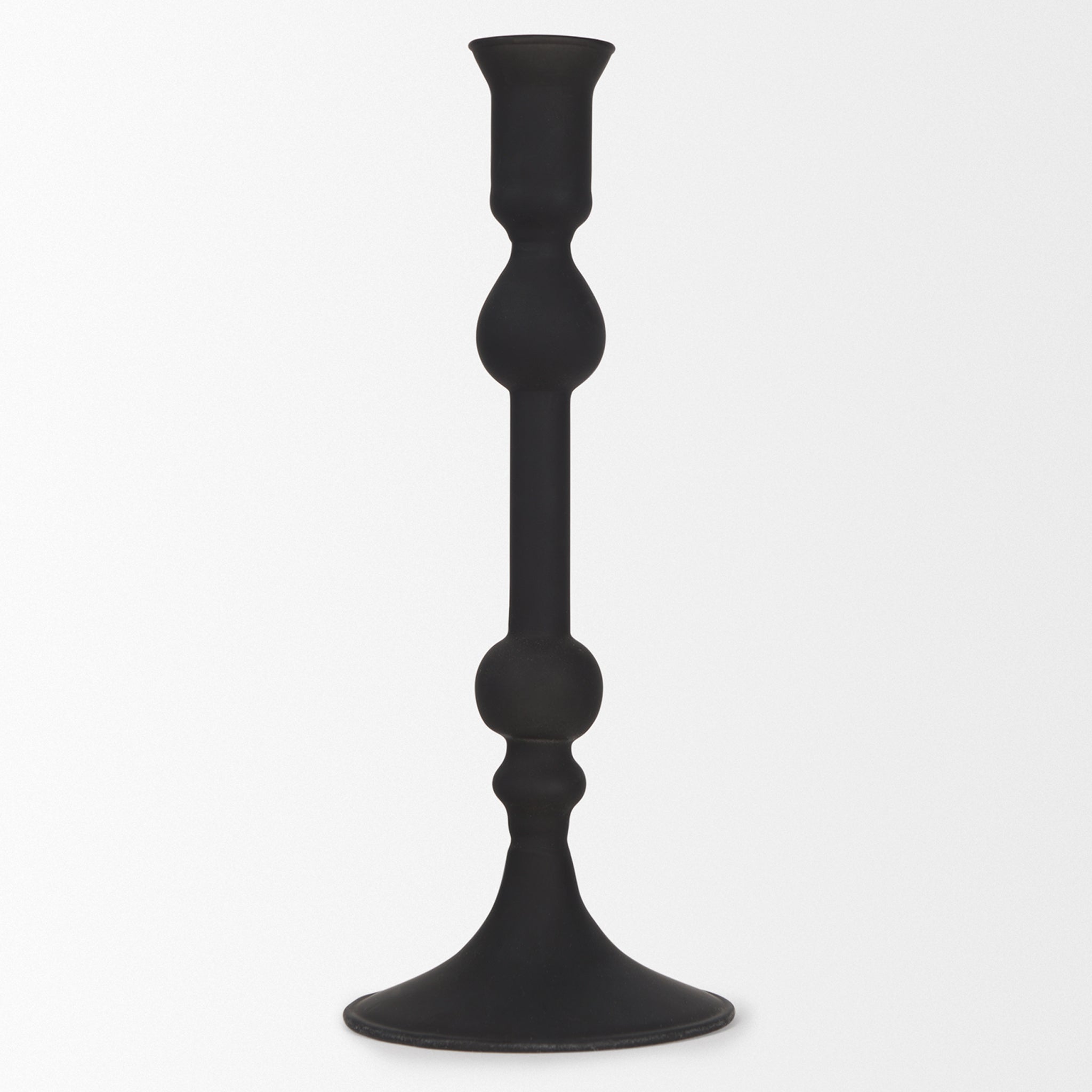 As part of our Hendrick candlestick collection, our medium-sized blown glass candle holder is perfect to pair with our small and large ones. The Hendrick Medium Blown Glass Candlestick is a symbol of refined simplicity and contemporary design, and the lightweight, finely blown glass gives it an air of delicate sophistication. Its matte black finish also gives it a modern aesthetic, which will blend seamlessly with any type of home design. This candlestick collection sets the stage for an ambiance of warmth and style in your home, making it an elegant and versatile addition to your interior design.