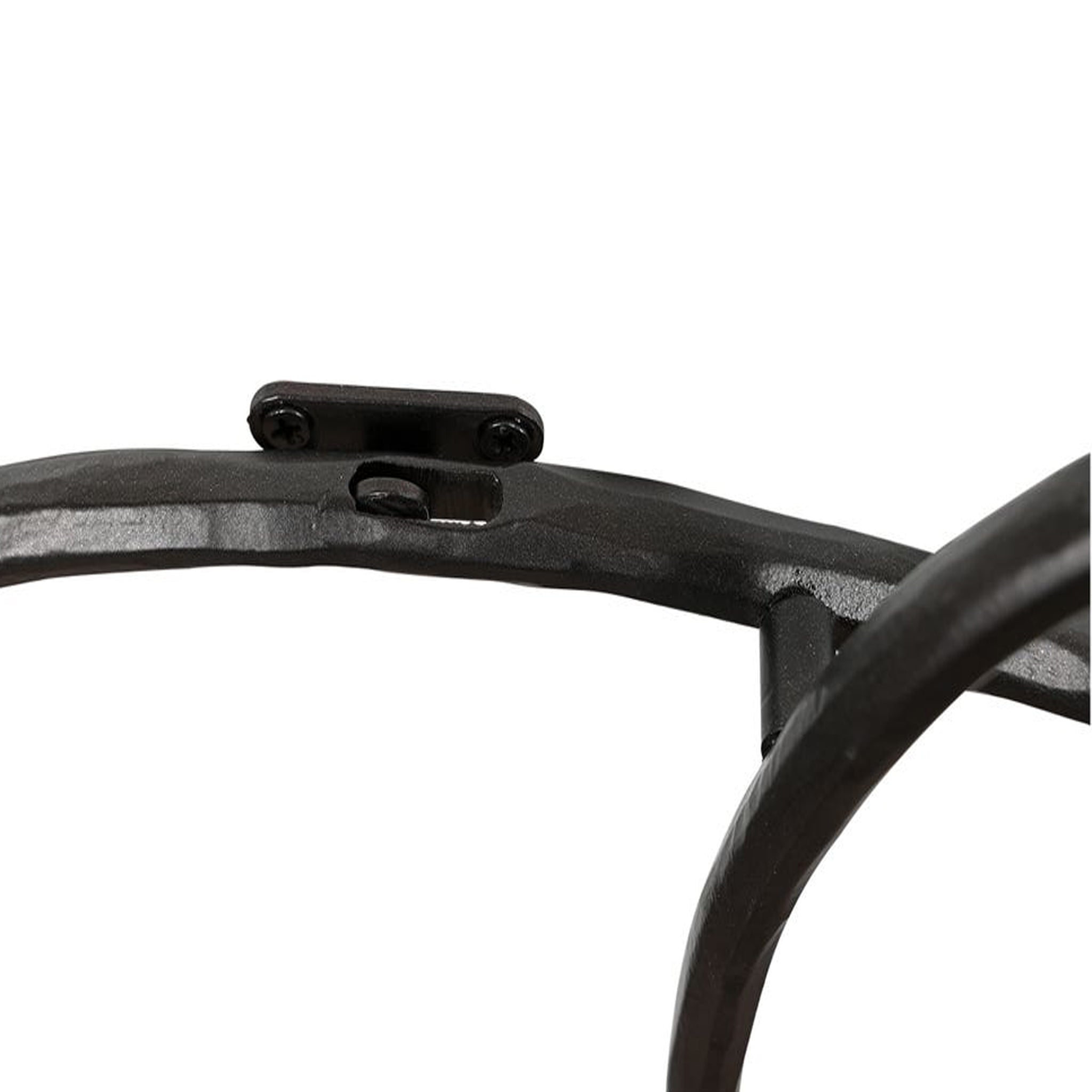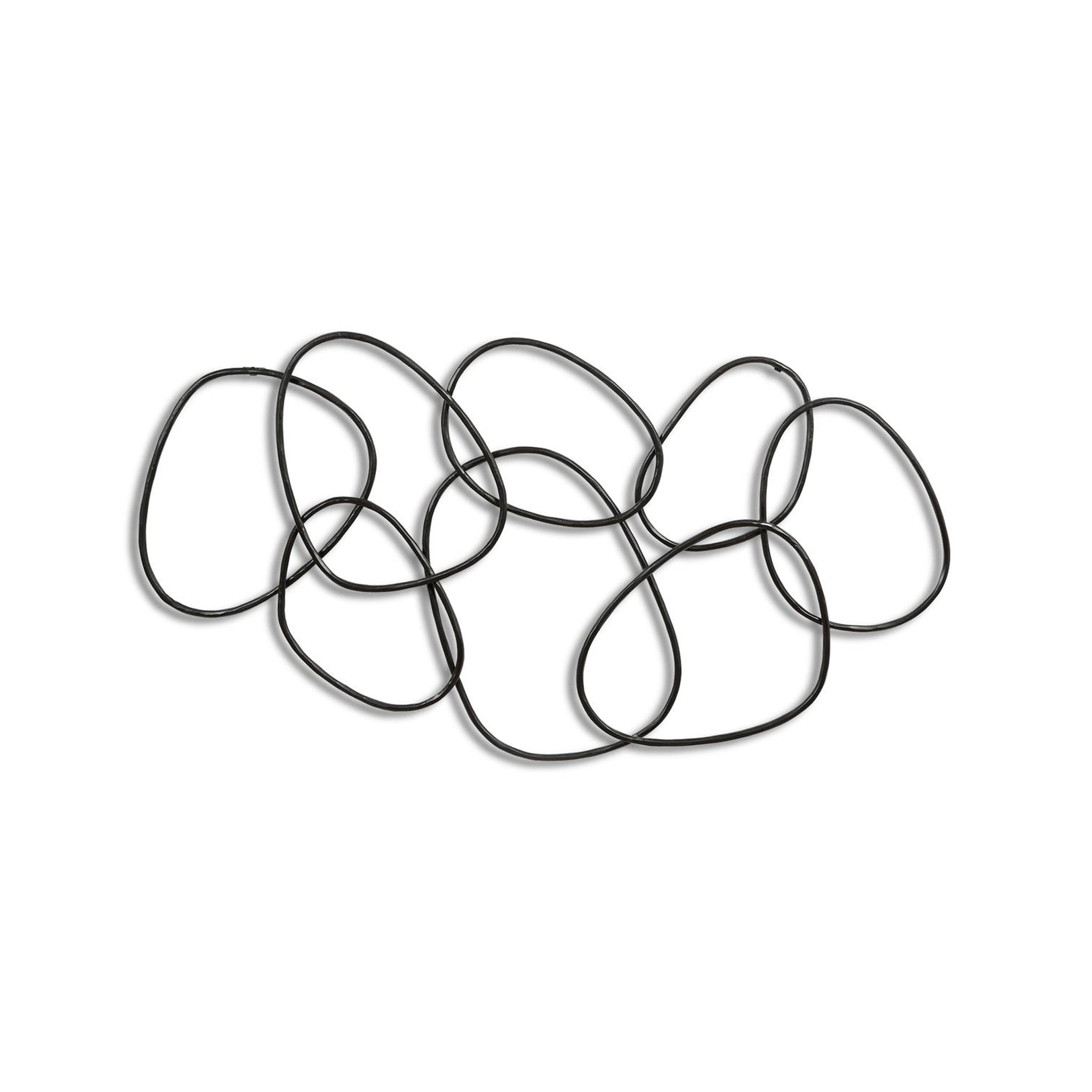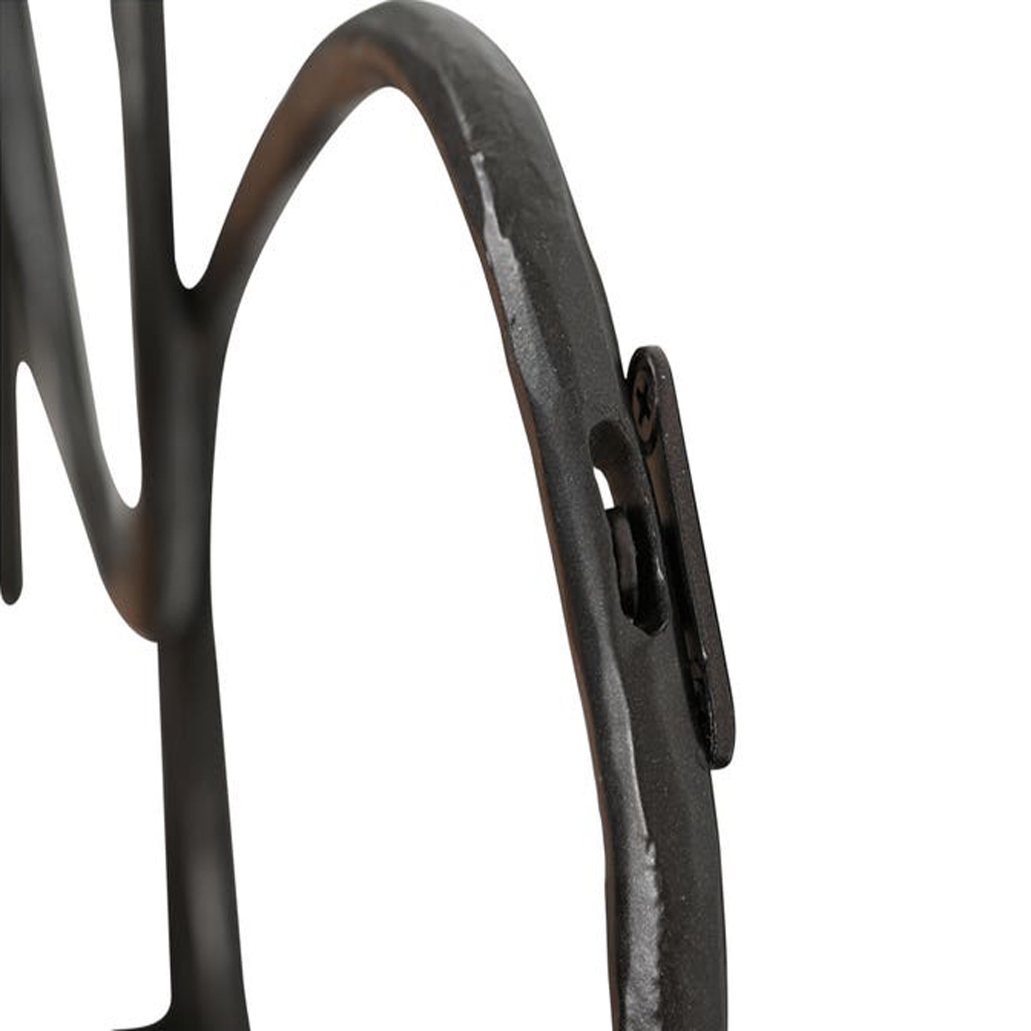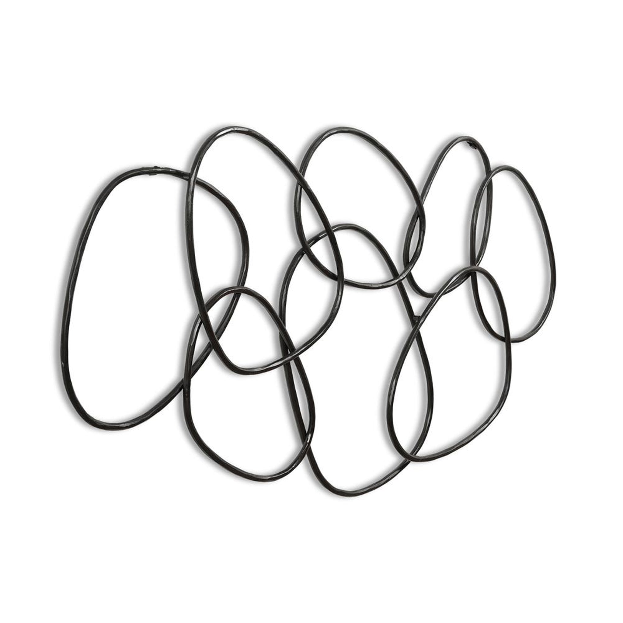 Wall decor features interlocking rings of iron work, combining form and shadow, evoking sun-kissed pebbles on a serene shore. Meticulously hammered and finished in antique bronze, this substantial piece bridges contemporary and classic styles with effortless grace.