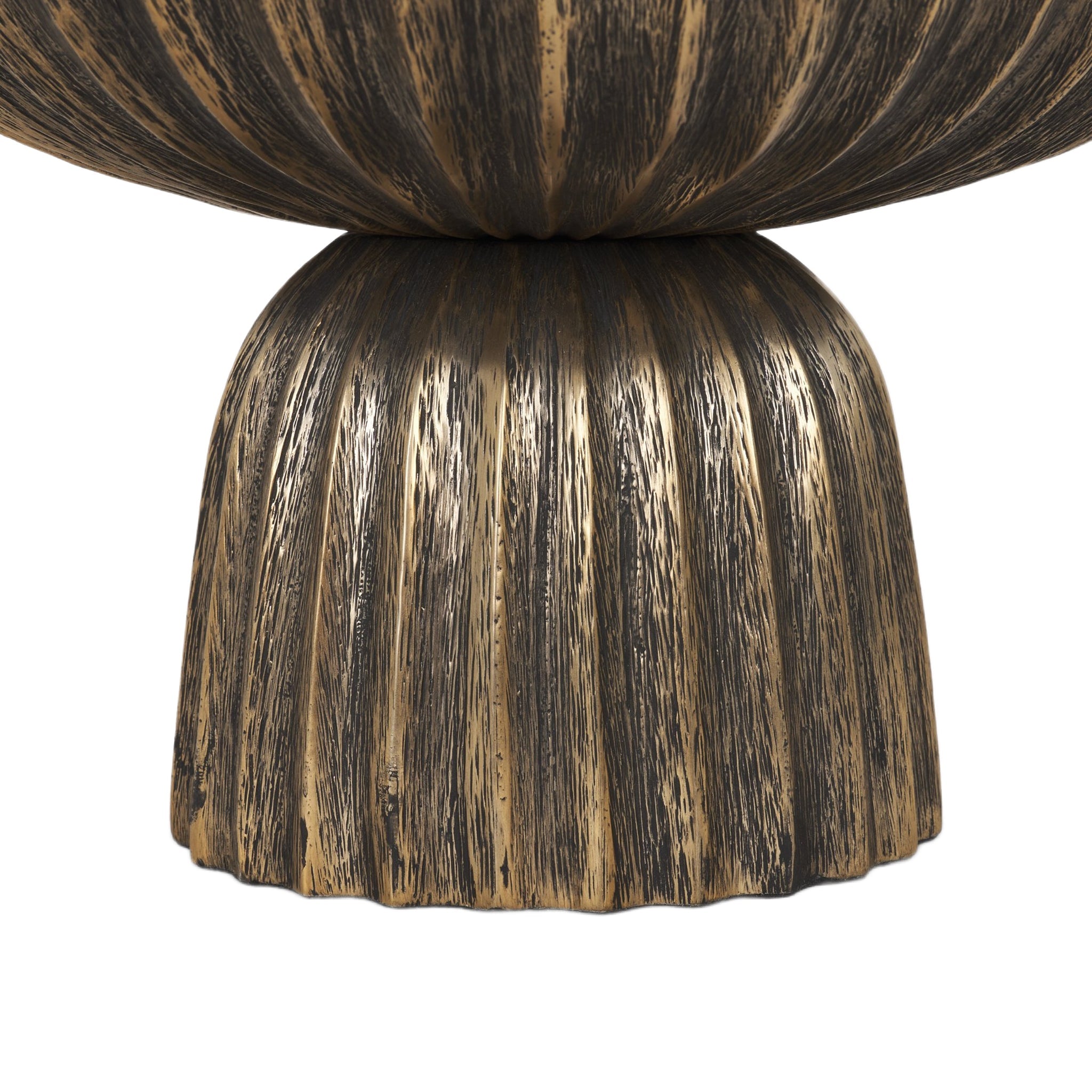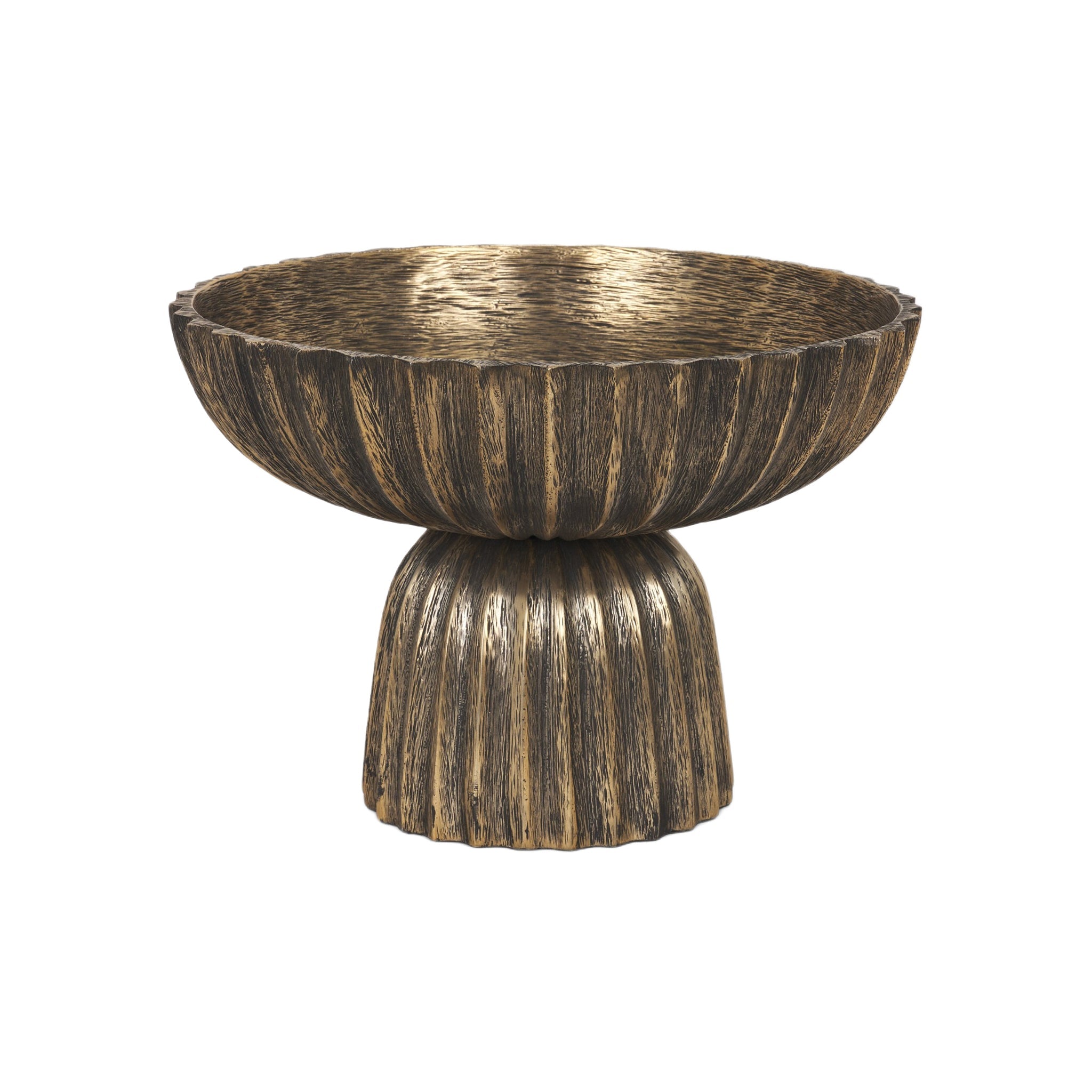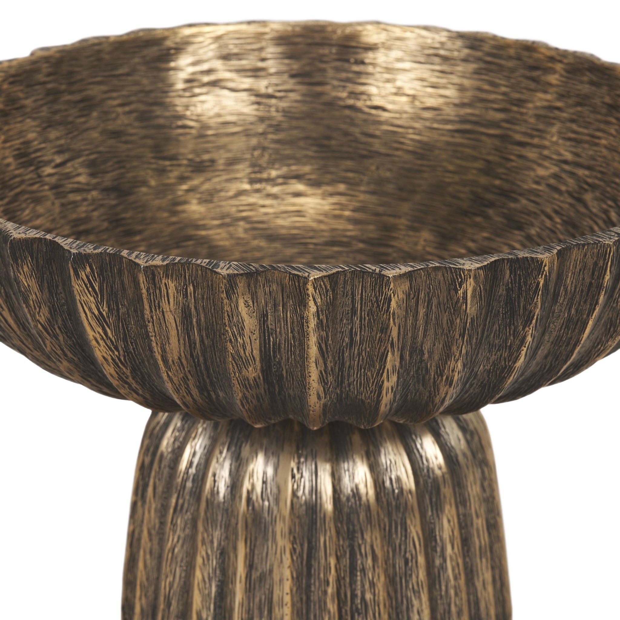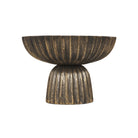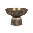 The Palmer Decorative Bowl features a ribbed, sculptural form crafted from metal and finished in a heavily distressed antiqued gold, offering vintage character with timeless appeal.