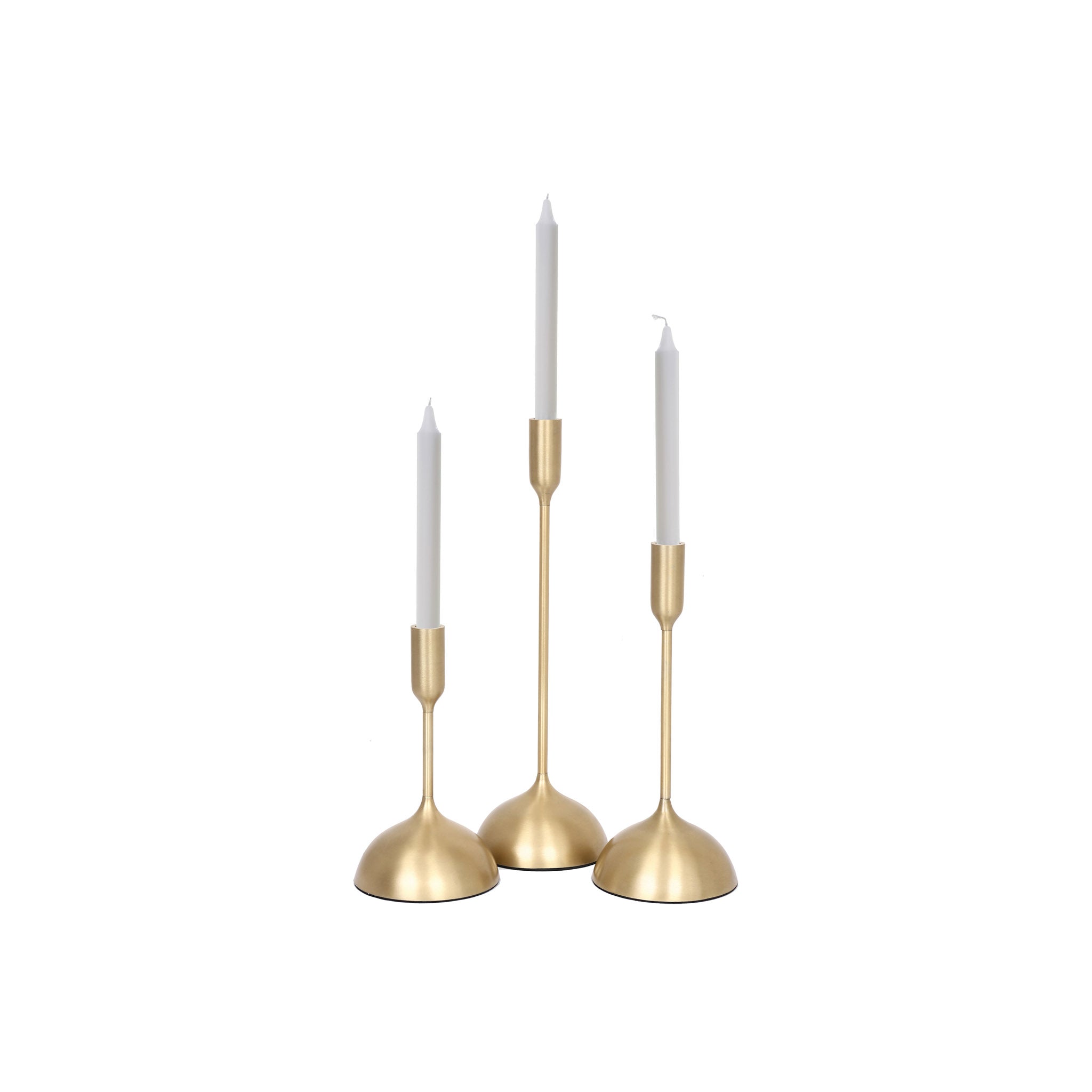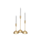 Contemporary opulence enters the mid-century dining room with these aluminum candle holders. Bringing light through function and design, the gold leaf finish radiates when candles are set aflame.