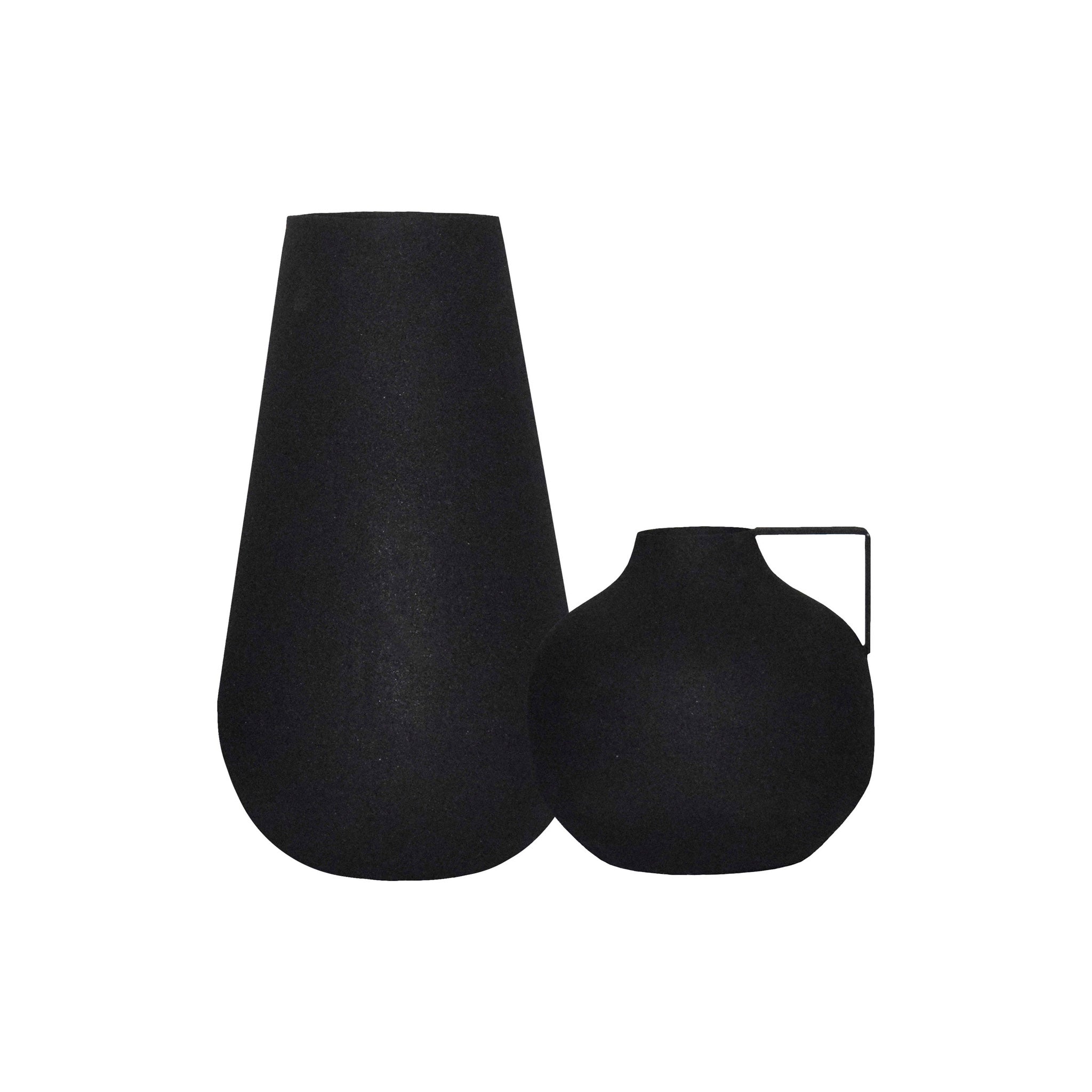 Whether set in the industrial interior or the modern living space, this set of vases will complete the aesthetic appeal. While both styles are traditional at first glance, the powder-coated Iron build and textured Matte Black finish bring a contemporary touch. The differing heights bring variety to the display.