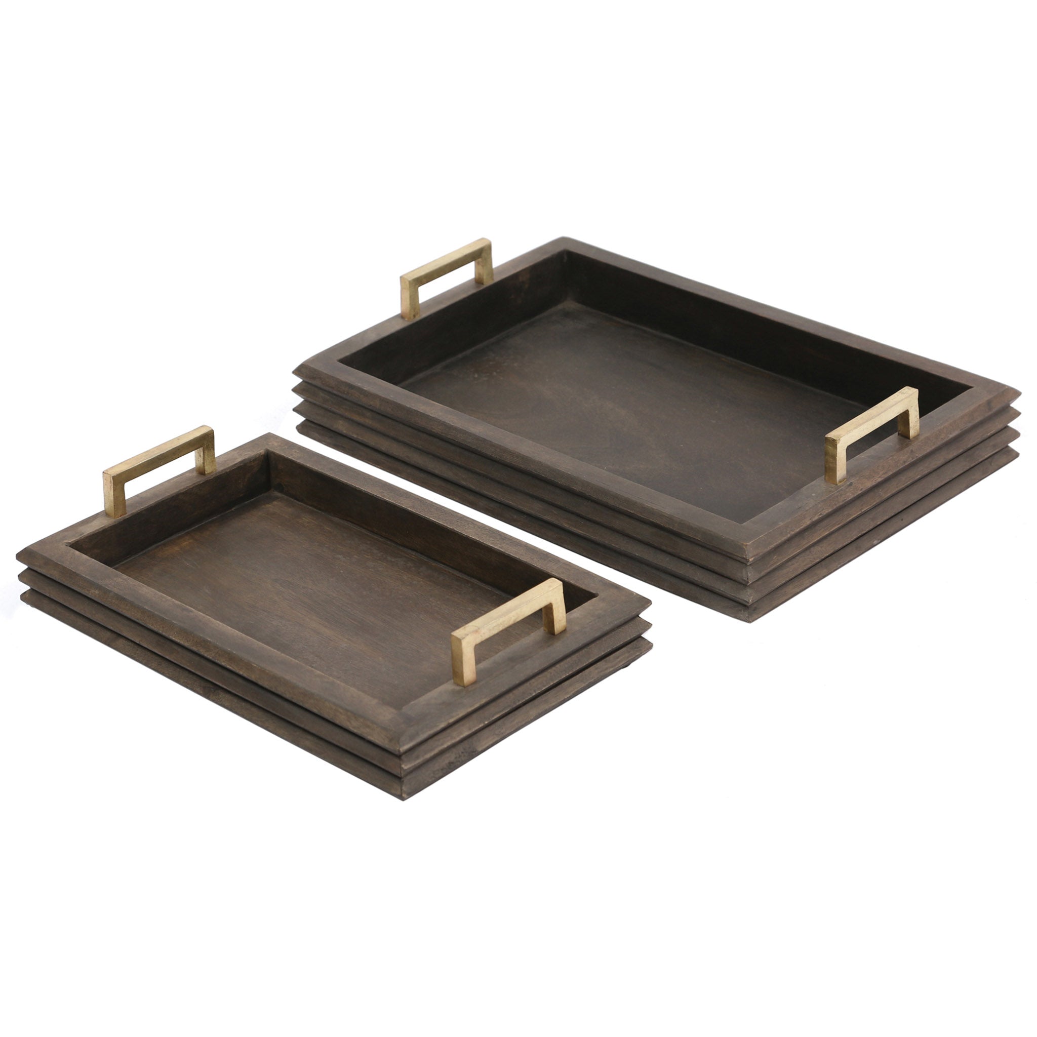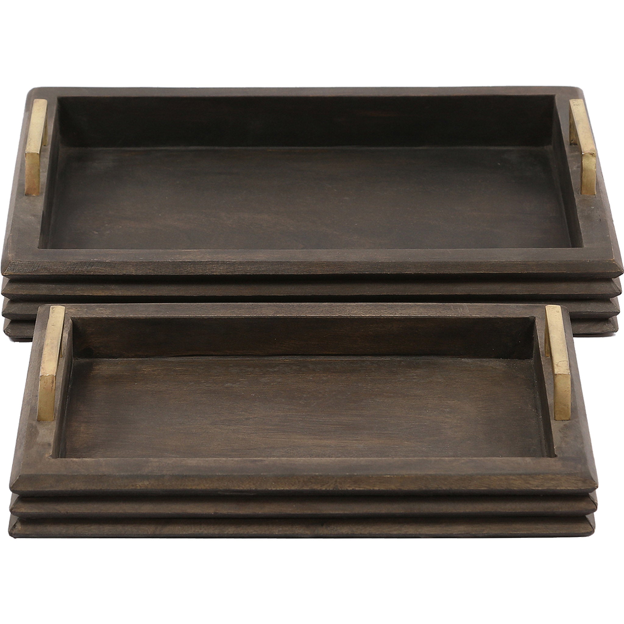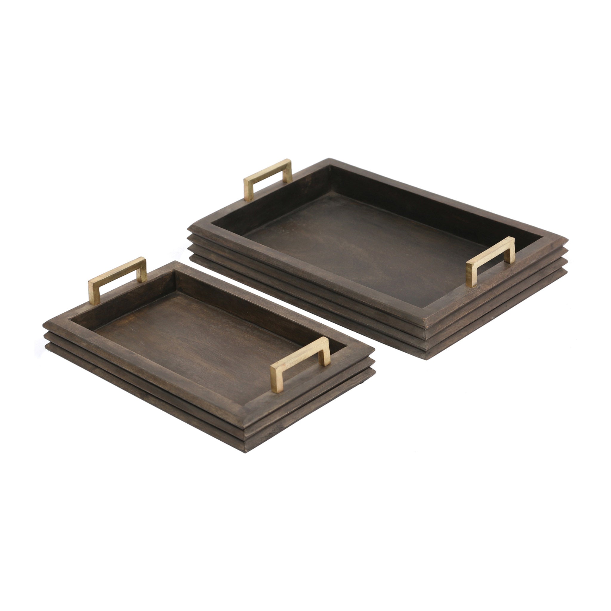 Practical and polished, this set of trays will be put to great use within the contemporary home. The large base makes them equally suited for decoration and duty. While the dark Mango Wood feels dramatic, the simple design helps strike a perfect design balance.