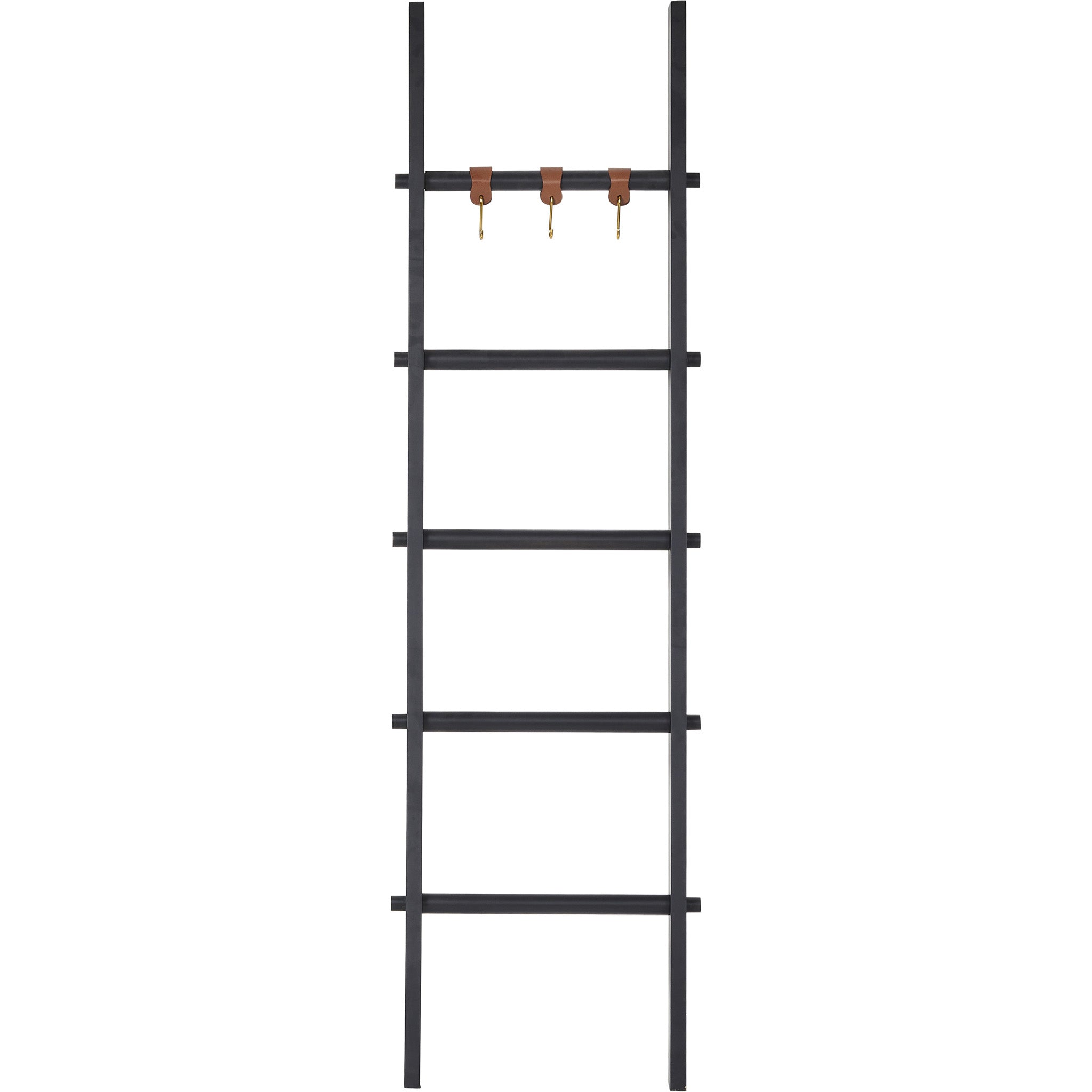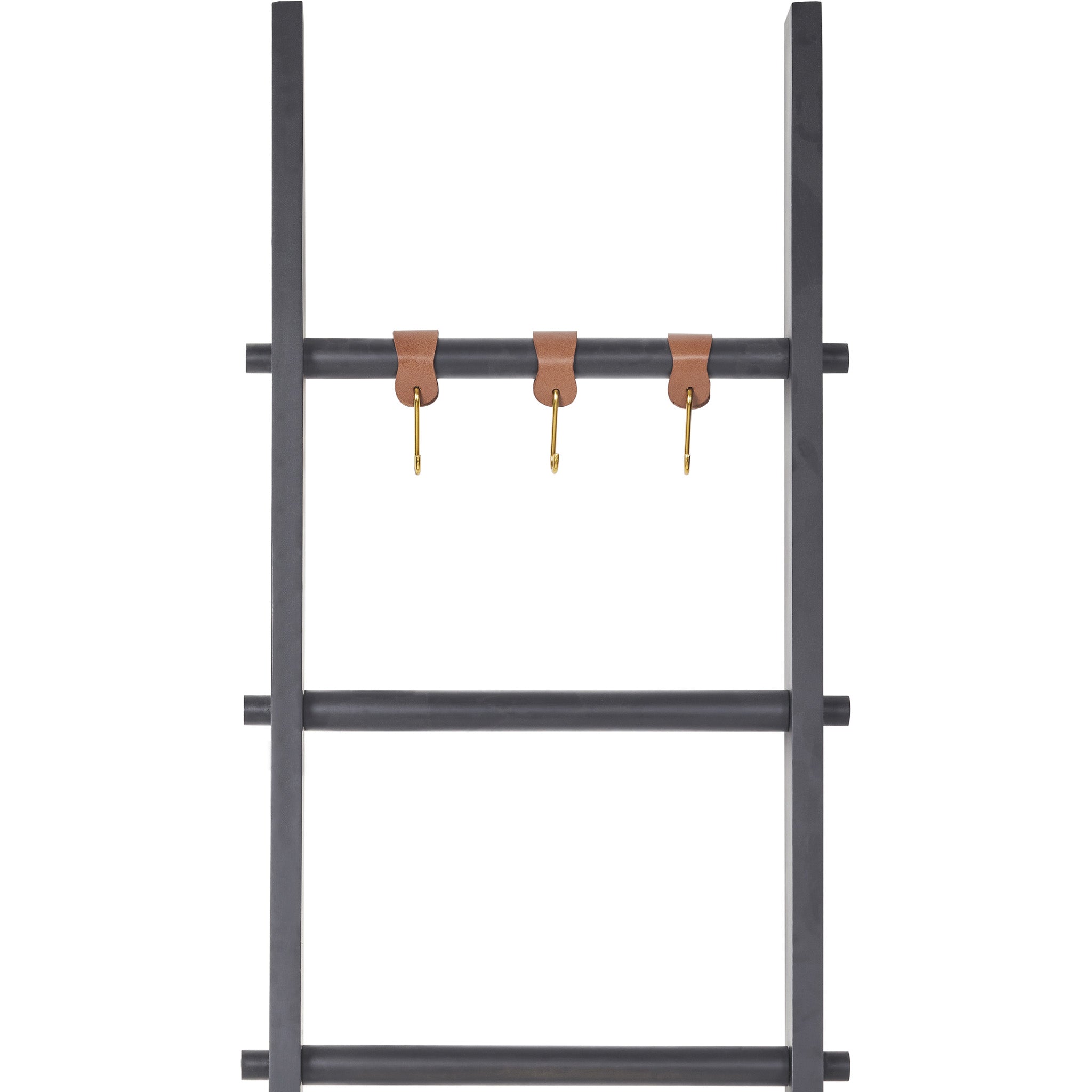 The ultimate comfort accessory finds its organizational match in the Marcus Decorative Ladder. Fit for the mid-century modern or industrial interior, its black painted mango wood build, cognac-toned leather straps and antique brass-plated aluminum hooks become a trifecta of style within the space. Whether holding throw blankets or standing solitary, its grand 72-inch-tall frame, creates a lasting impression at every pass.