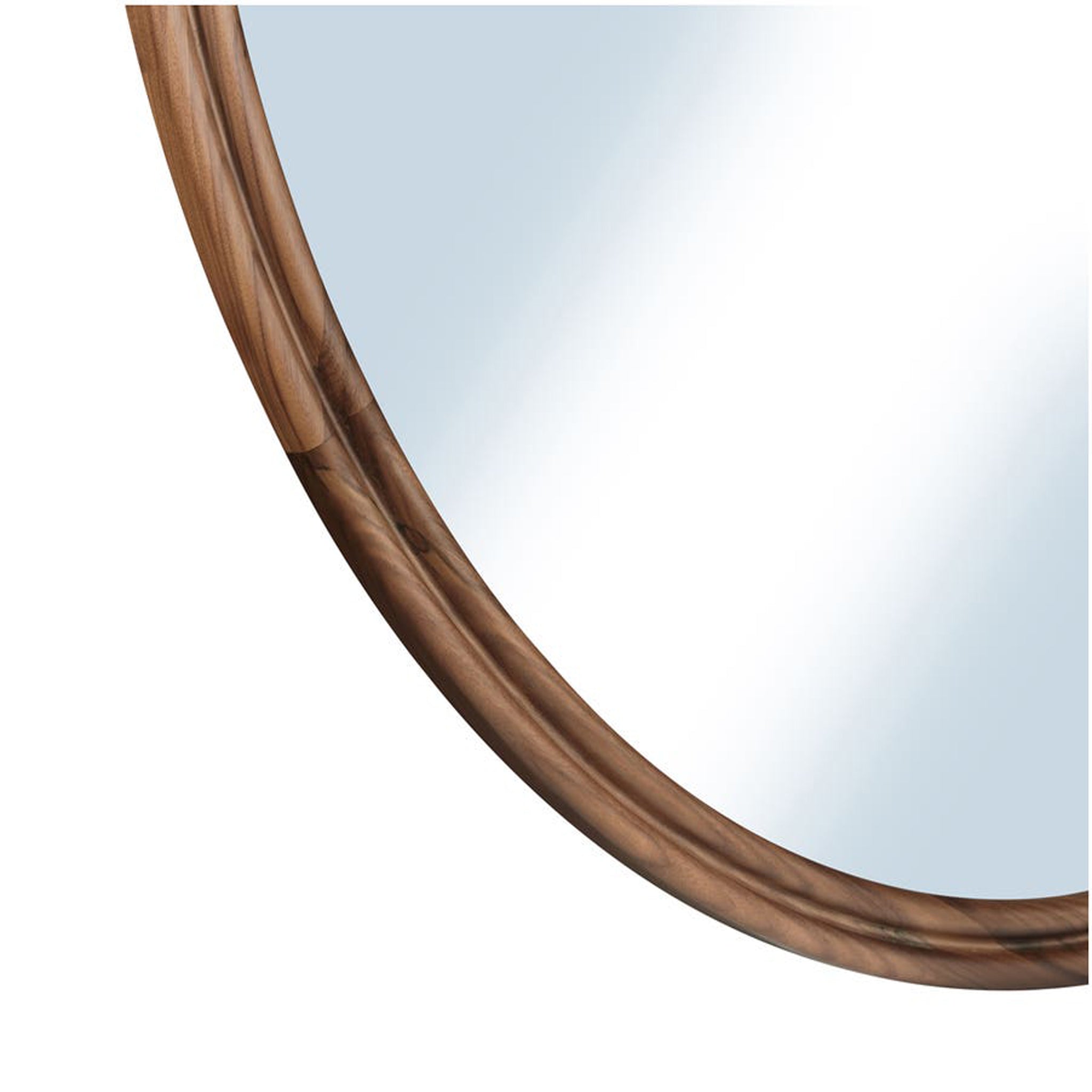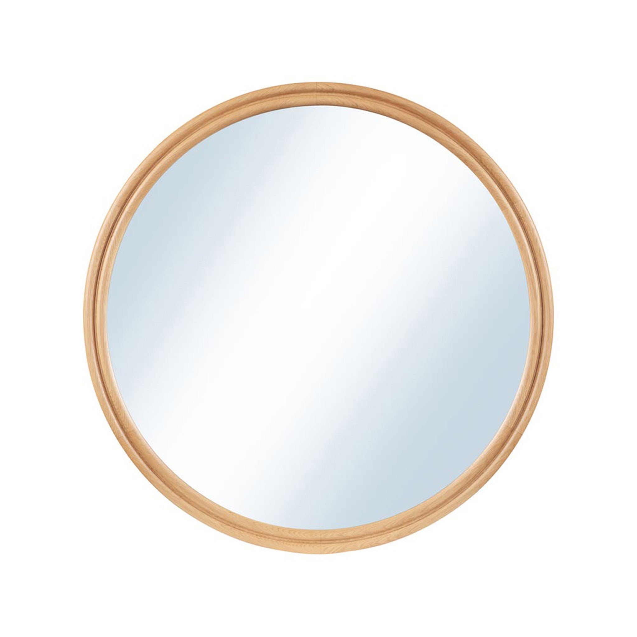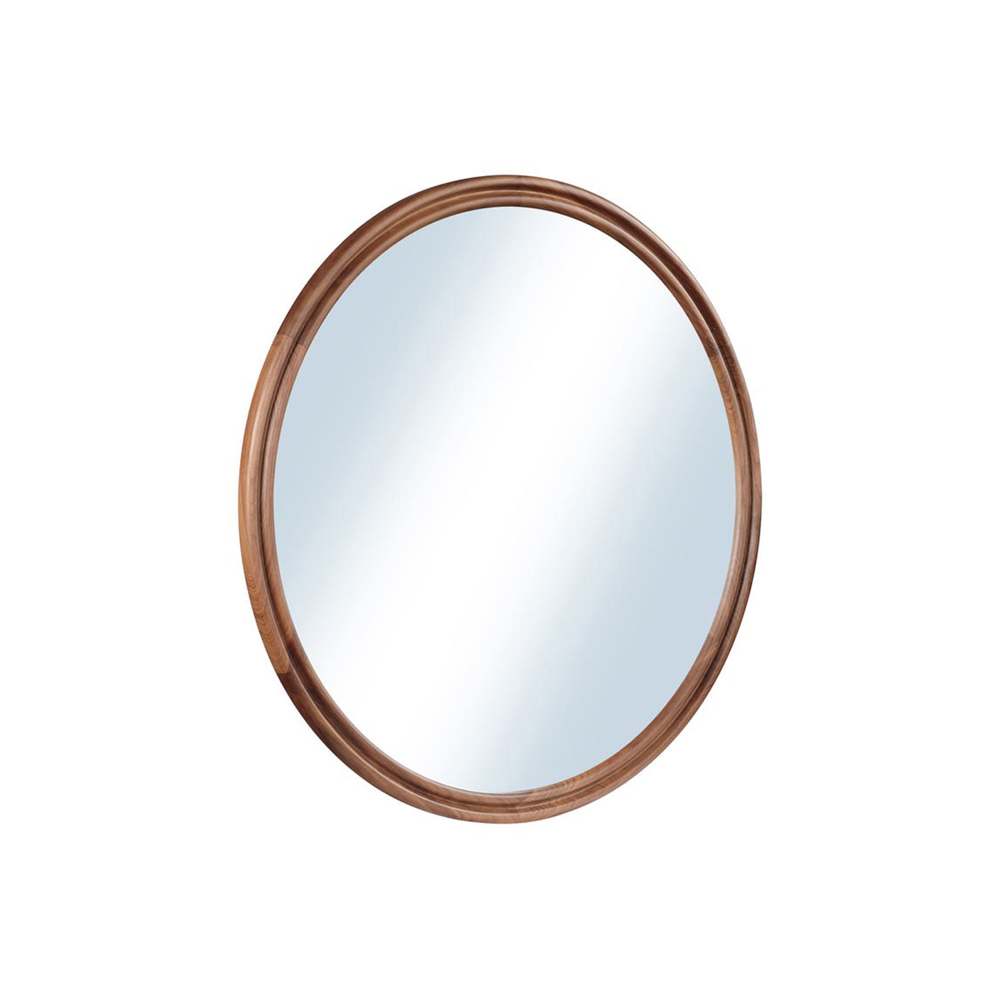 The Baxter round mirror celebrates wood's inherent beauty with a thoughtful double-frame detail. Each mirror showcases the meticulous finish, enhancing the wood's rich, warm tones and creating a serene focal point in entryways, bedrooms, or living areas.