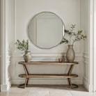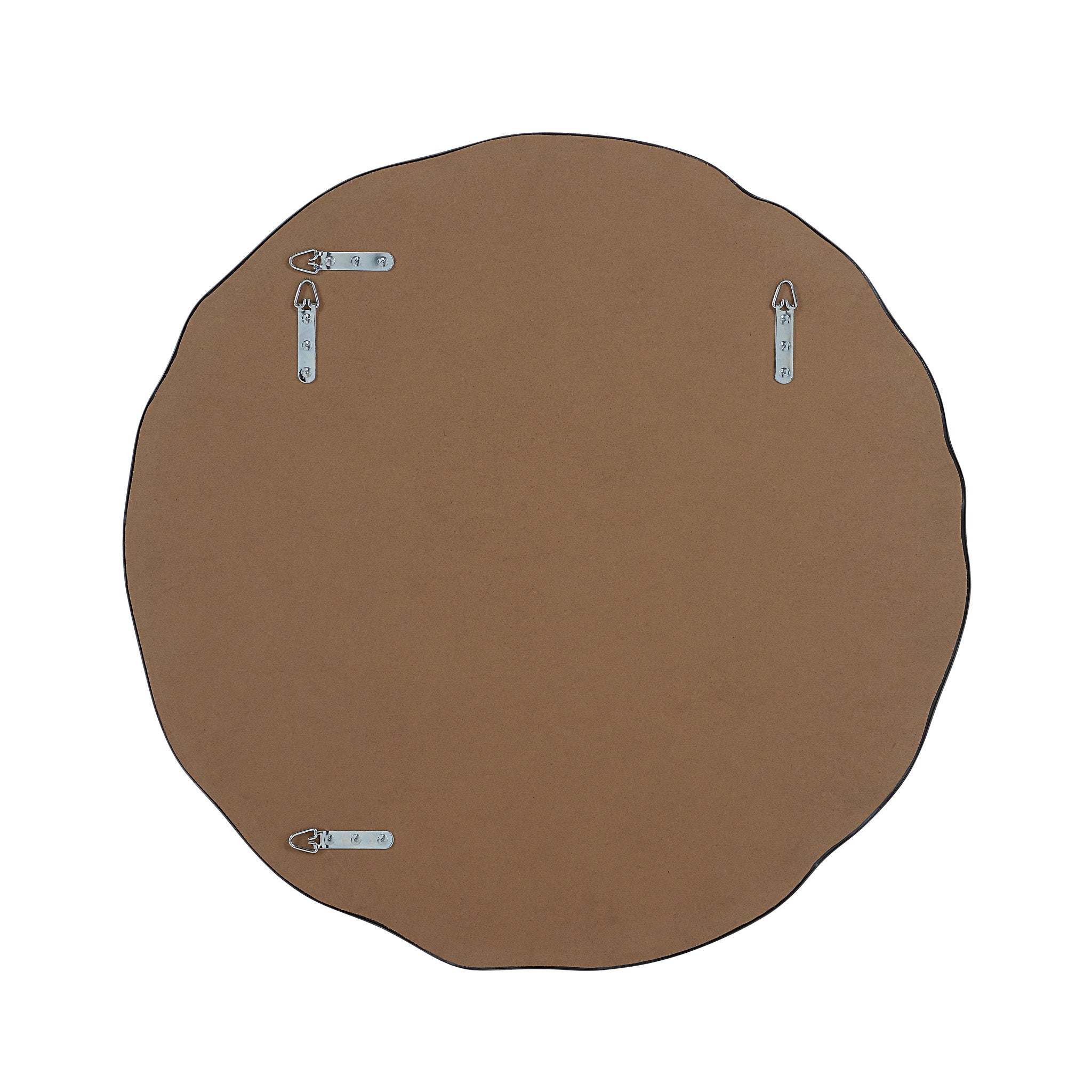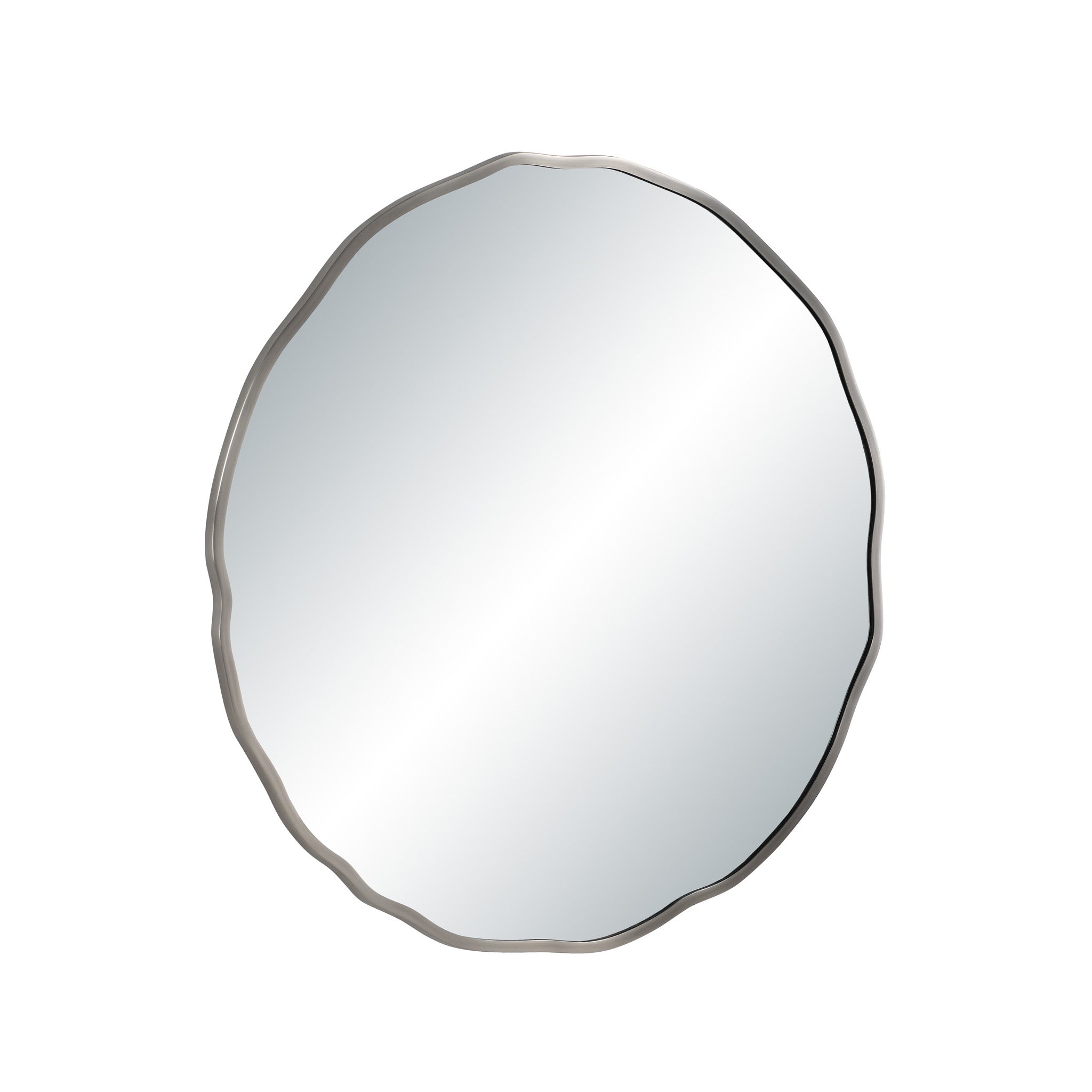 Bring whimsy and style to any interior with this irregularly shaped round wall mirror. Measuring 30" in diameter, it's perfectly sized for displaying on its own or as part of a gallery wall. A brushed nickel frame provides durability and high-quality mirror glass ensures a distortion-free reflection for years of use.