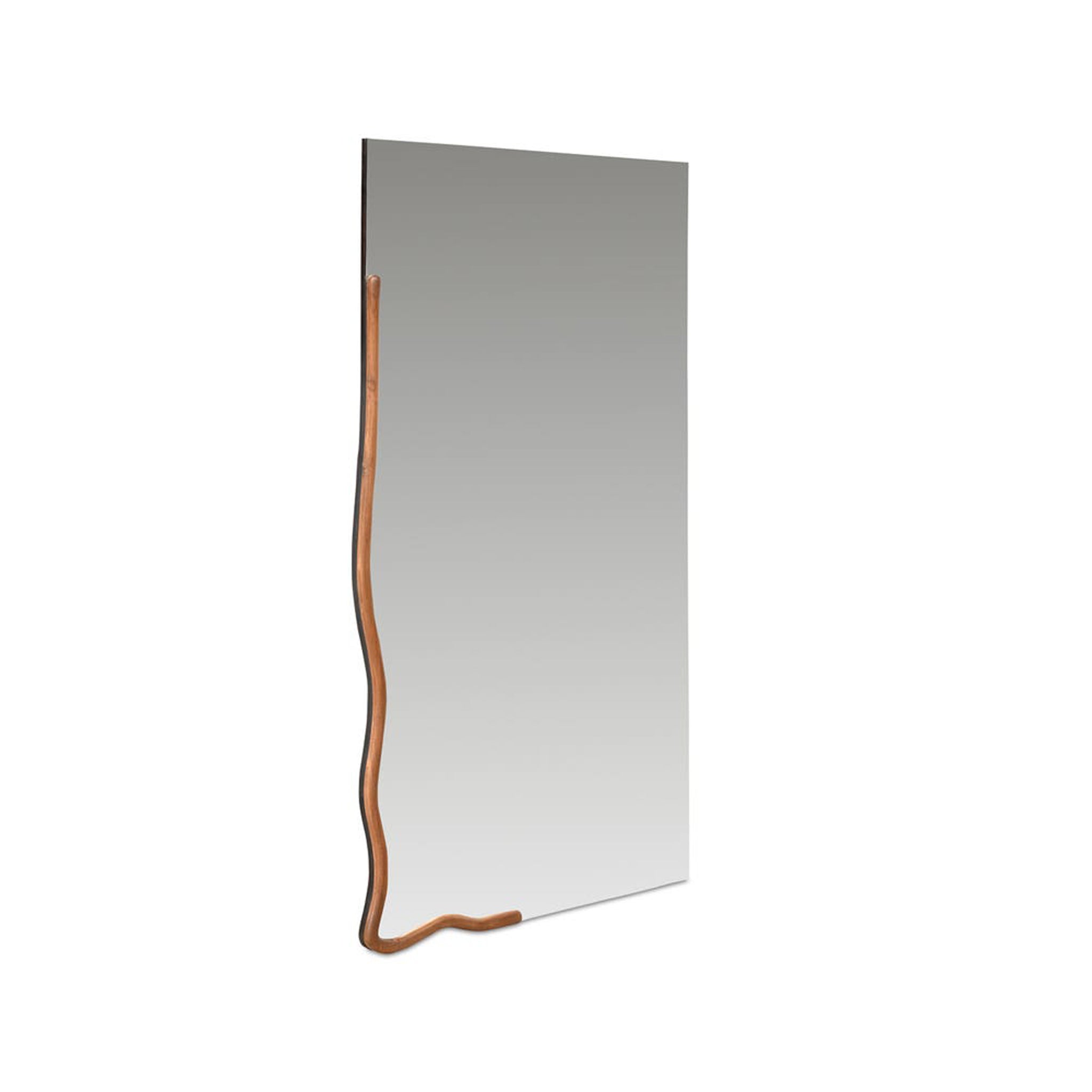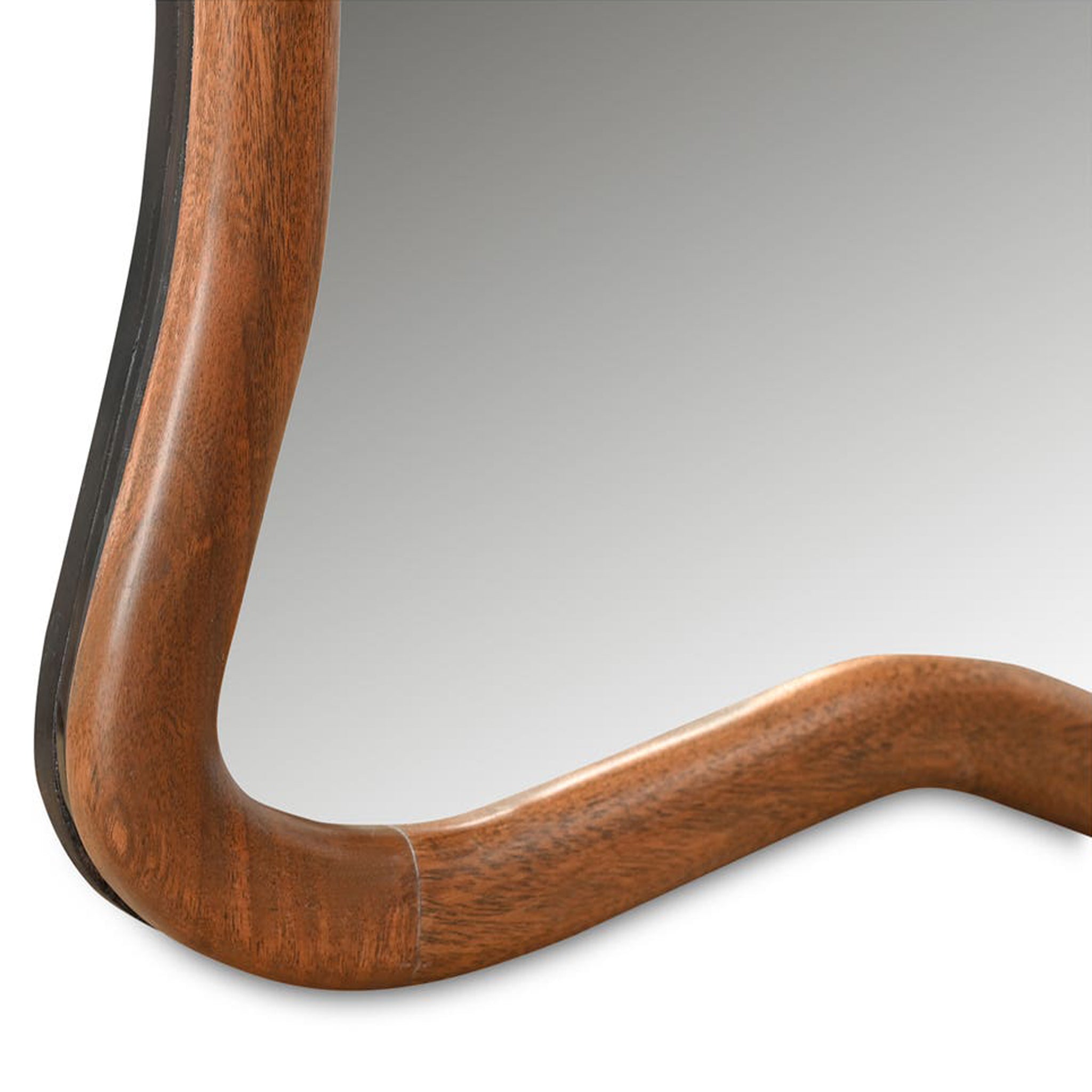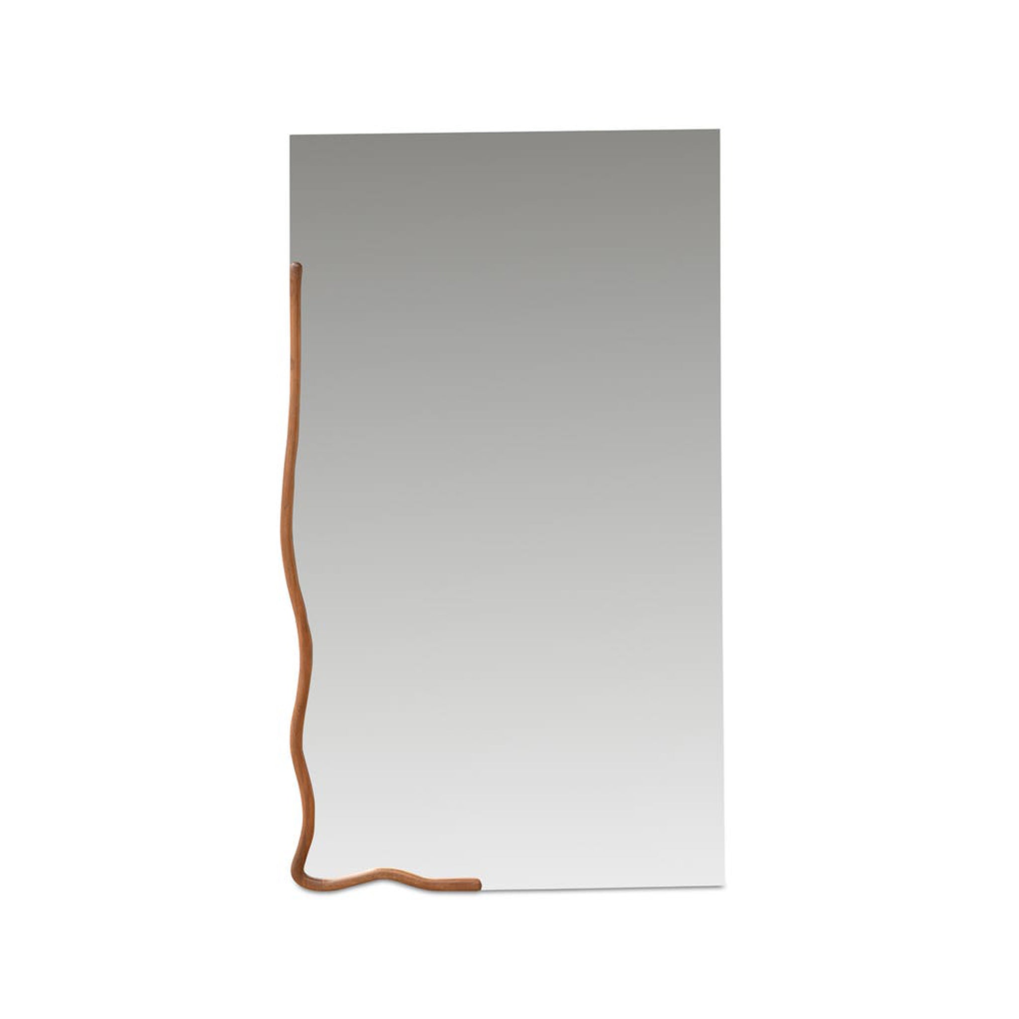 The Luisa mirror marries minimalist elegance with a touch of whimsy. Crafted from Acacia wood, it presents a mid-century charm through its warm tones and contemporizes with a playful squiggle detail on one-third of its frame. This design choice ensures the Luisa stands as a piece where light, form, and playful sophistication converge.