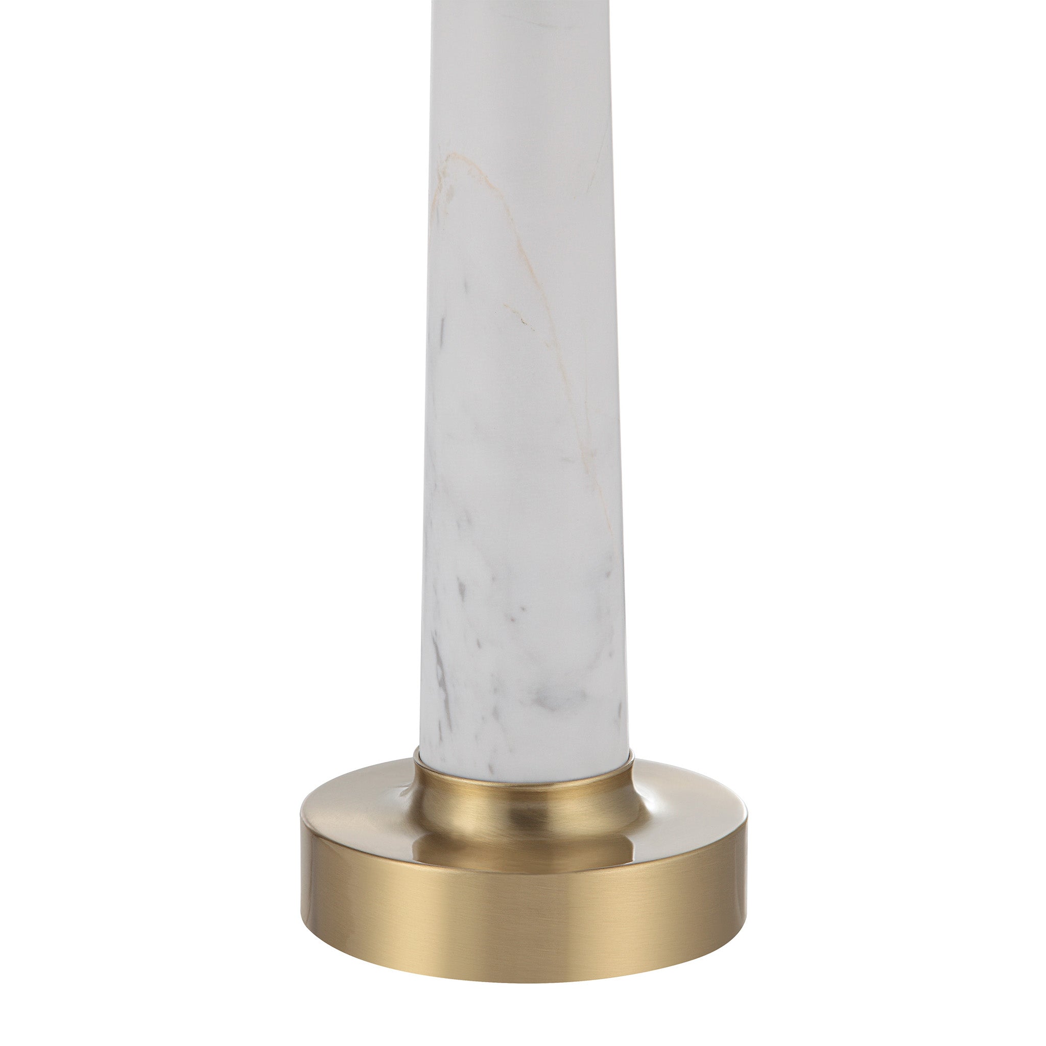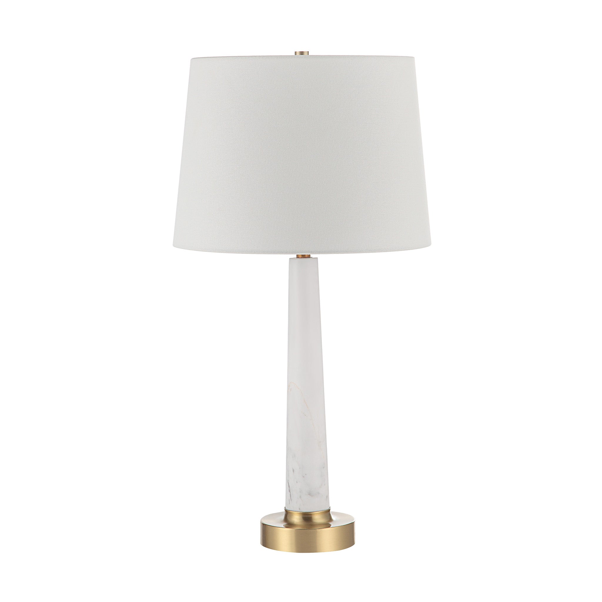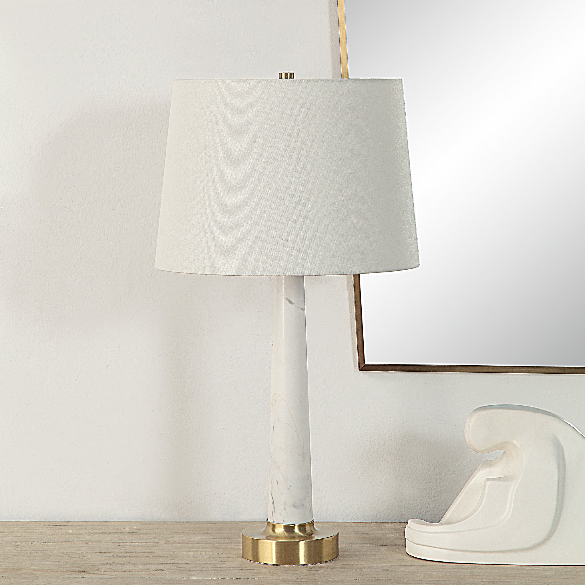 Experience a touch of elegance with the Kennedy 26 Tall Satin Brass Iron Table Lamp. The sleek satin brass finish complements the tapered linen cream shade perfectly, creating a warm and inviting ambiance in any room. Equipped with a dimmer socket, it allows for customizable lighting to suit any mood or occasion. The sturdy clear cord ensures lasting performance and adds to the lamp's overall clean design. Supporting bulbs up to 100W, this lamp ensures compatibility with a wide range of lighting options. The lamp's tall height allows it to provide ample lighting, making it perfect for reading or creating a cozy ambiance.