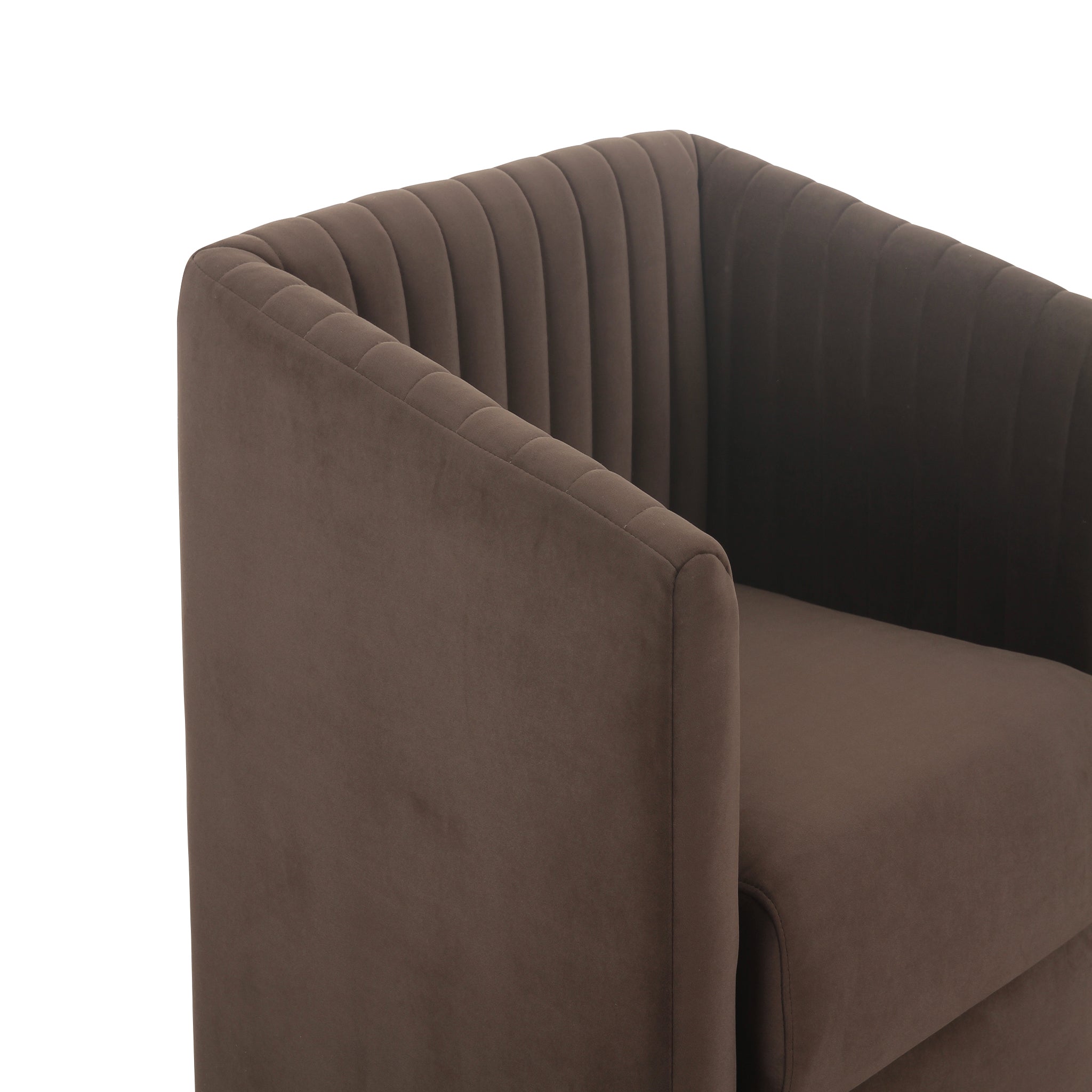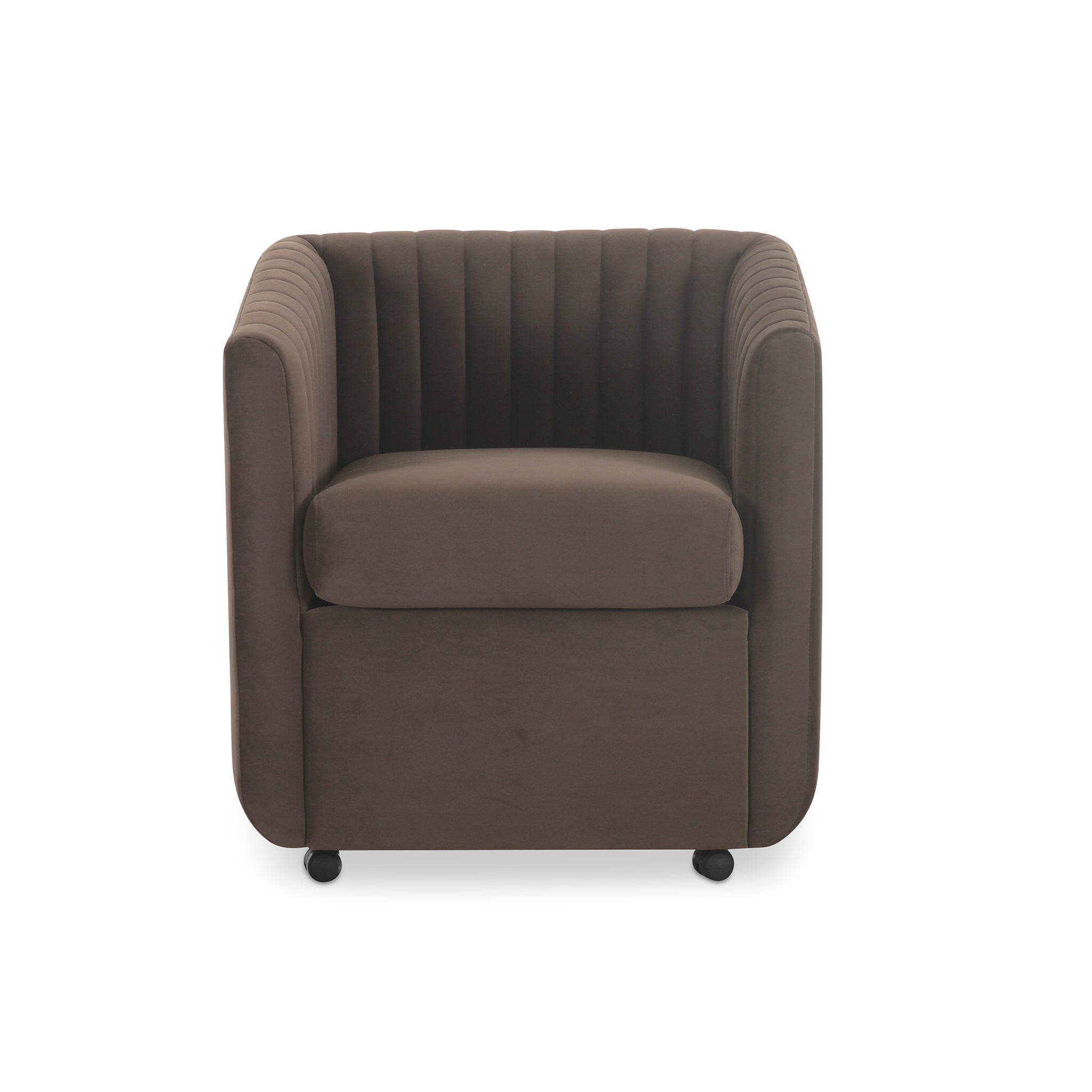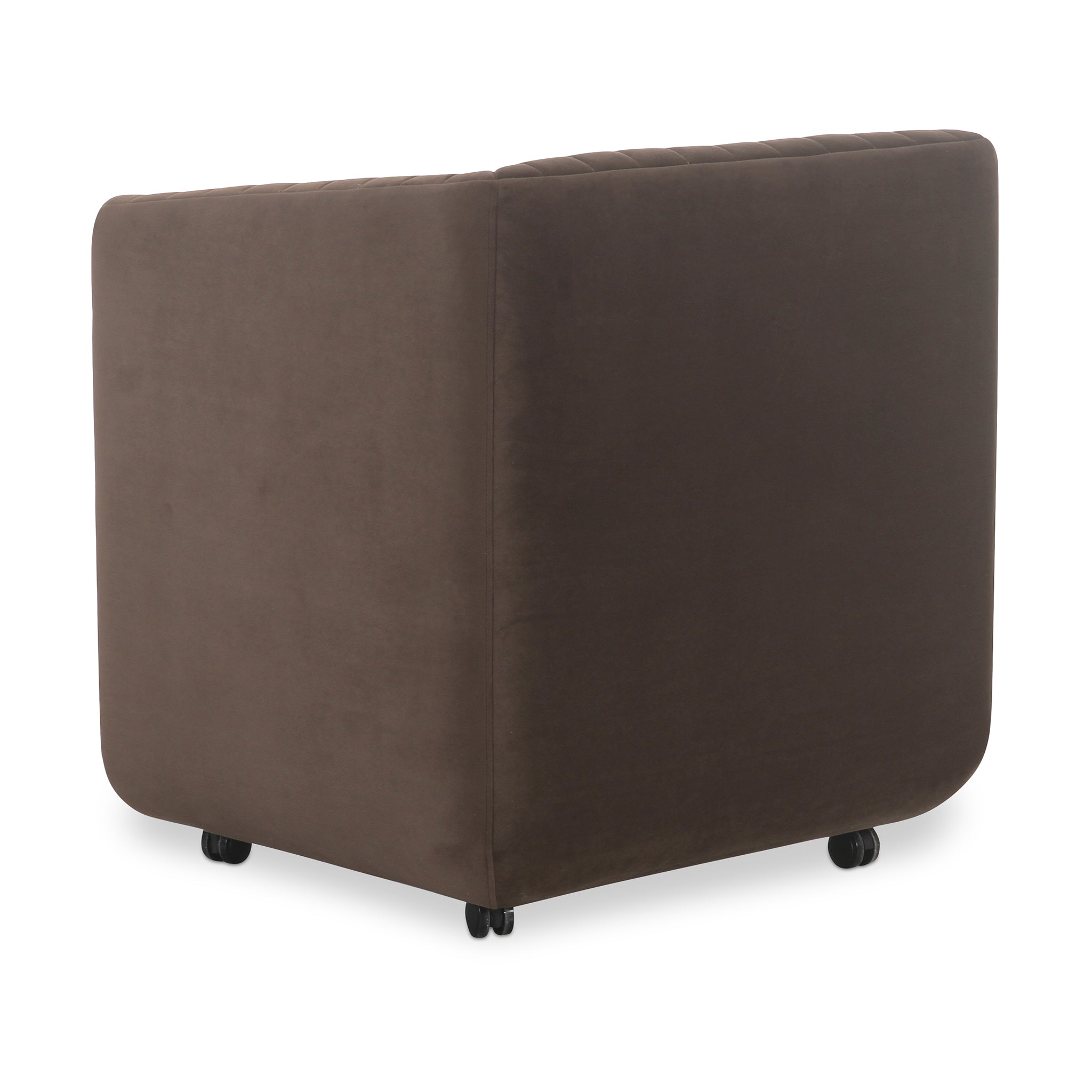Beau Rolling Dining Chair Performance Fabric in Brown Velvet