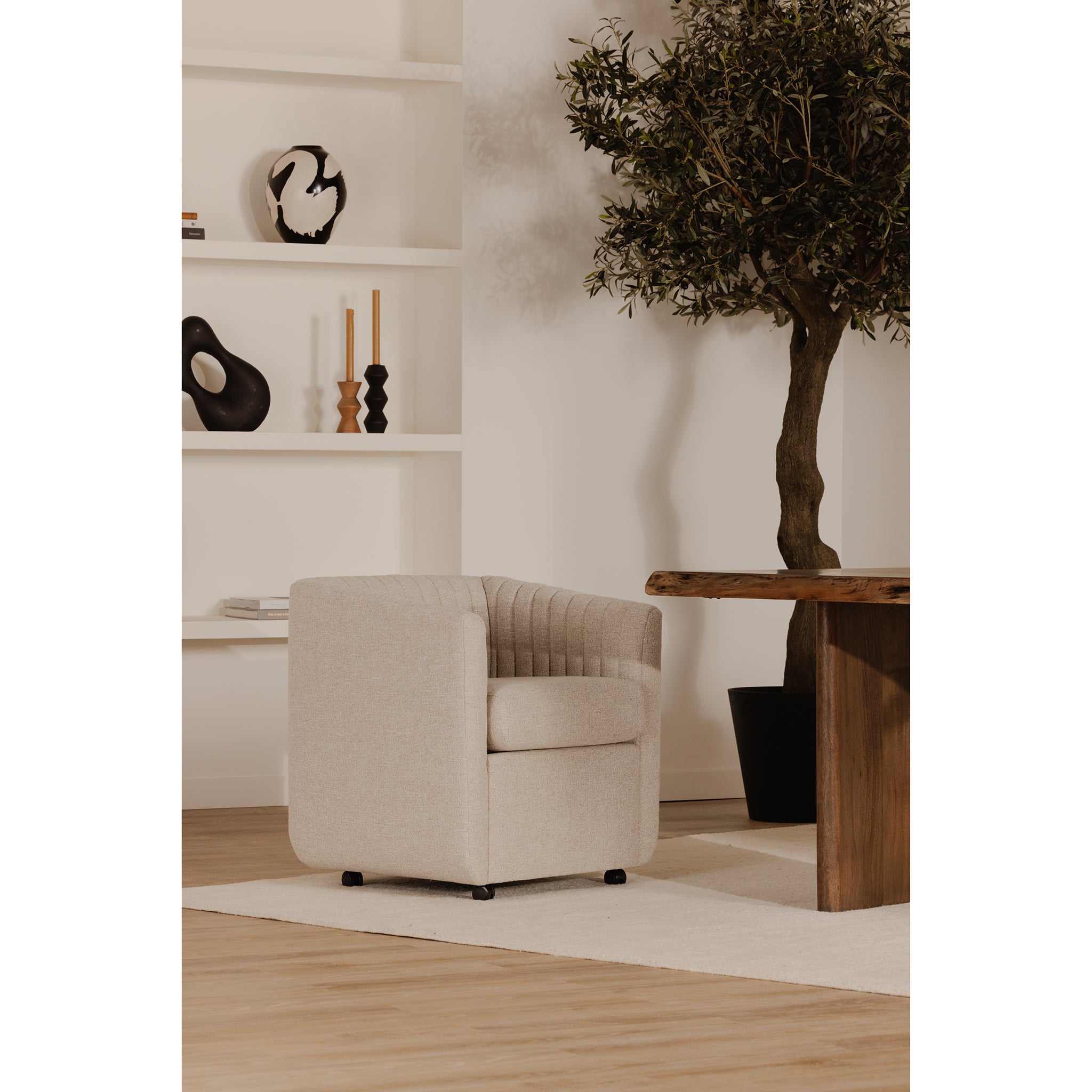 Beau Rolling Dining Chair Performance Fabric in Fabric Oatmeal