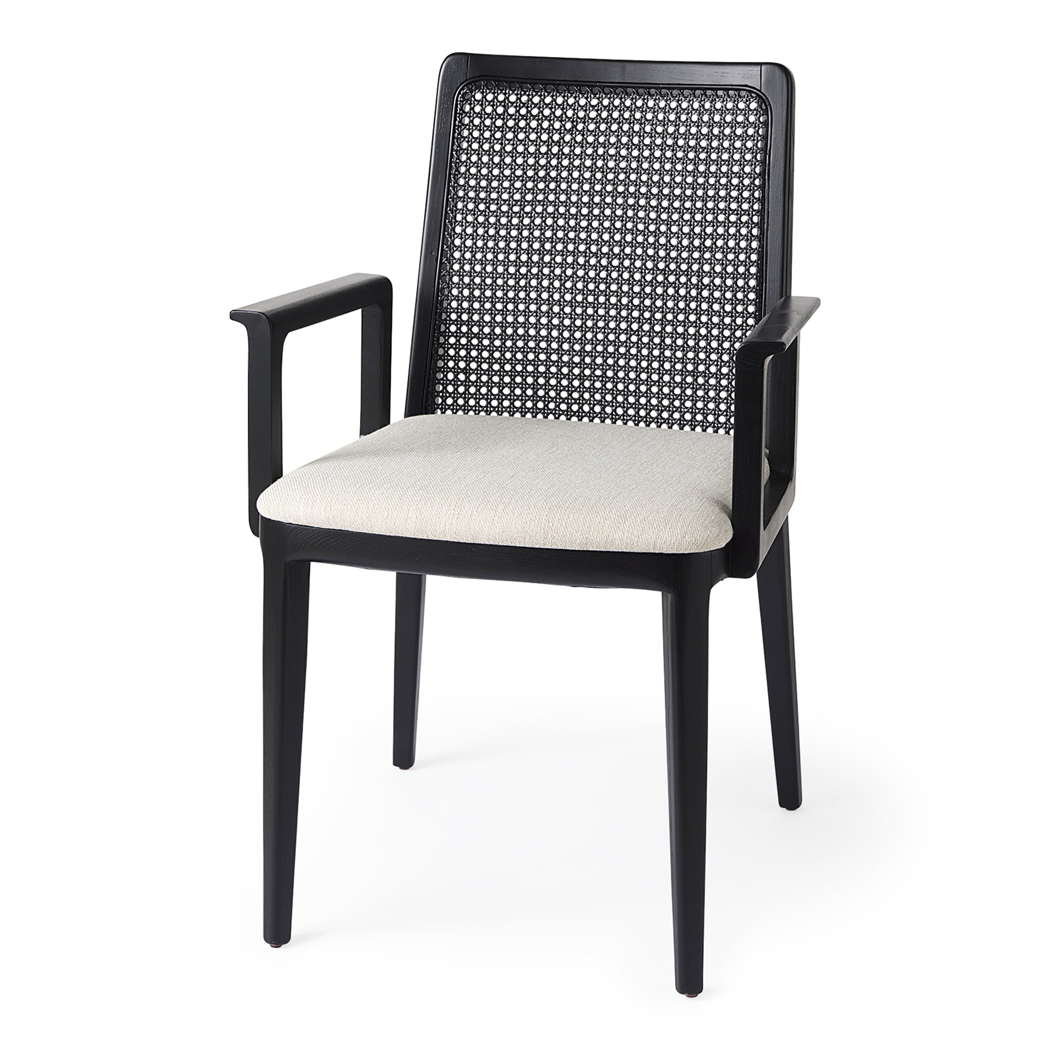 Is it time to update your dining room and give it a more modern appeal? Instead of replacing your whole dining set, add these solid wood retro Cooper Black Wood Dining Chairs to your décor and watch as your room comes to life. Finished in a striking black stain and offset by a cream-colored fabric cushion, the simplicity of these chairs is versatile enough to match with anything. Feature them on their own or mix them with our Cooper armless dining chairs to create an impressive set.