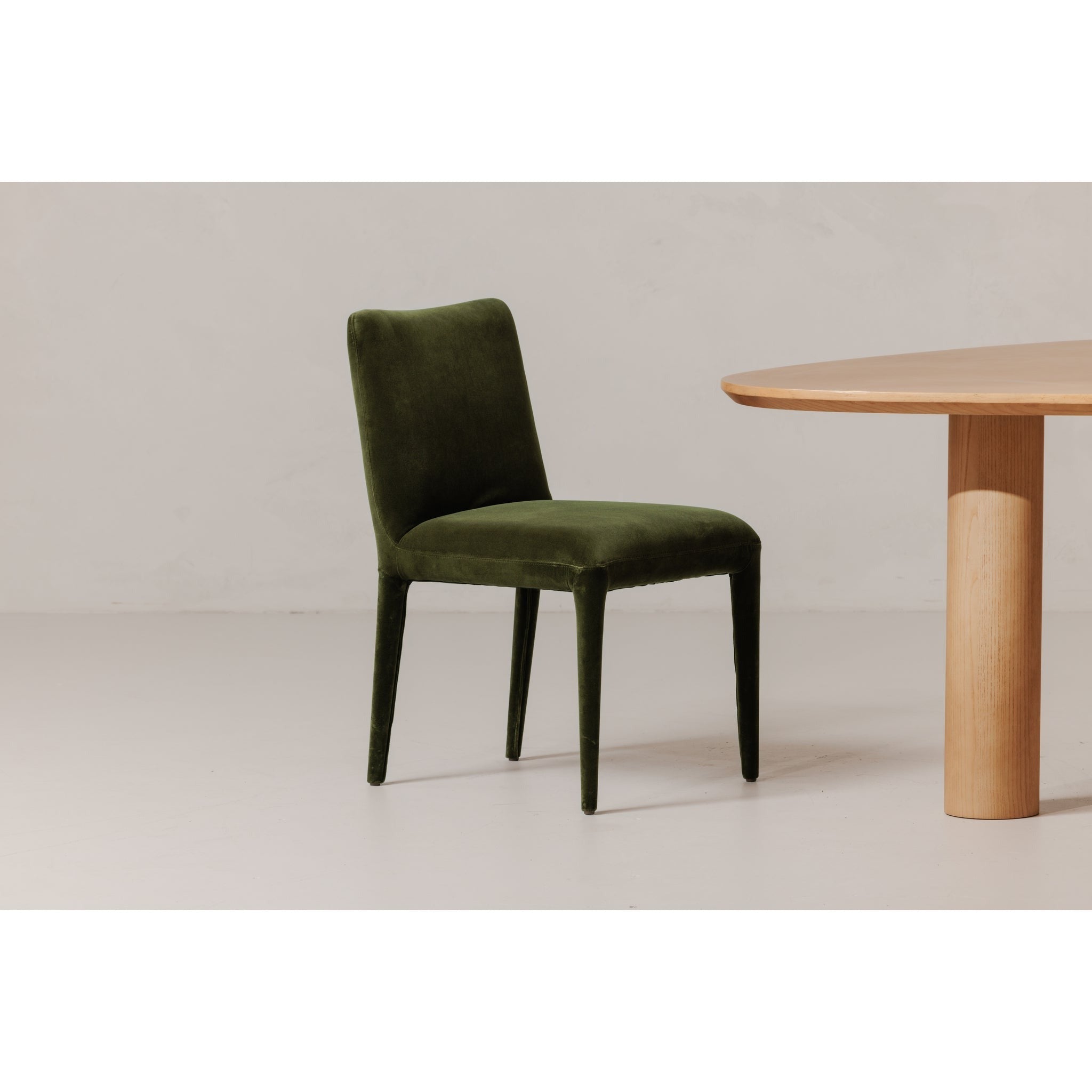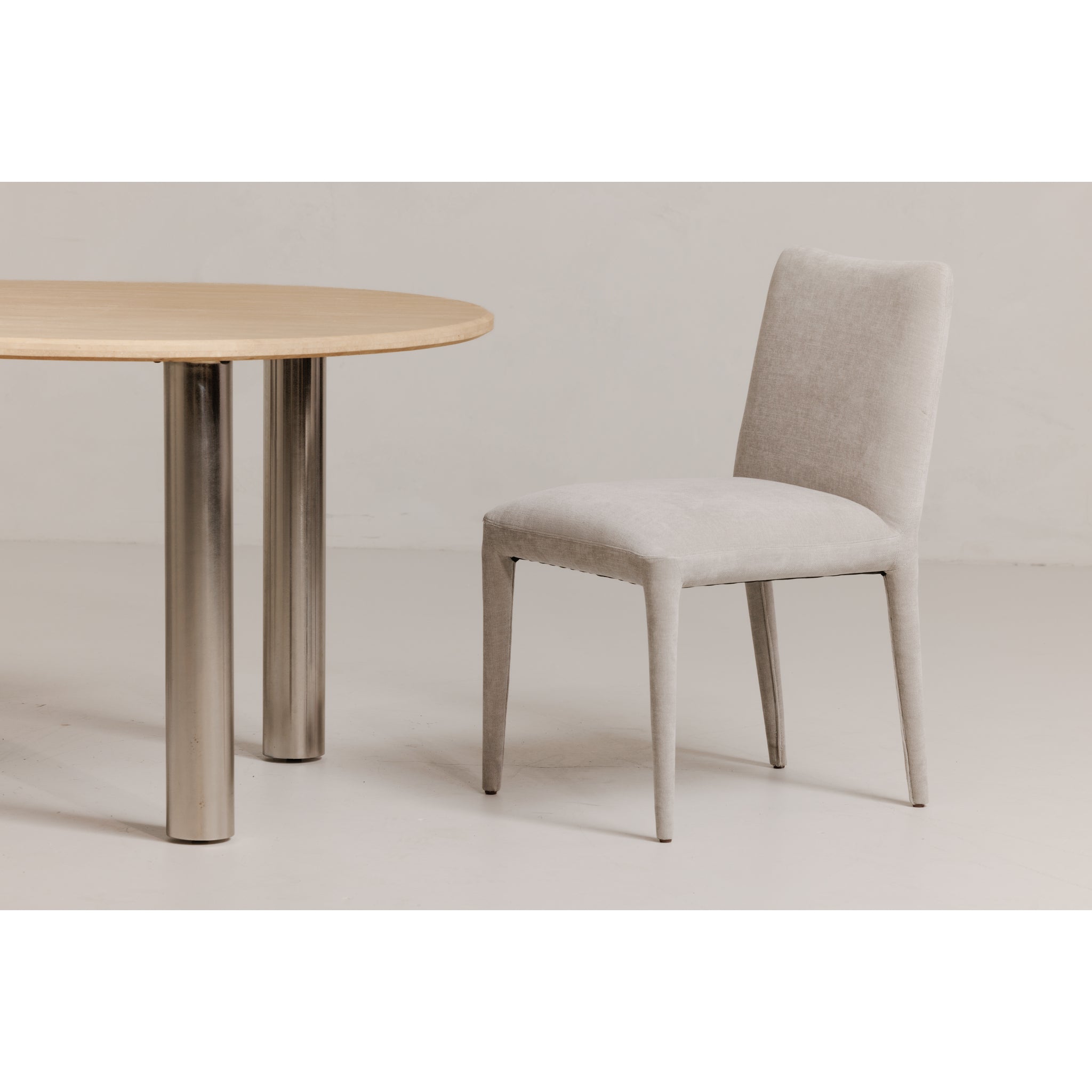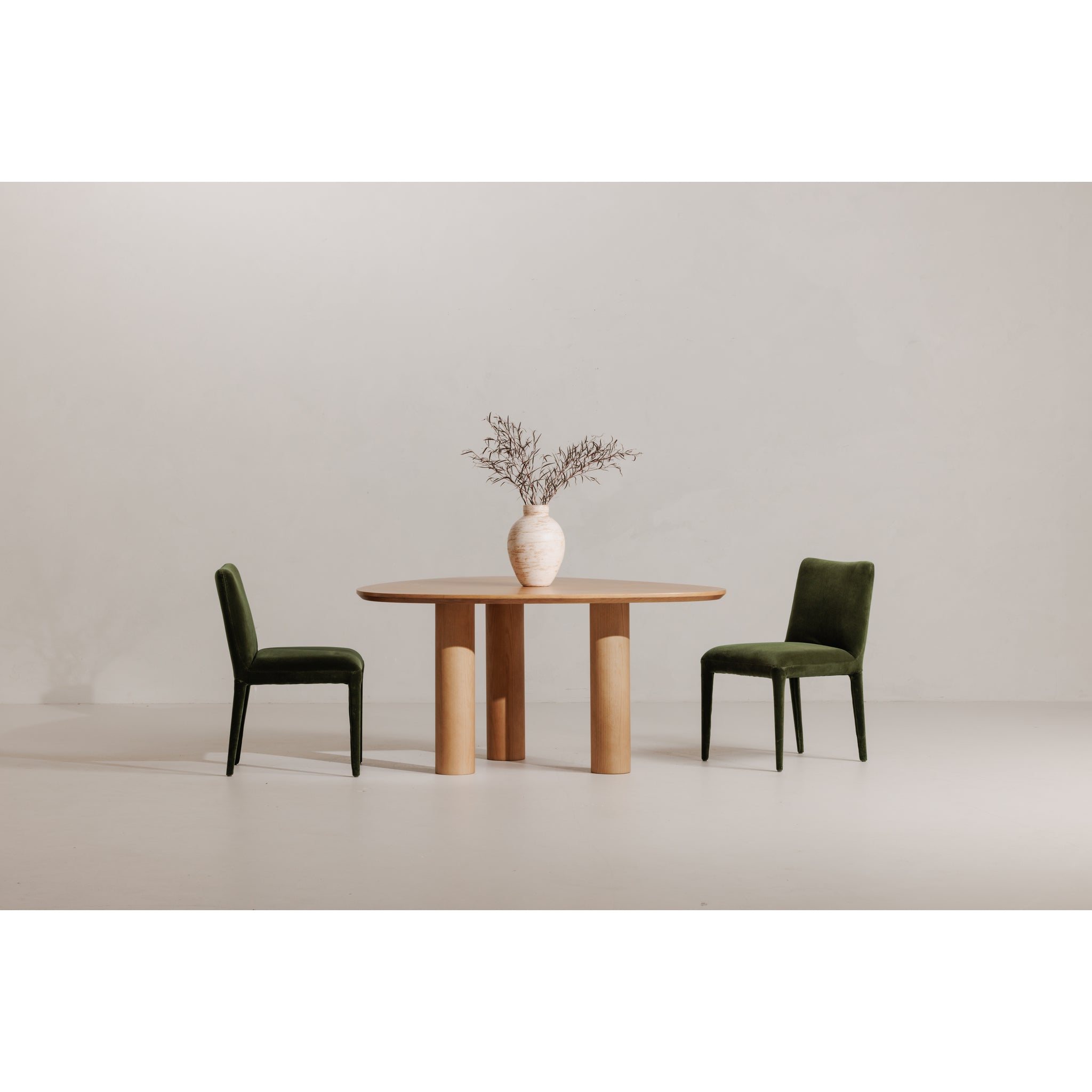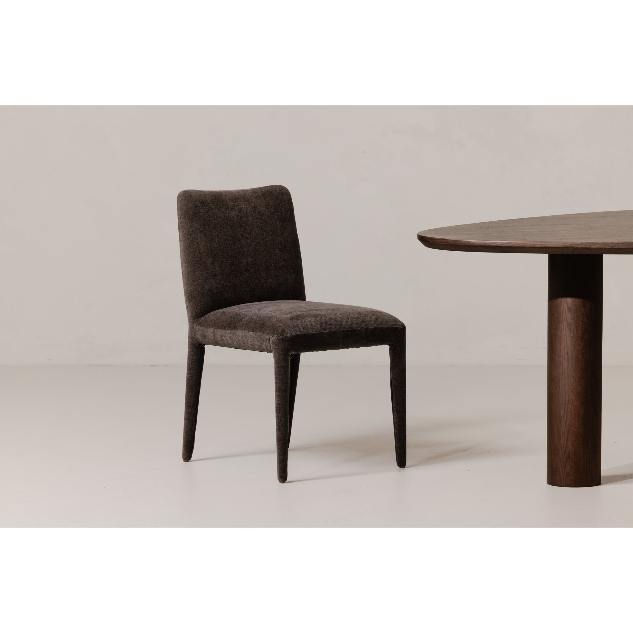 The Corey dining chair is fully upholstered, generously padded for comfort and constructed with a robust ash wood frame and a rubber wood base. The comforting hue is effortlessly adaptable, allowing the chair to seamlessly integrate with any dining table, regardless of color or style.