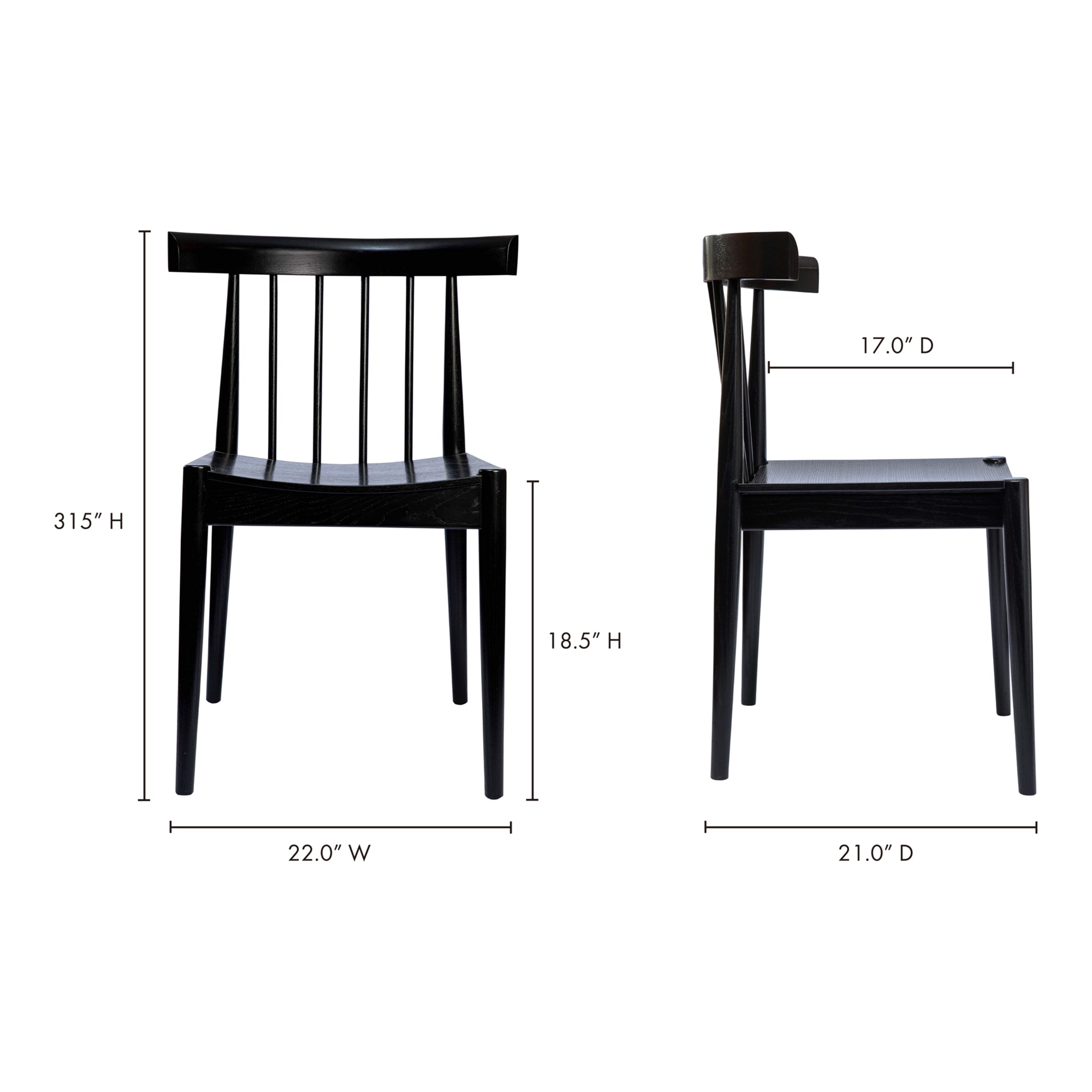 Constructed from solid white ash and available in either a matt black or natural matt finish, the Diana dining chair is a perfect example of Scandi design. Inspired by the Arts and Craft movement, the Shaker style celebrates craftsmanship and features exquisite joint detailing. A spindled backrest adds visual space and unabashed style to your dining area.