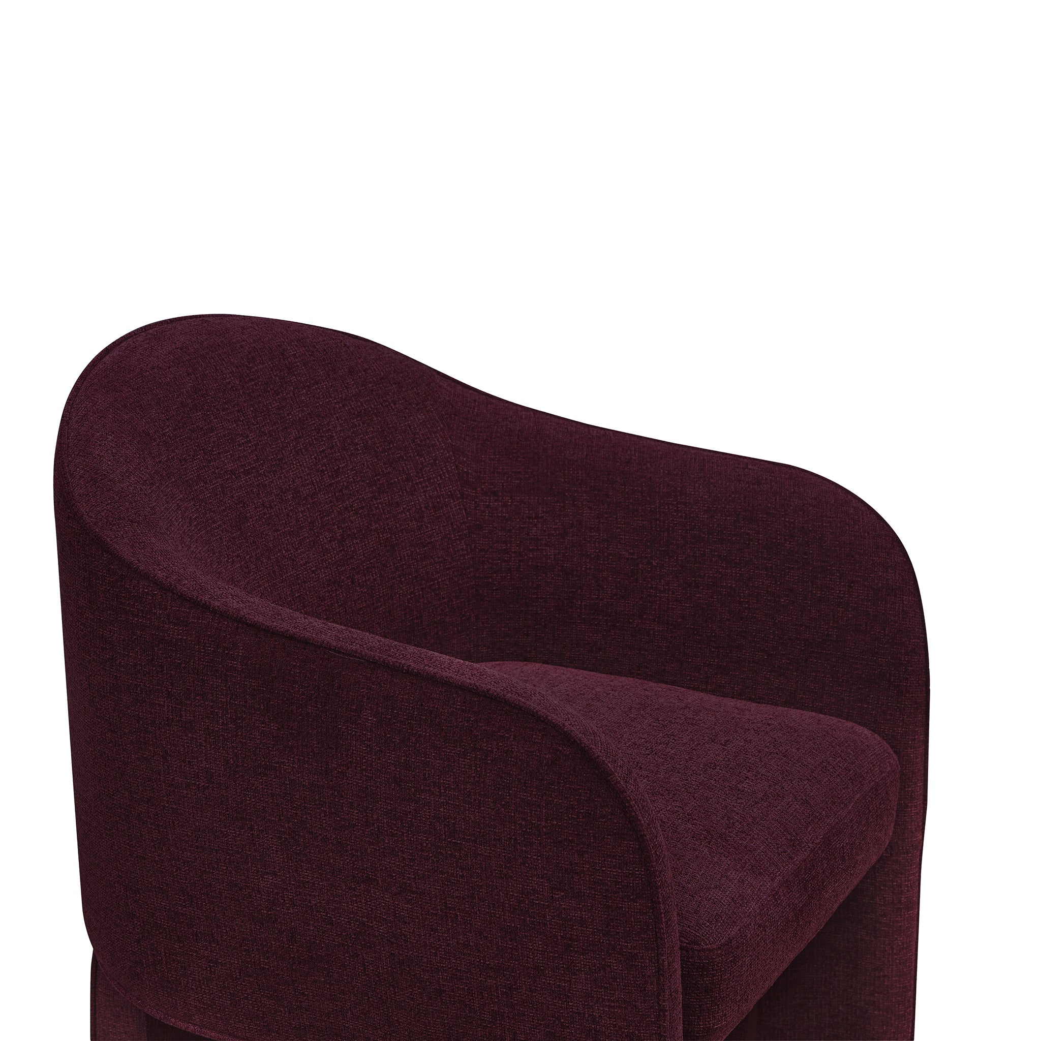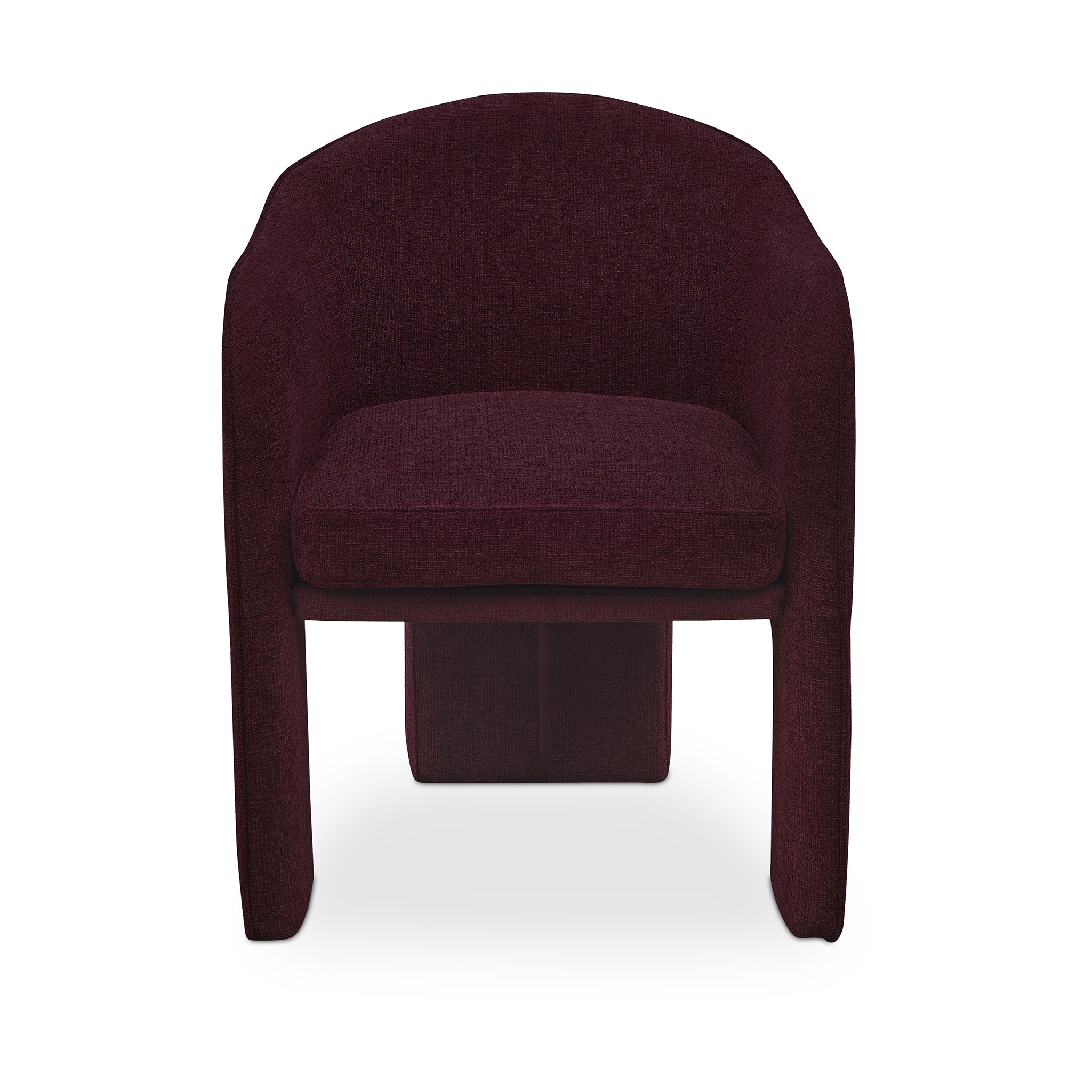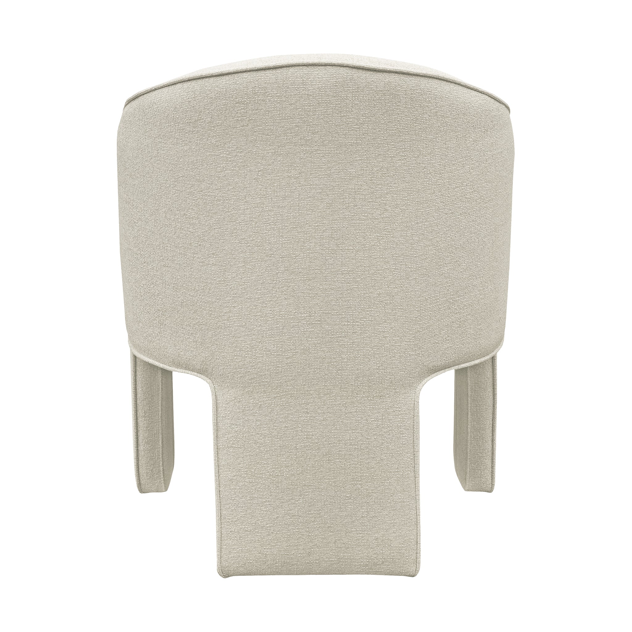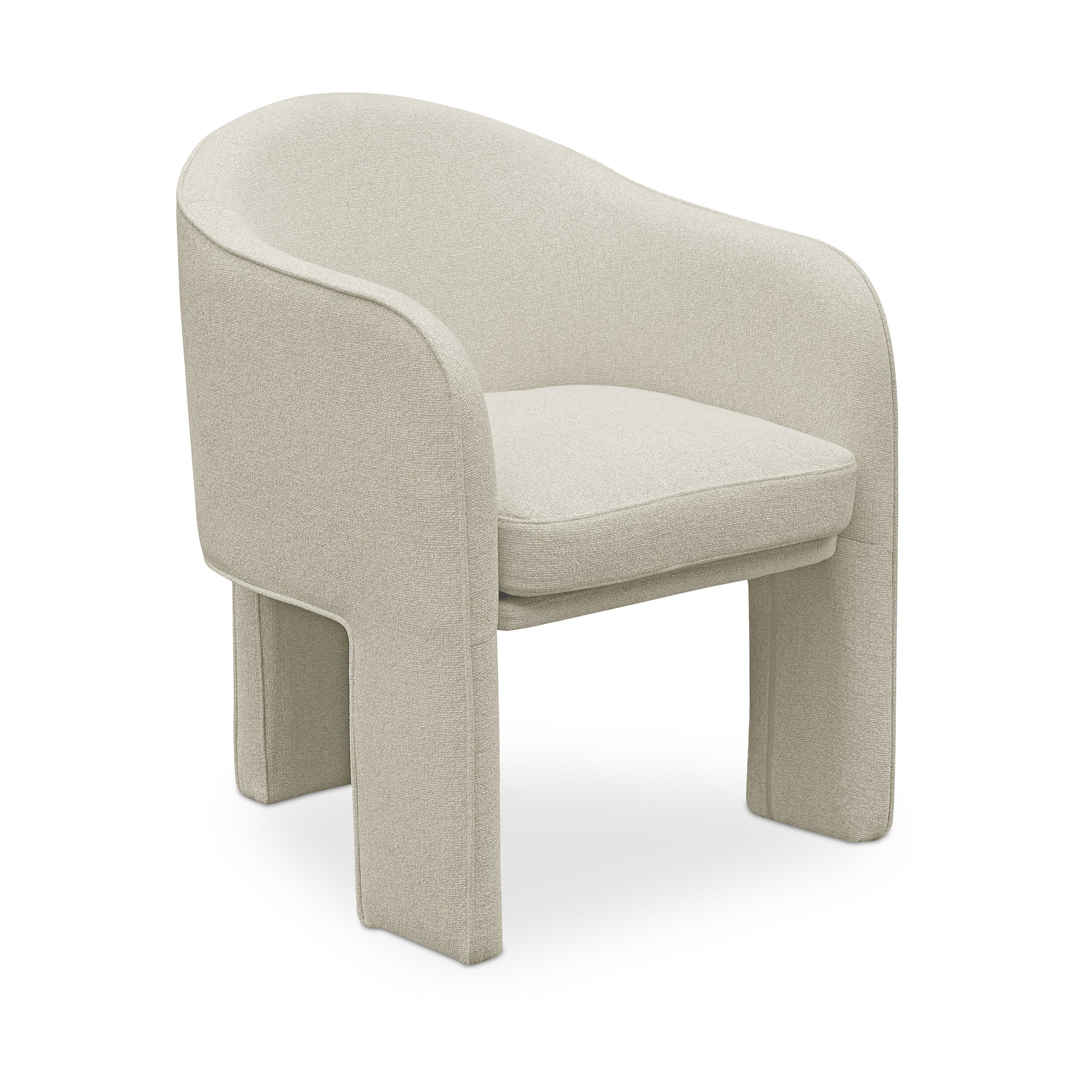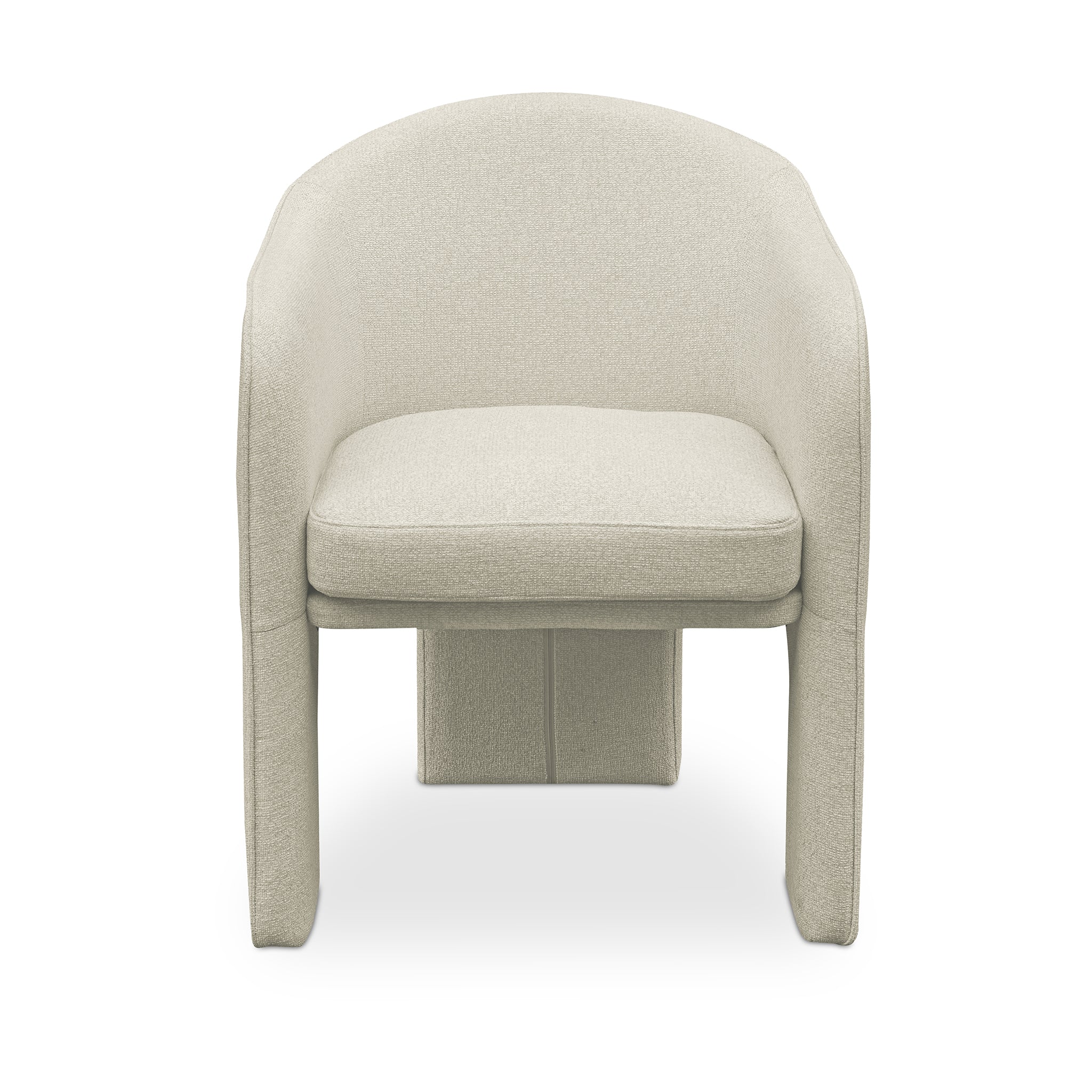 Fully upholstered in easy-to-clean performance fabric and generously sized, the Johna dining chair is all about comfort with a thoughtfully rounded back and gently curved armrests that add a touch of elegance and femininity. The sleek and minimalistic 3-legged base provides a clean and refined foundation.