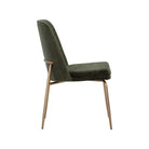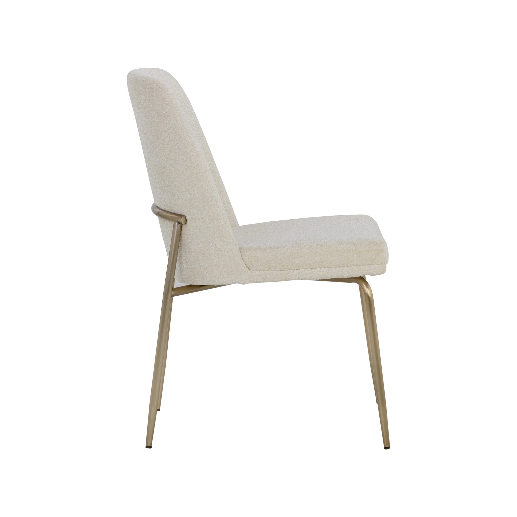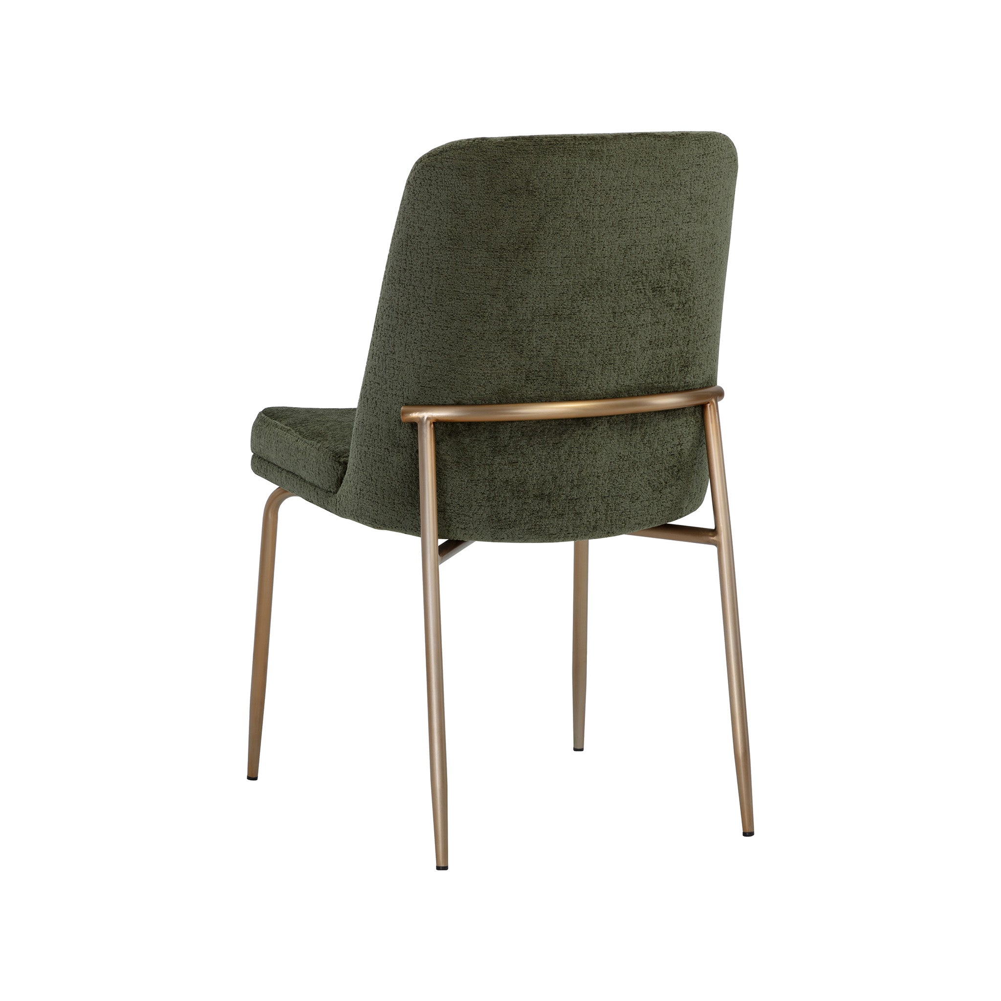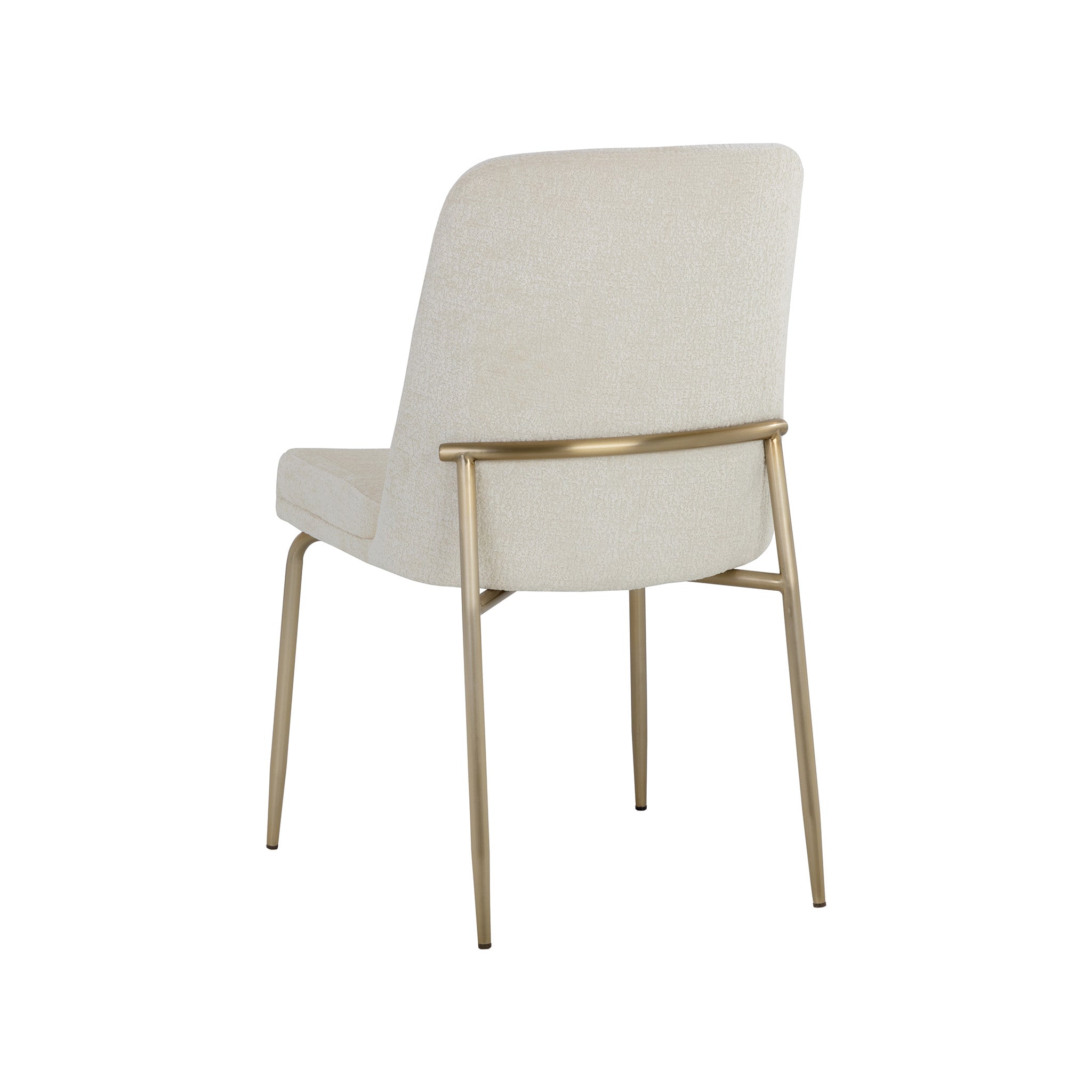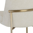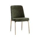 This stylish dining chair features a classic silhouette that provides comfortable seating in any modern living space. Features an antique brass powder-coated stainless steel frame and curved backrest upholstered in bergen fabric.