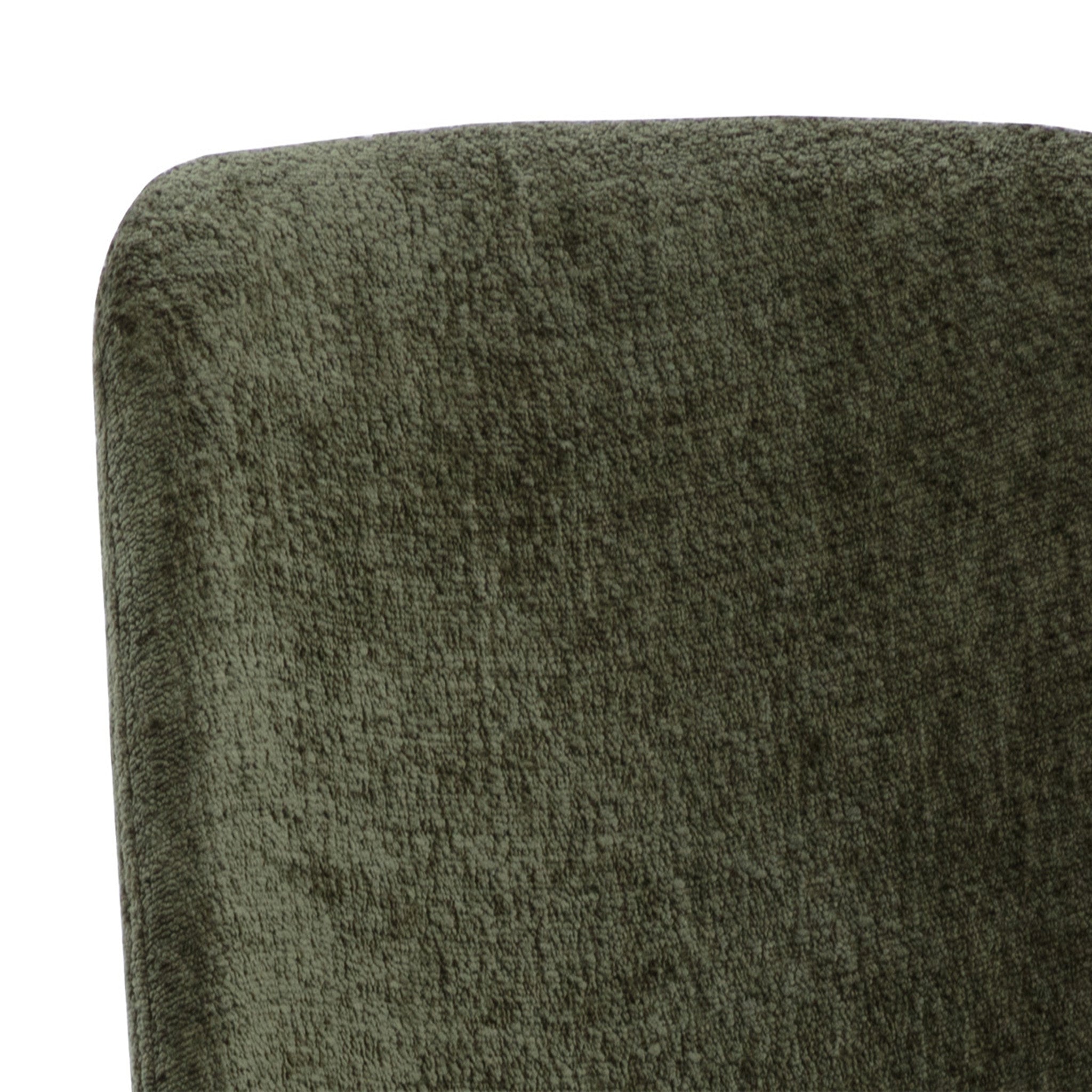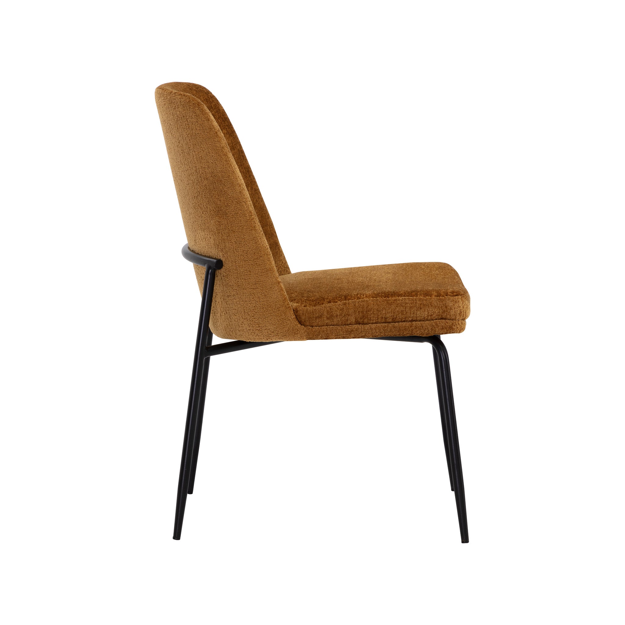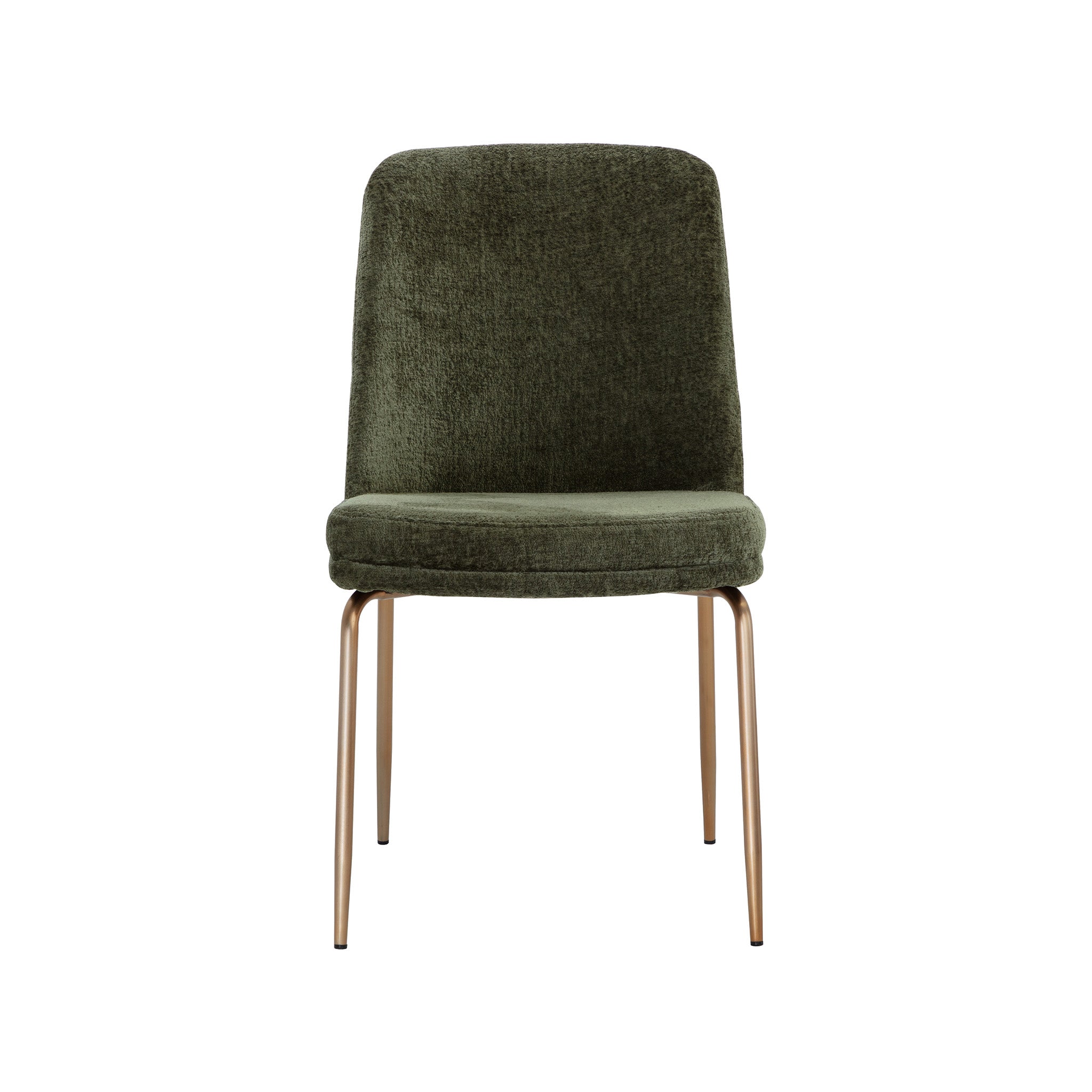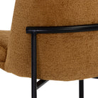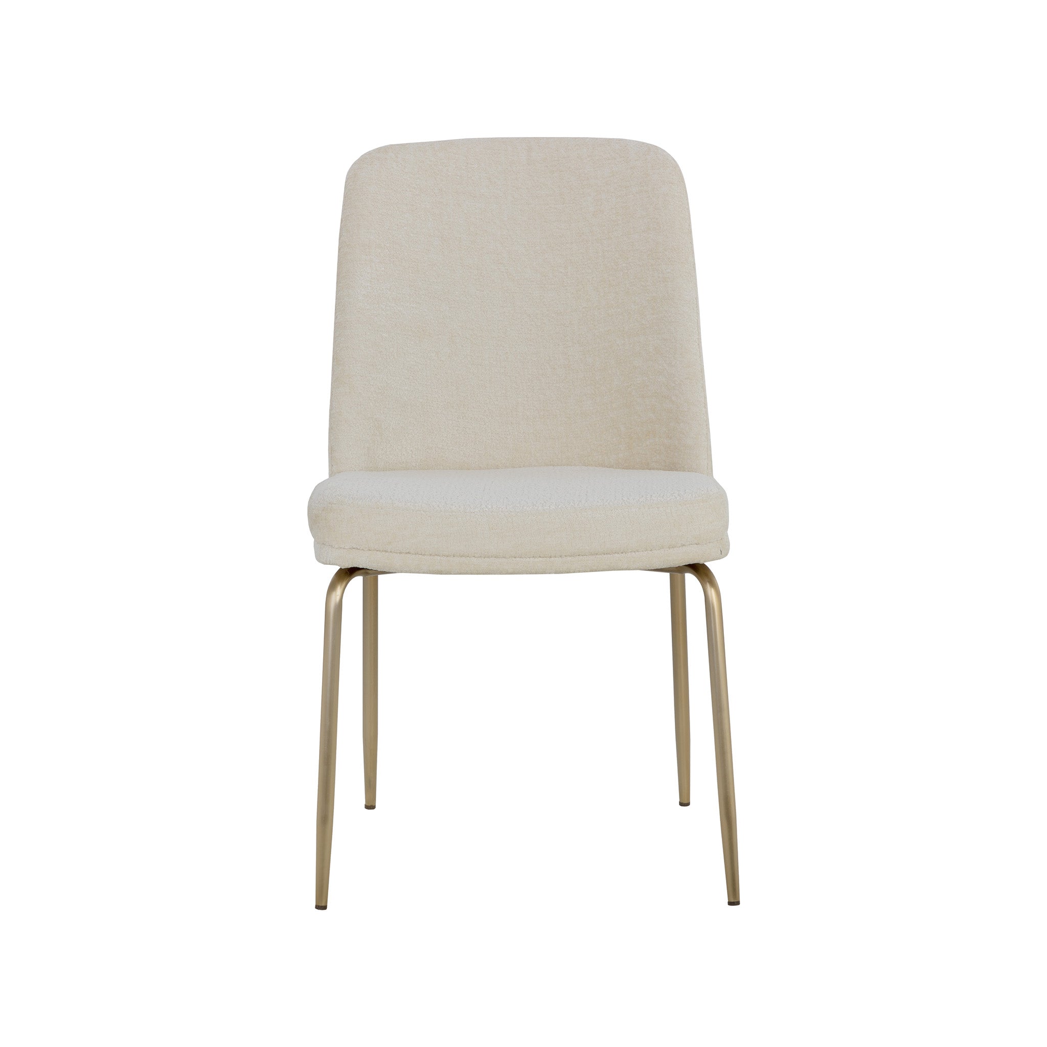 This stylish dining chair features a classic silhouette that provides comfortable seating in any modern living space. Features an antique brass powder-coated stainless steel frame and curved backrest upholstered in bergen fabric.