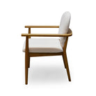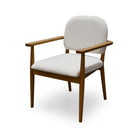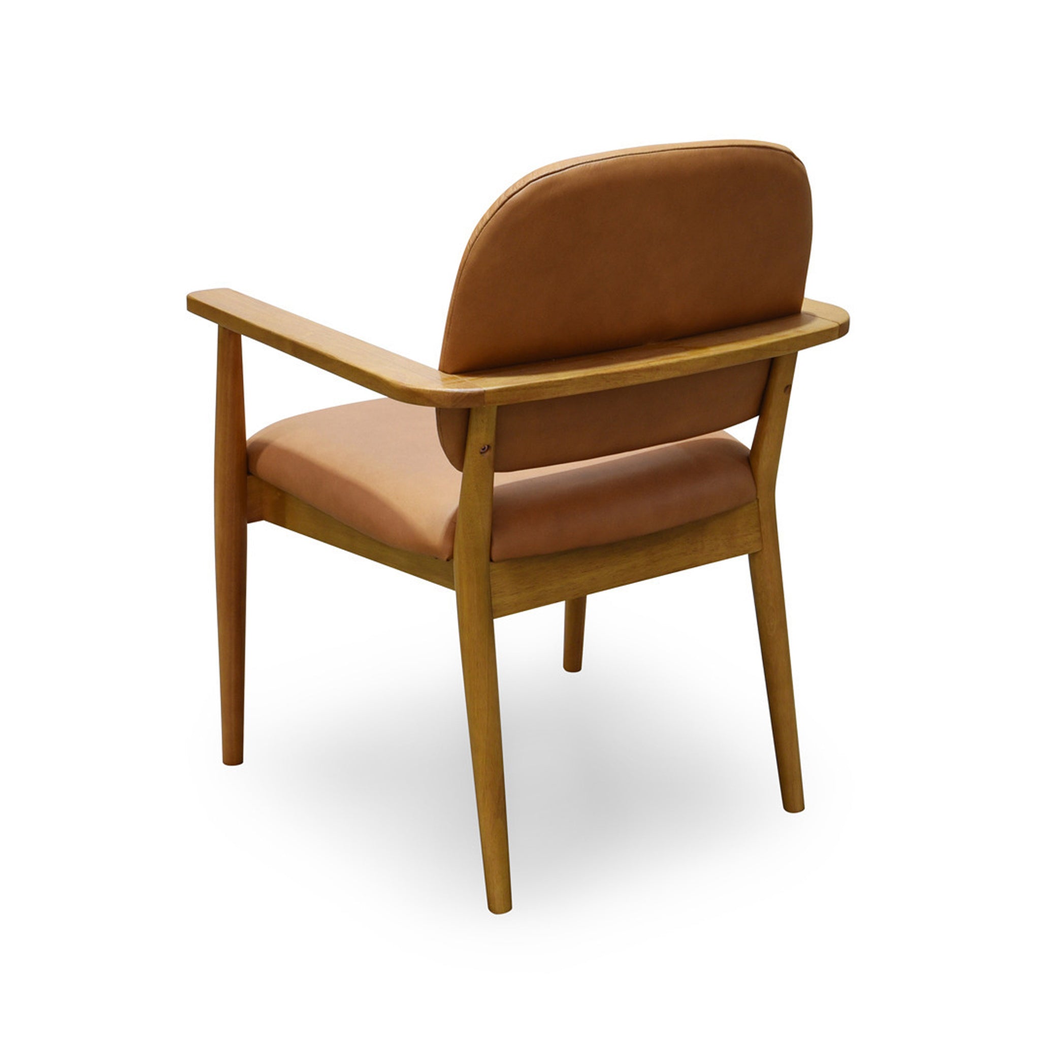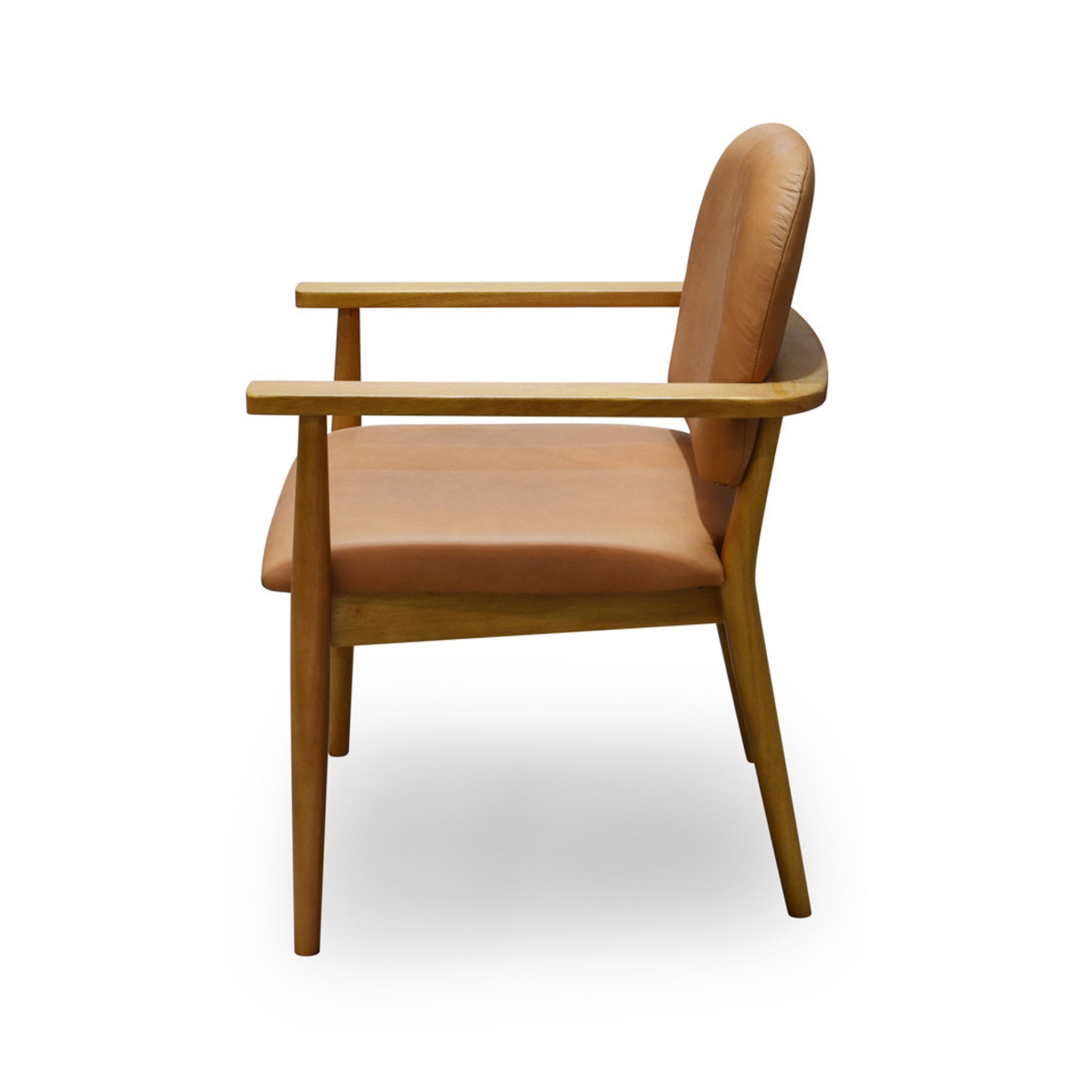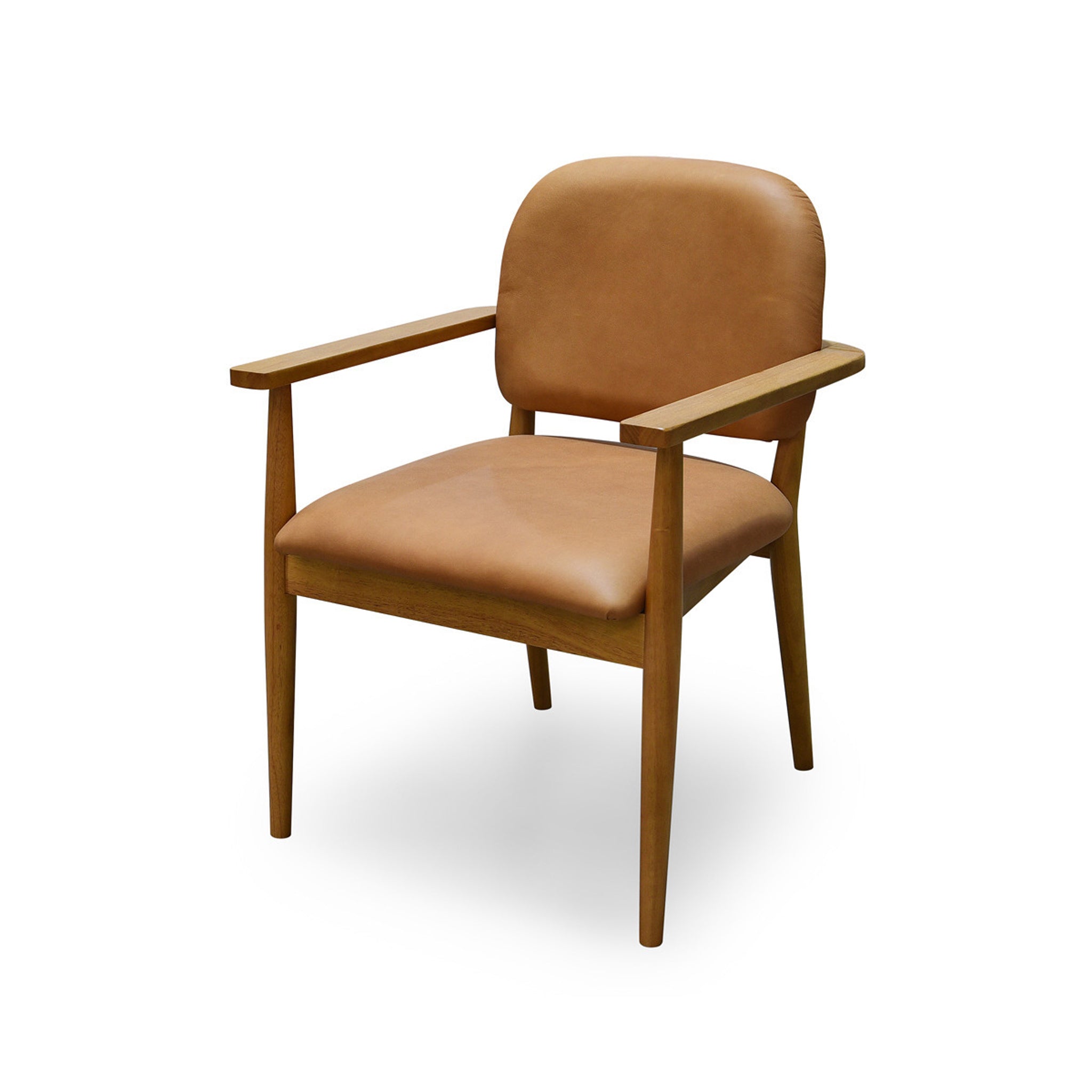 The Nives dining chair features a continuous frame that flows seamlessly from back to armrests. Crafted from rubber wood and upholstered in sumptuous top-grain leather, these chairs exude sophistication as the clean lines make them versatile for various dining settings.