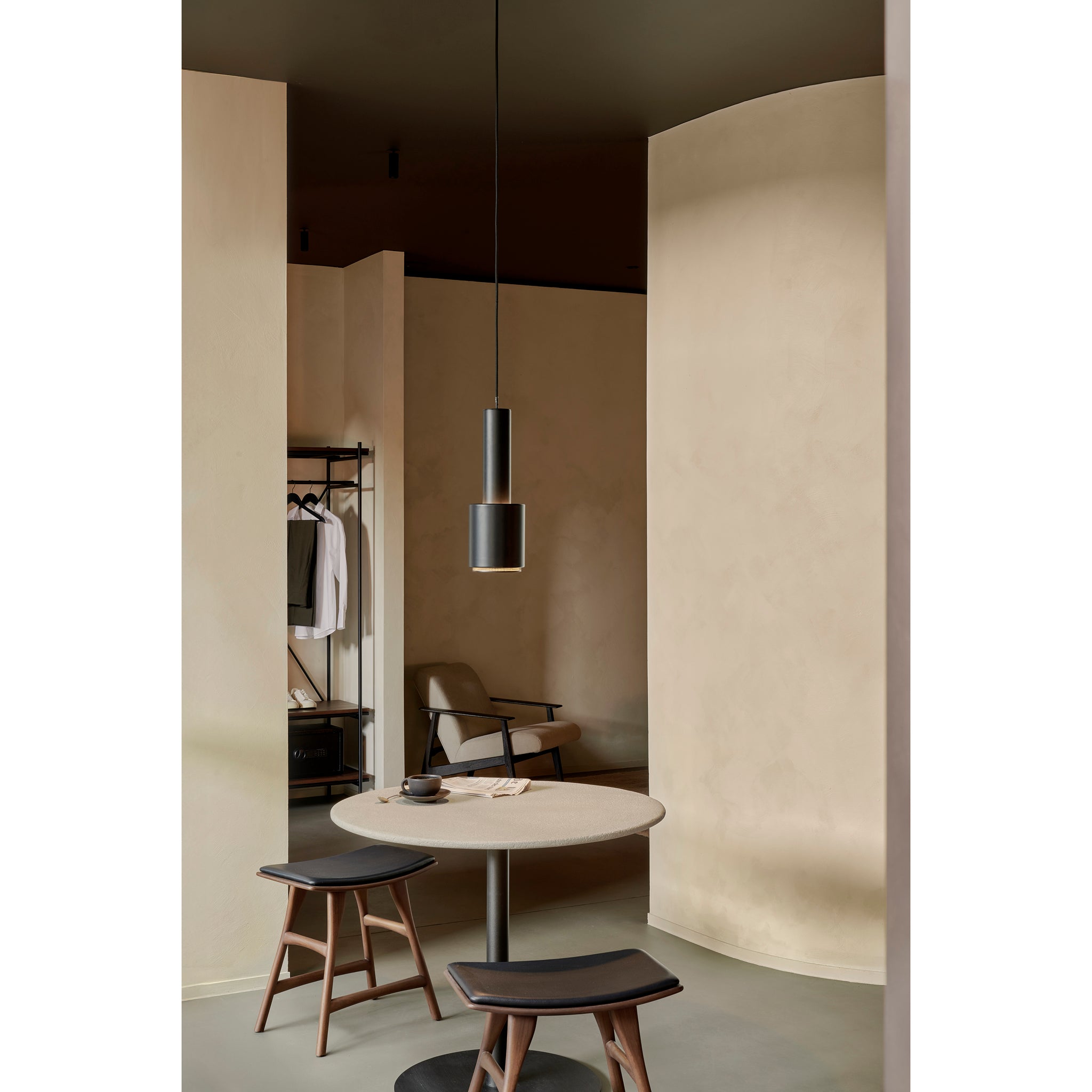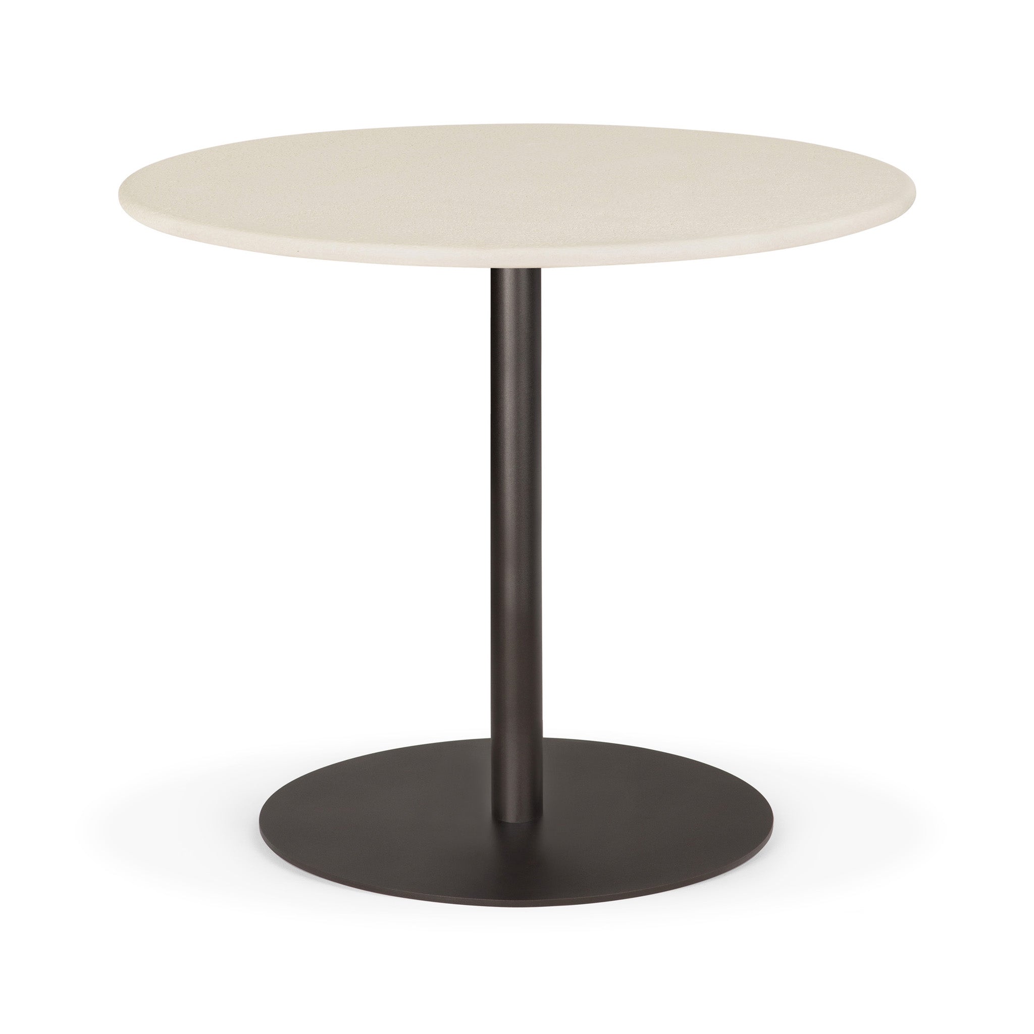 Material: Table top is made from an Microcement finish, with a Dark Bronze powdercoated metal leg base. Microcement is a cement-based coating composed of aggregates and minerals such as sand, lime and water. The material is carefully combined to create a unique finish that is sealed with a water-based topcoat for optimal protection against spills and daily use.