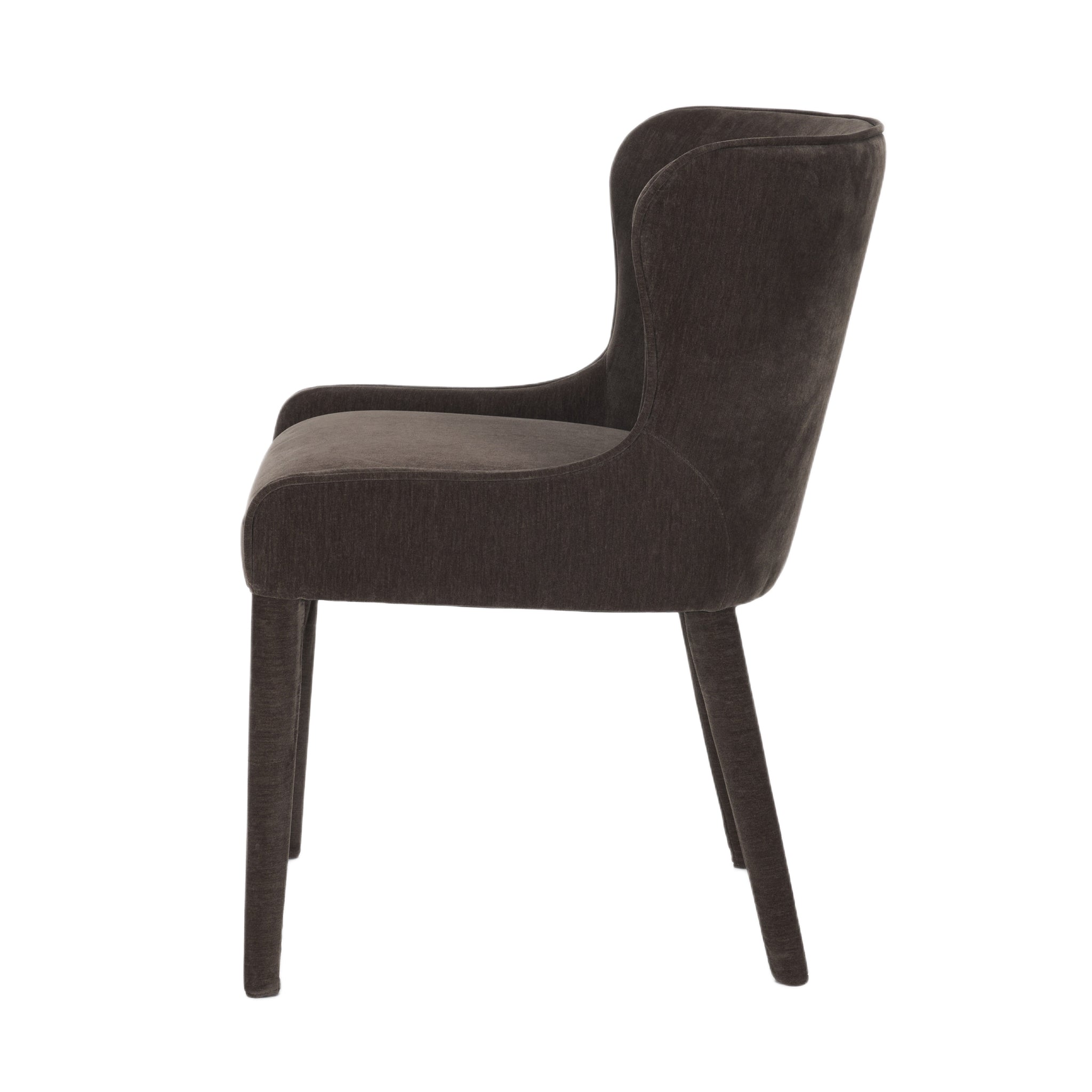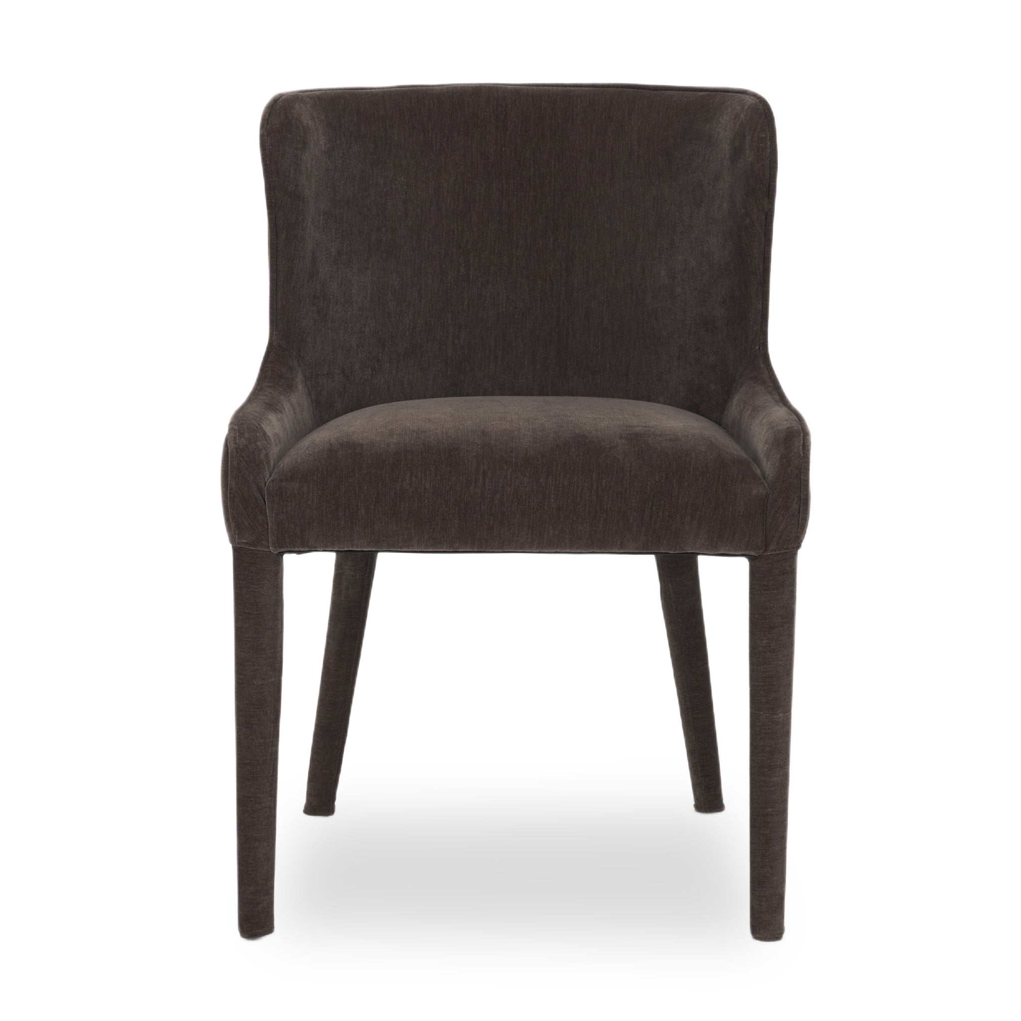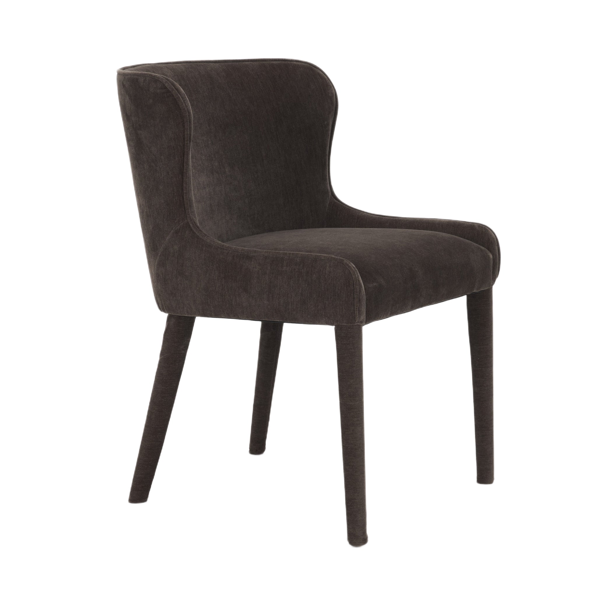 The Carroll Dining Chair brings sculptural softness and refined depth to modern dining. Fully upholstered in rich charcoal chenille-including its frame and legs-Carroll’s curved wingback and armless silhouette strike a sleek, sophisticated balance. Performance-grade, eco-conscious fabric ensures long-lasting comfort with a timeless edge.