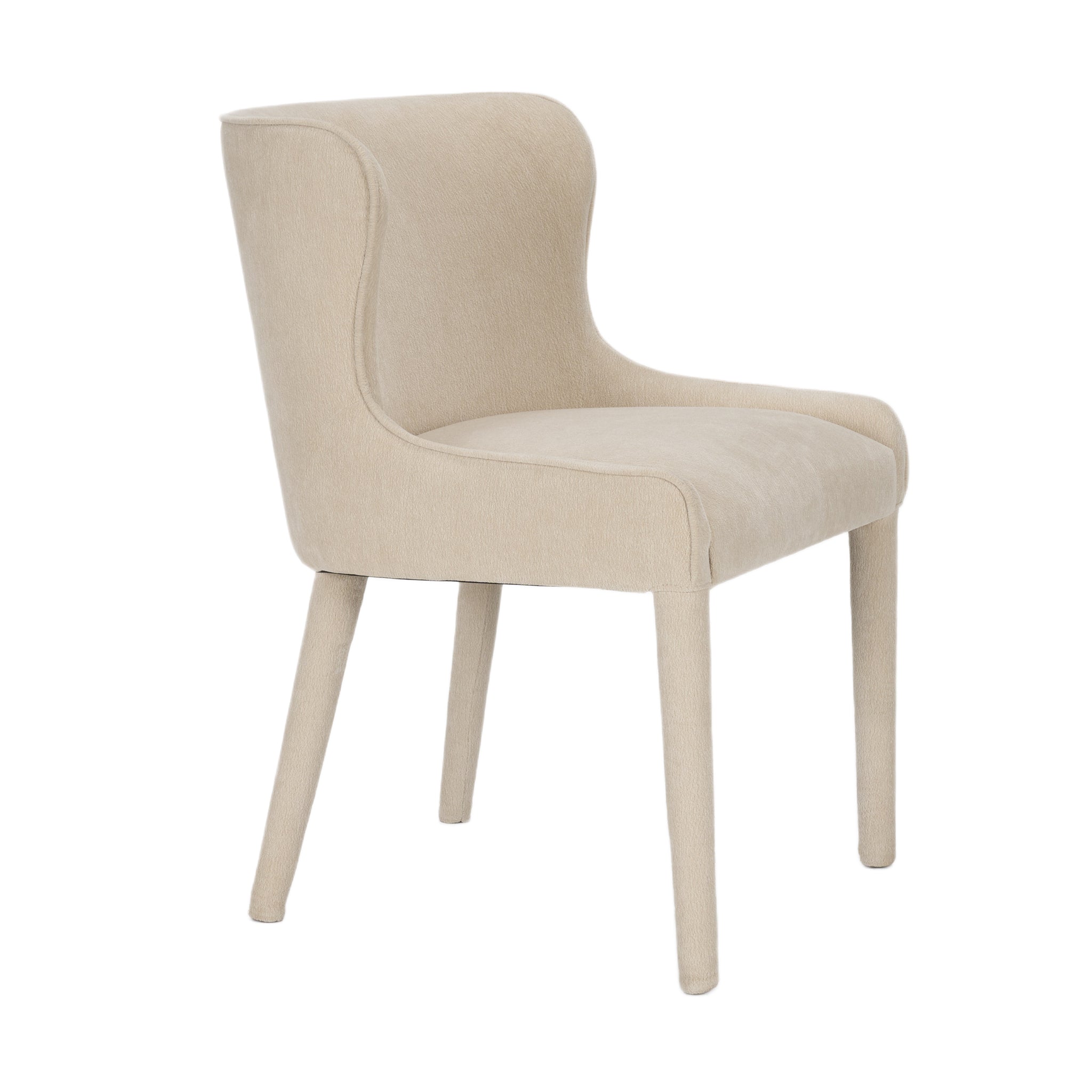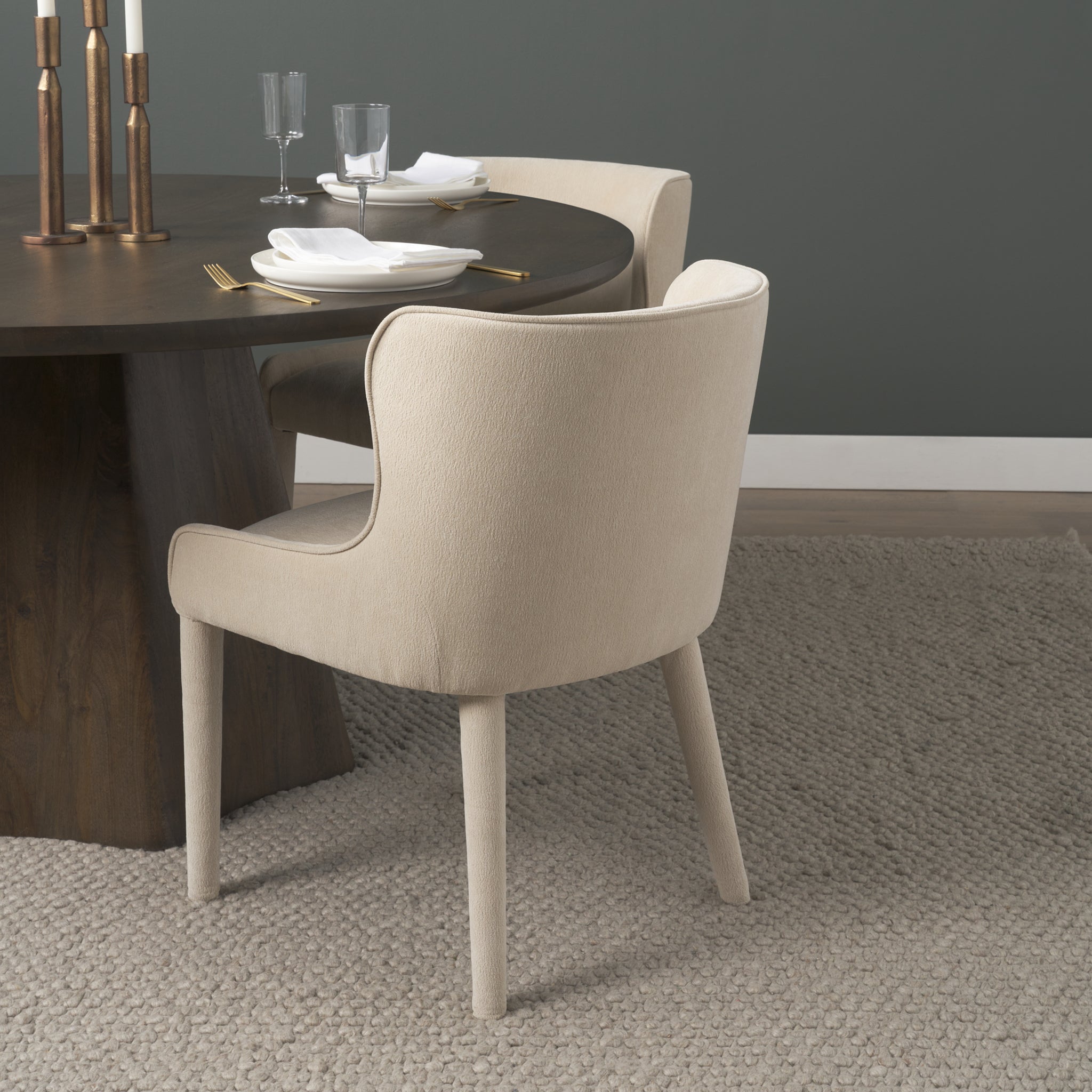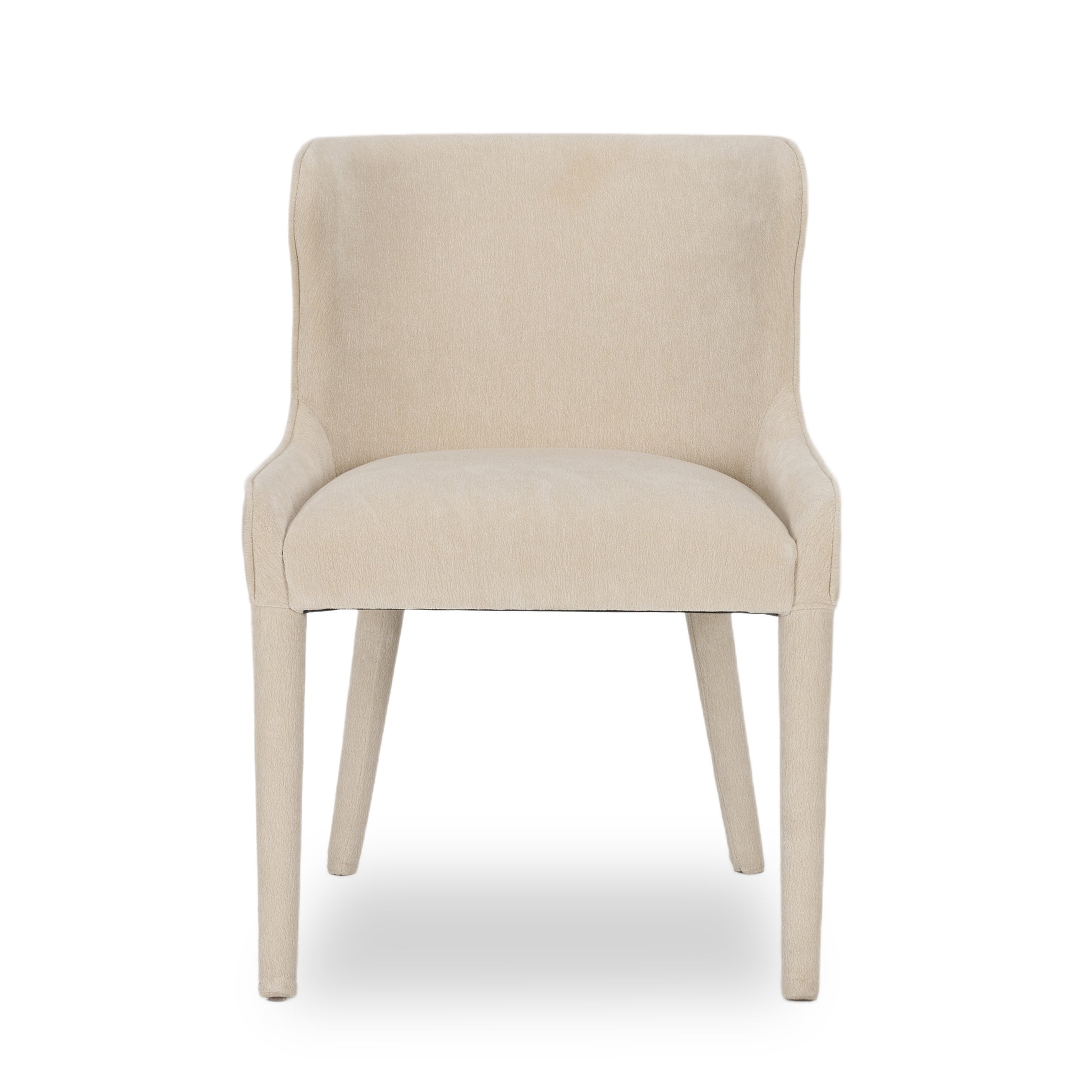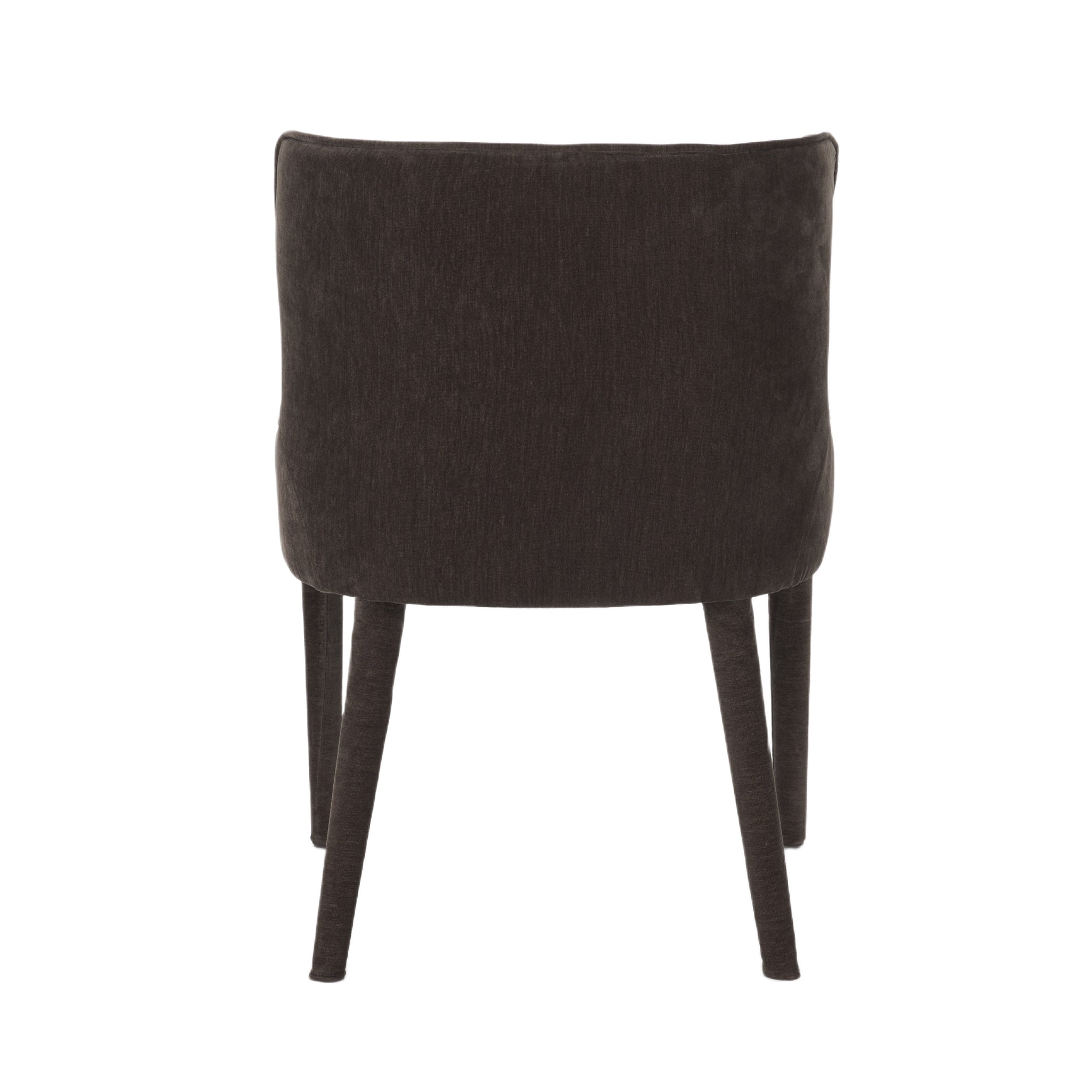 The Carroll Dining Chair brings sculptural softness and refined depth to modern dining. Fully upholstered in rich charcoal chenille-including its frame and legs-Carroll’s curved wingback and armless silhouette strike a sleek, sophisticated balance. Performance-grade, eco-conscious fabric ensures long-lasting comfort with a timeless edge.
