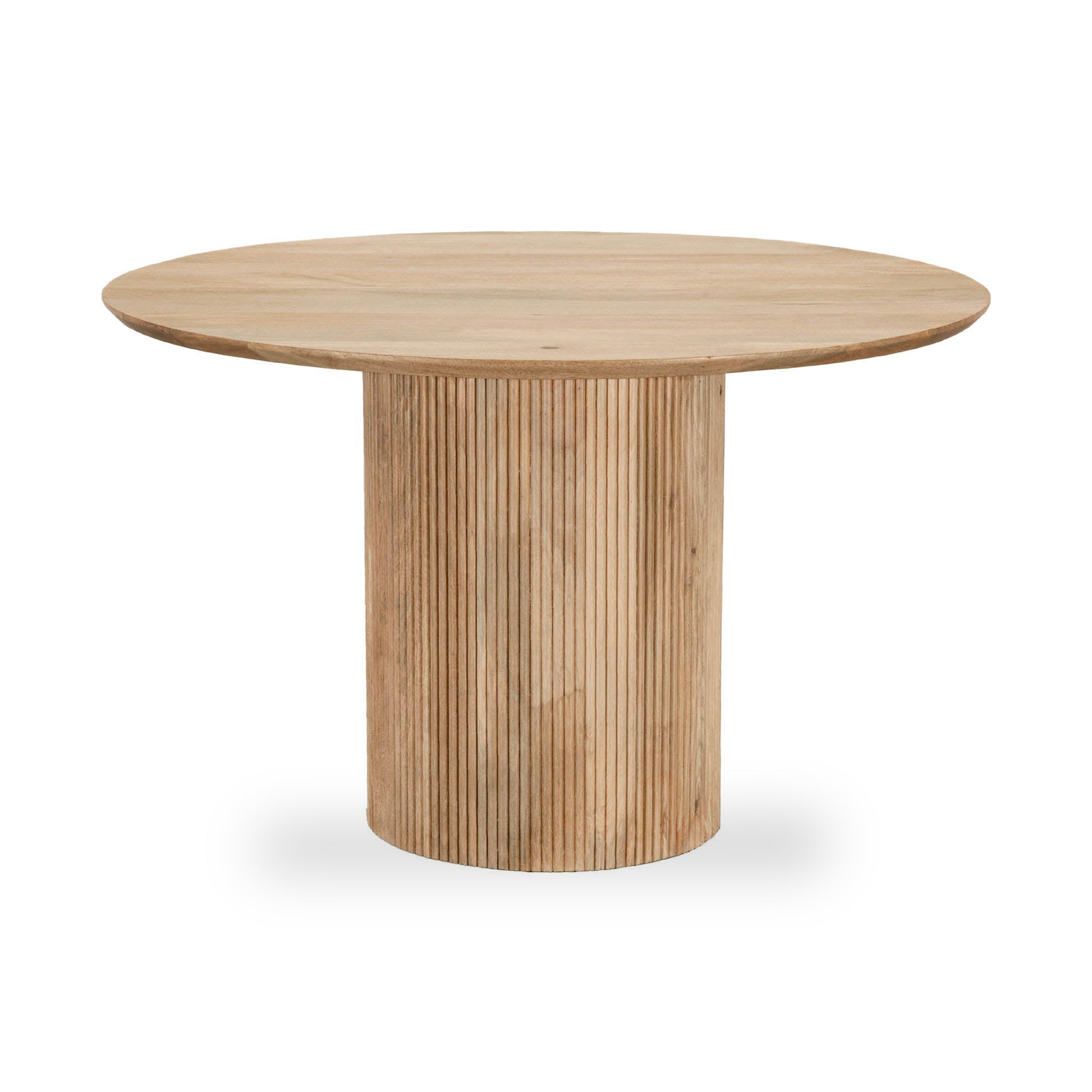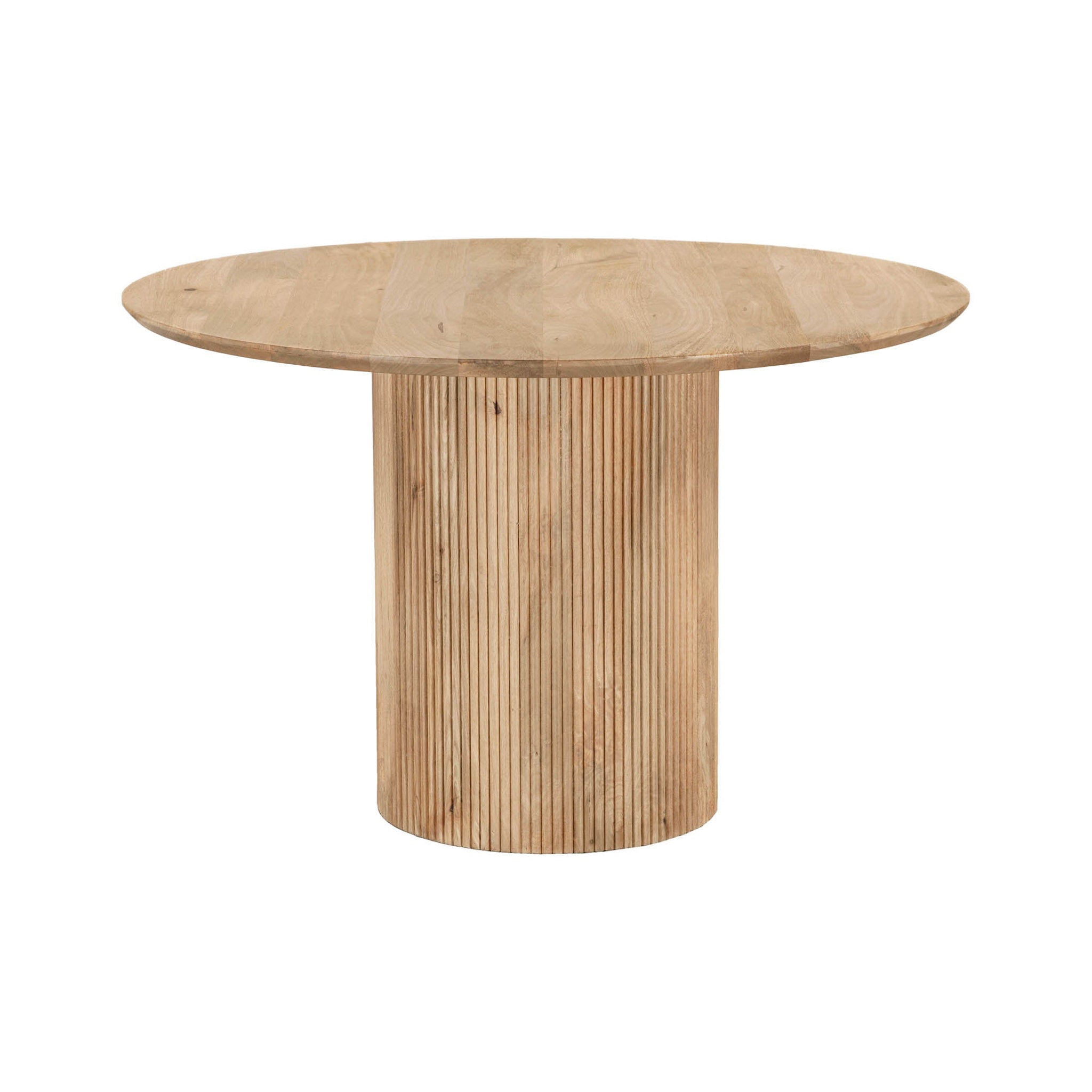 Embrace natural mango wood and the modern wooden fluted base on this piece