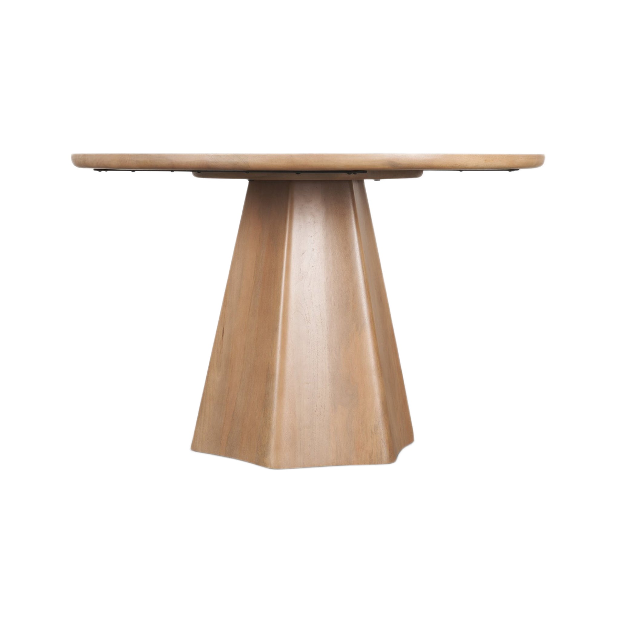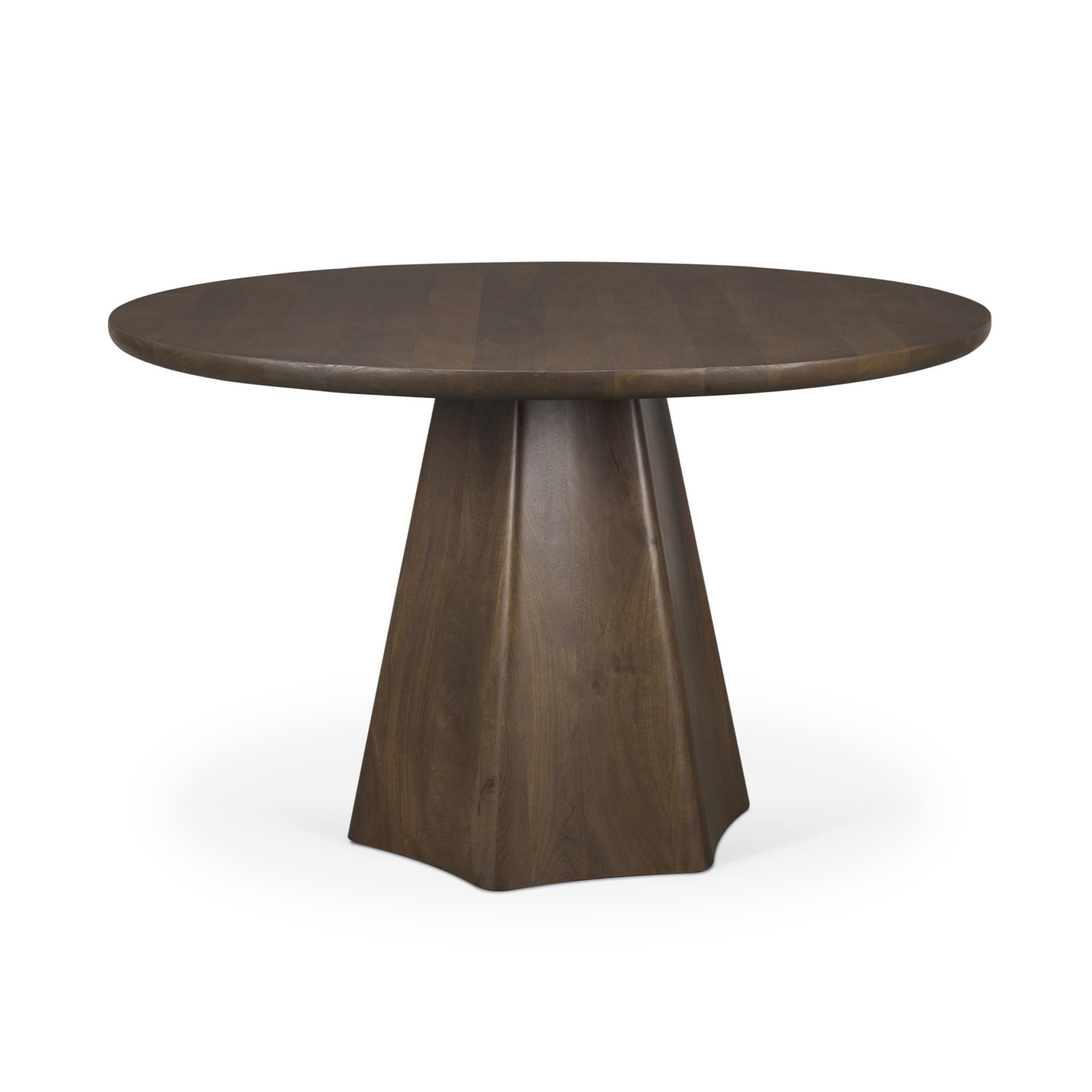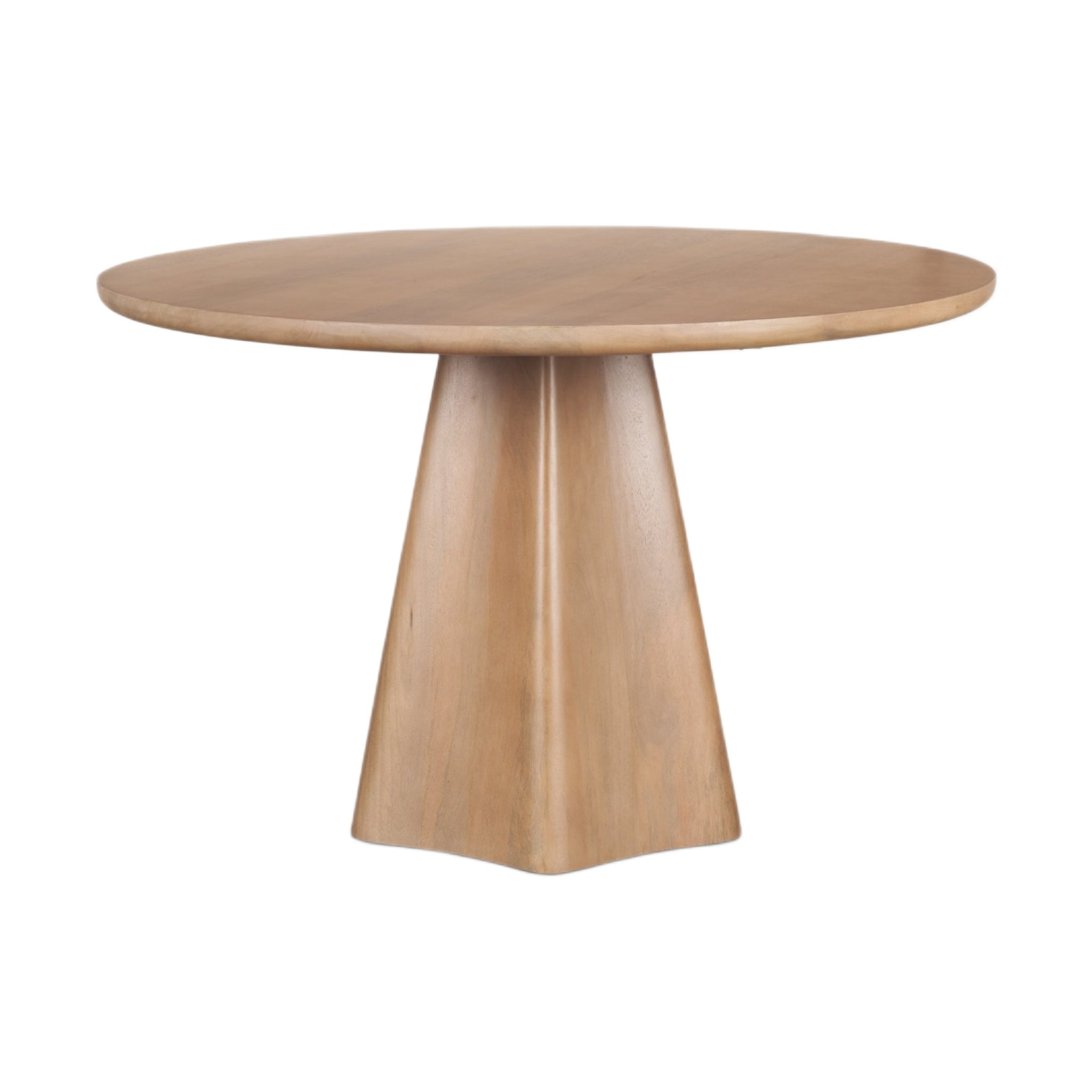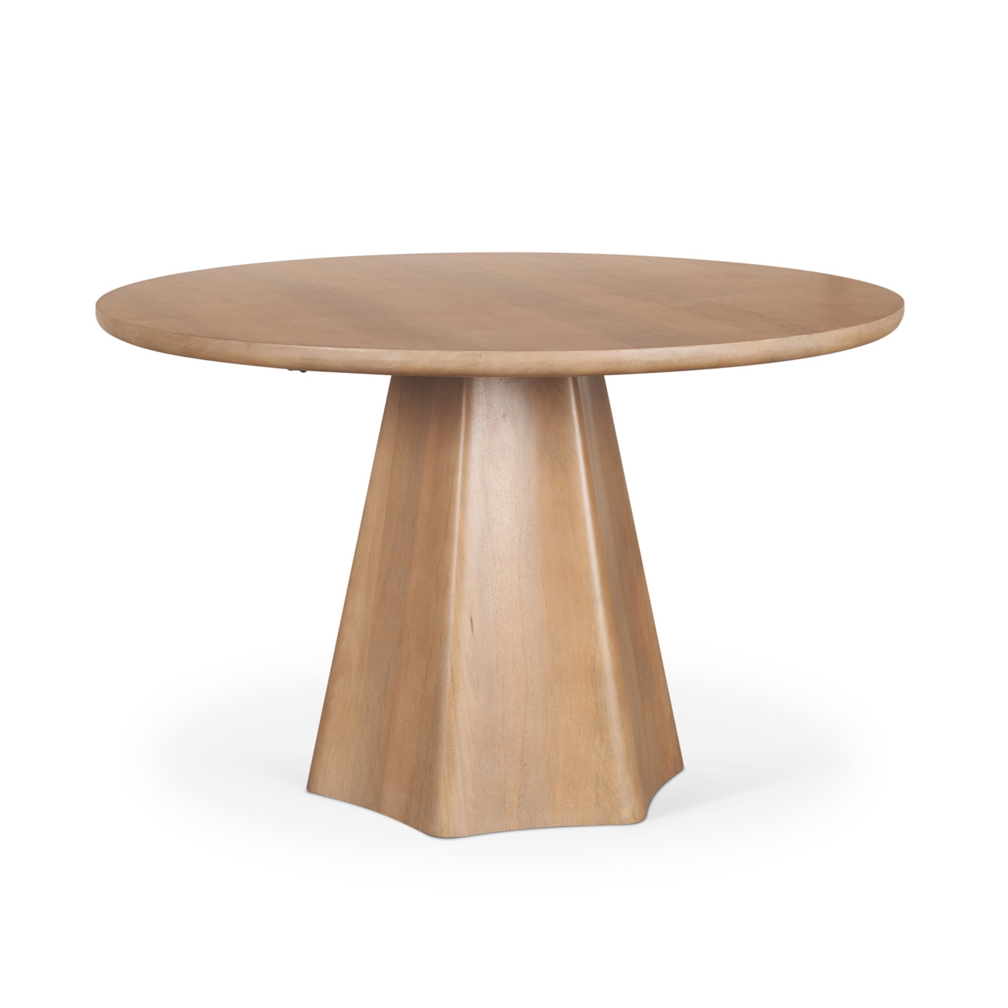 Nicholas Round Dining Table is constructed from smooth, wood with organic curves, featuring a wide scalloped base.