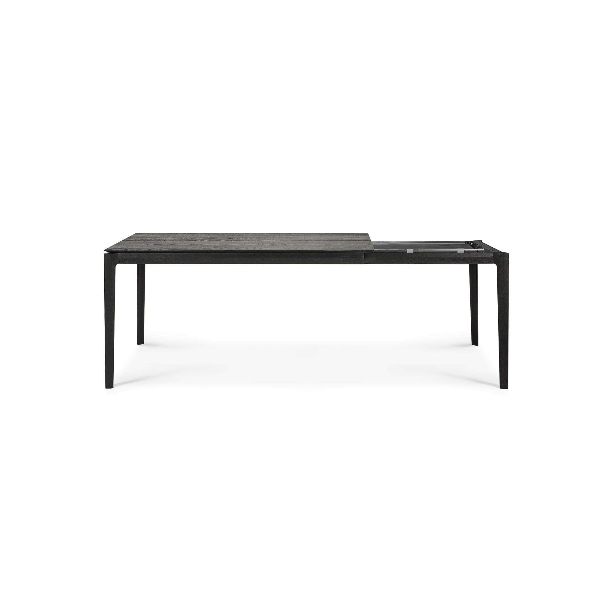 Our signature Bok table made extendable to bring even more people together. Its airy shape yet rock solid construction makes this solid oak black extendable dining table a timeless and remarkable design to enjoy for years to come.