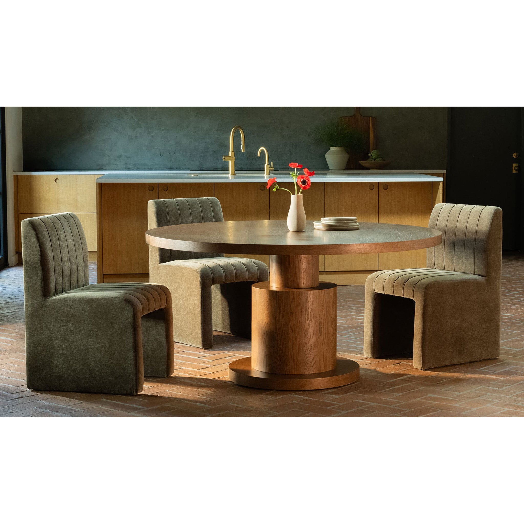 Curves with a sense of direction. Clayton finds its form in motion, drawing from spinning tops and stacked dishware. Its rounded base layers soft, circular shapes into something sculptural and grounded. A form that holds its own, while the curves keep it feeling easy. Modern, balanced, and quietly bold-the spin that stops the room.