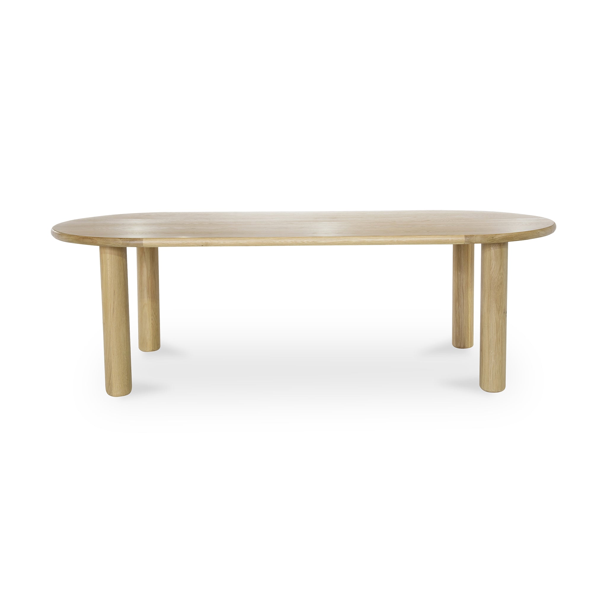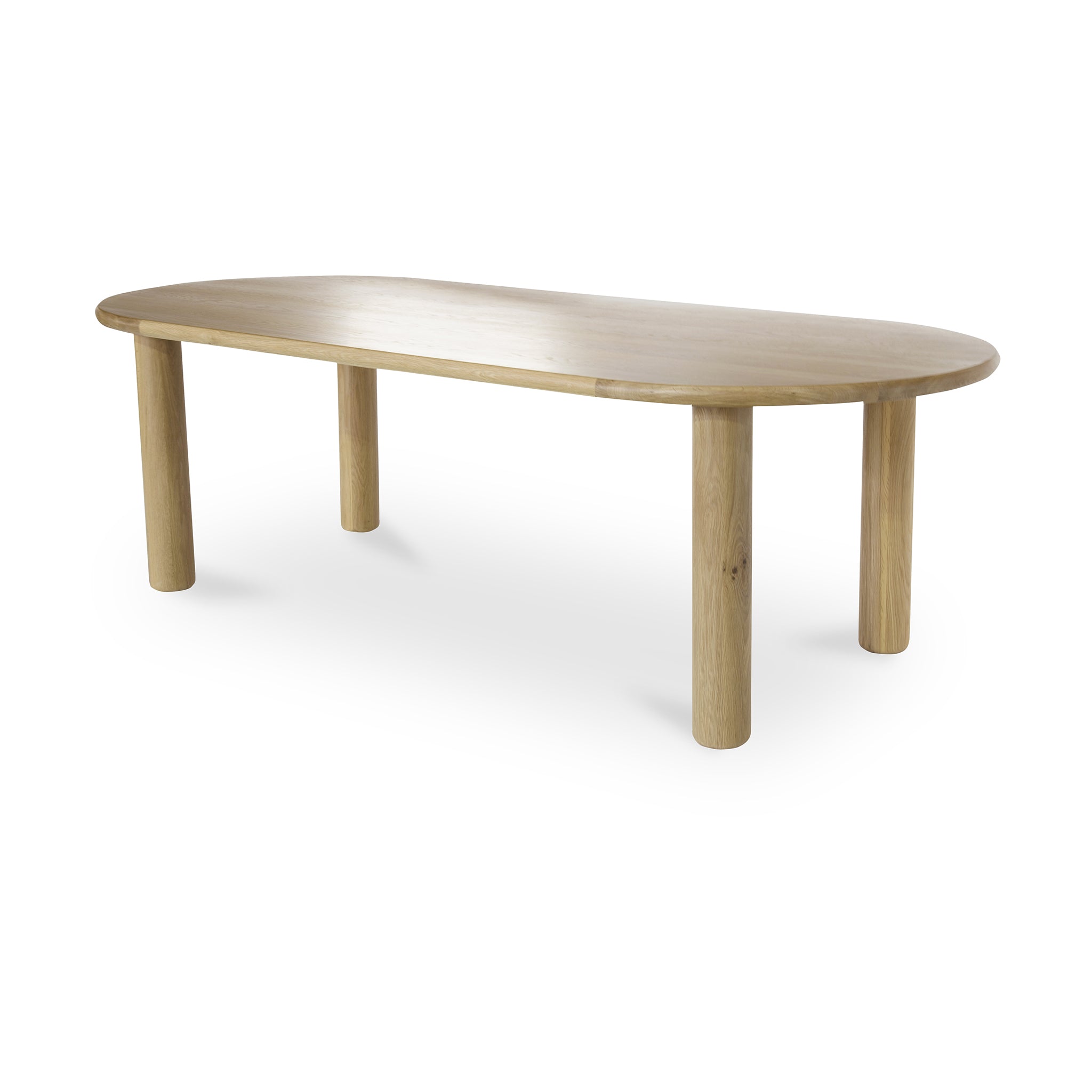 With its thick, rounded edge and sleek column legs, the Elias dining table adds a touch of warmth, comfort and sustainable design. Featuring a light oak finish, this table brings a sense of visual lightness and effortlessly complements various wood tones. Crafted from FSC-certified oak wood and veneer, the Milo showcases exquisite craftsmanship and ensures responsible sourcing from environmentally managed forests.