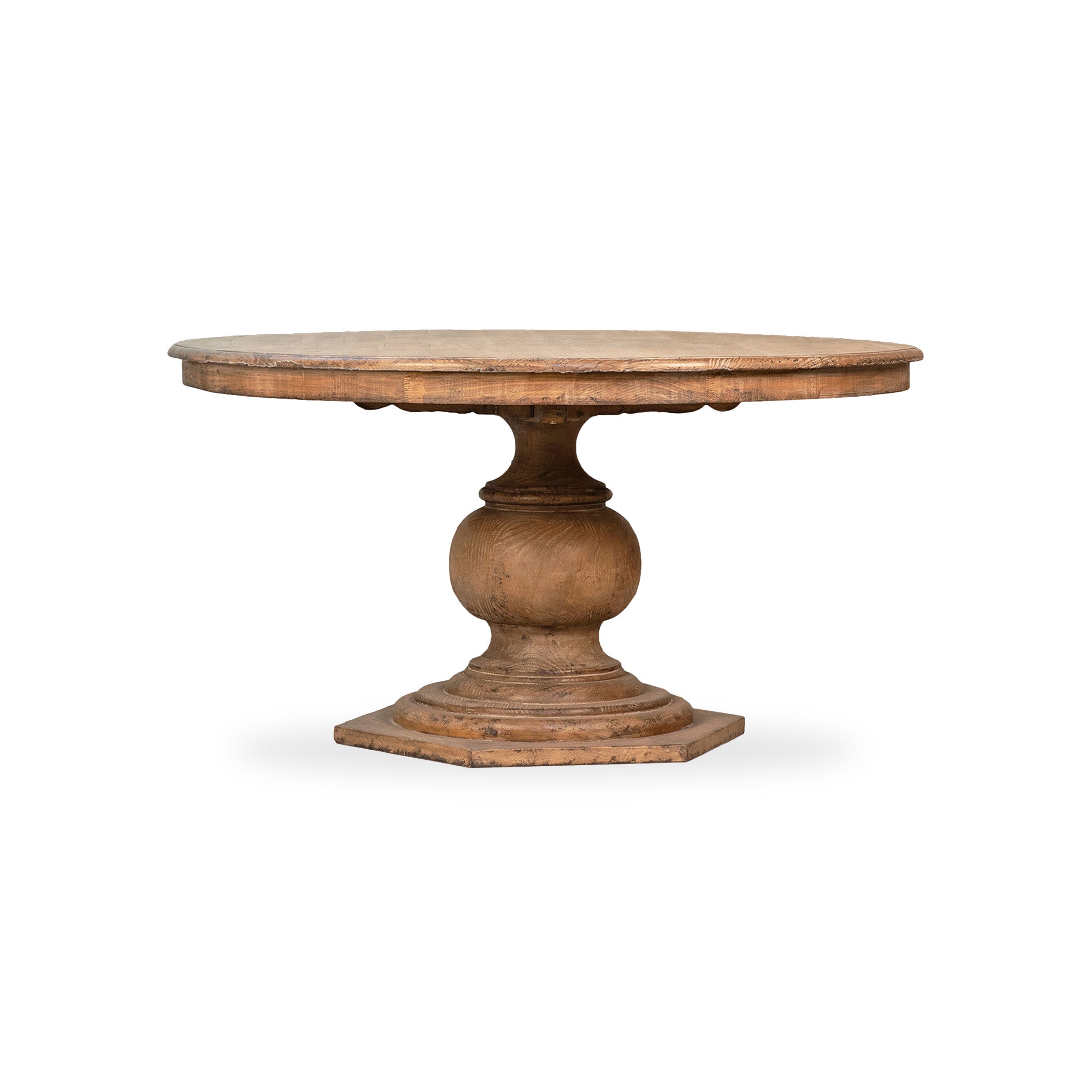Elevate your dining experience with the Foster Dining Table, where every meal becomes an occasion to remember. With its timeless appeal, this table boasts an antique natural wood sealed finish that exudes charm and sophistication, making it a focal point in any dining space. The carved pedestal base, adorned with a unique globe-like center, adds a touch of distinction to the design. Topped with a round tabletop, the table offers ample space for gatherings and meals. Finished with a beautiful antique wash, the natural grains and texture of the wood are brought to life, enhancing its rustic allure.