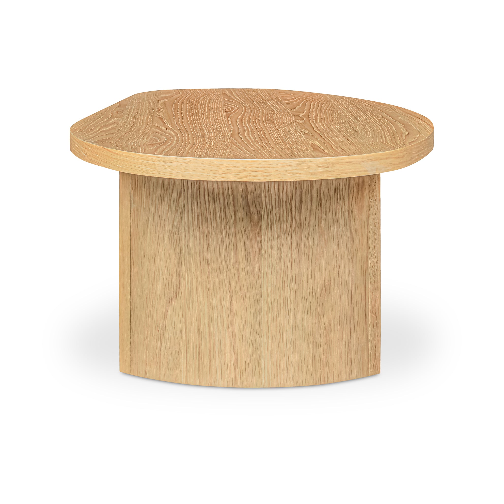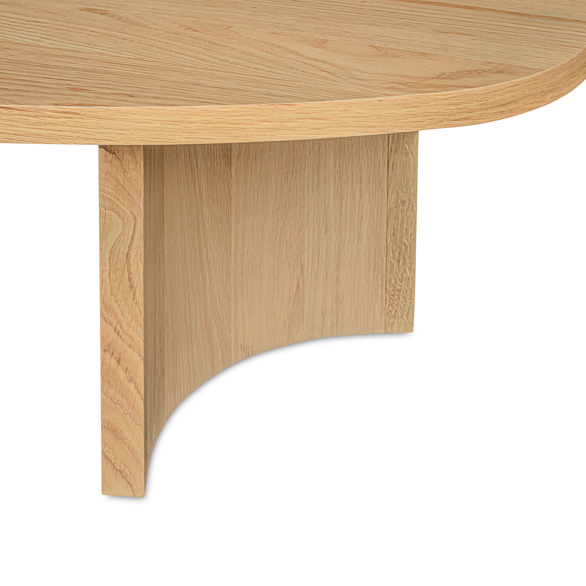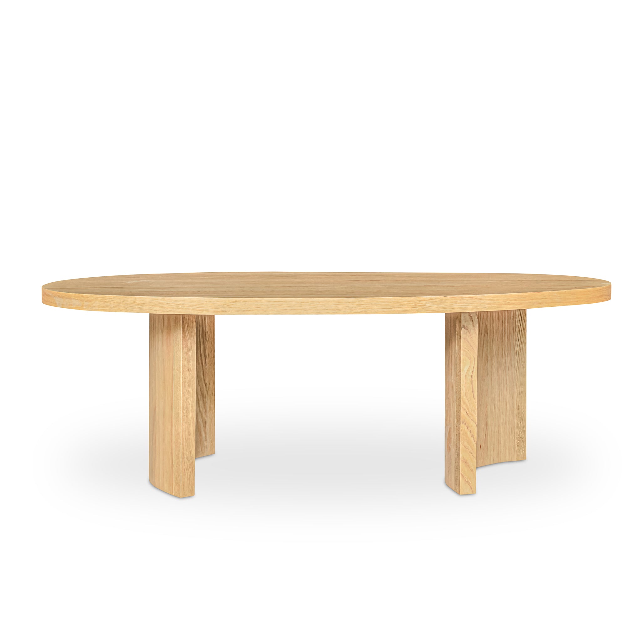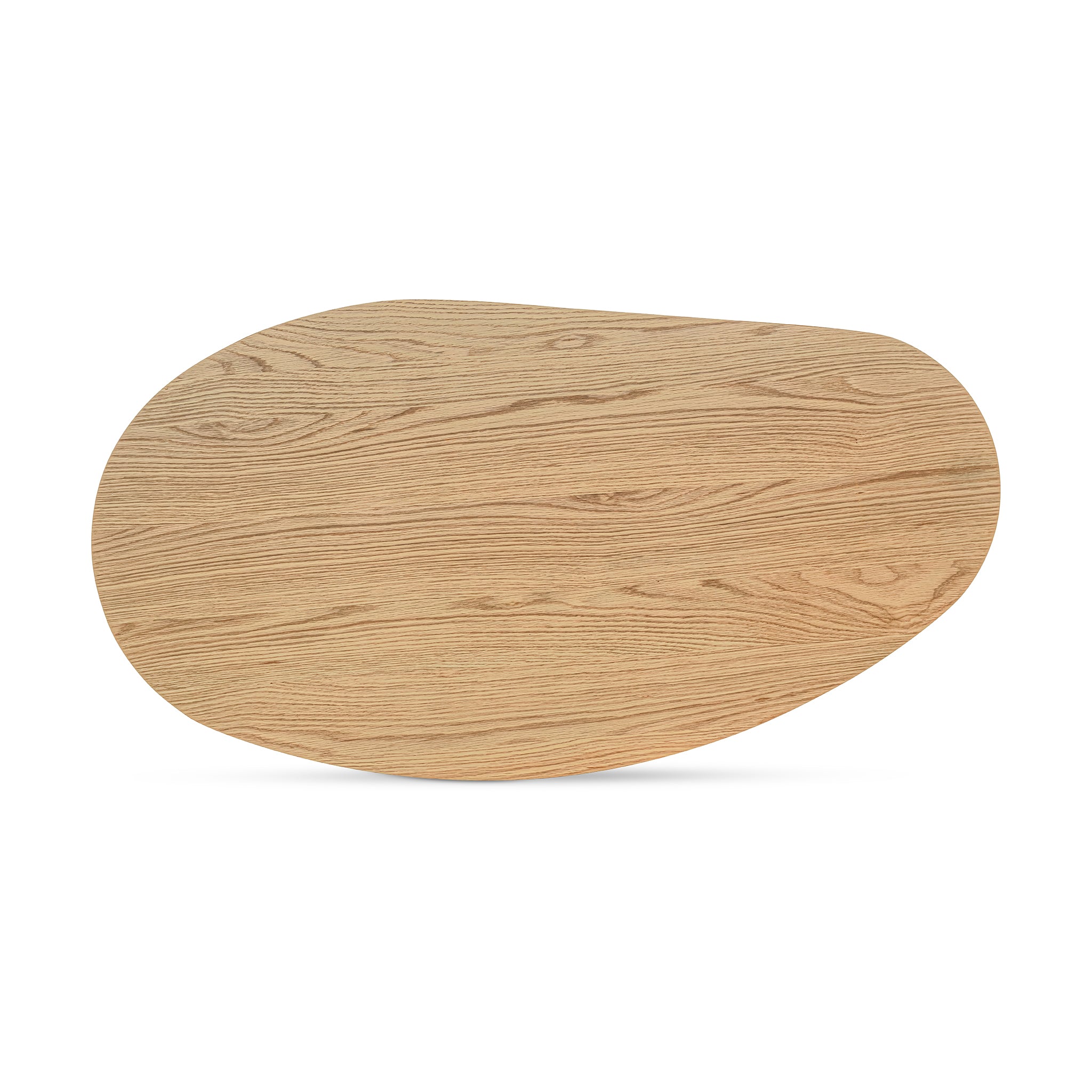 Infused with the serene beauty of nature, the Layla dining table's freeform design takes inspiration from the organic contours of a tranquil pond. With one gently rotating away from the other, the simplicity of the curved bases echoes the fluidity of natural landscapes. Finished in warm natural oak veneer, the table introduces a balanced and organic touch to various interior styles.