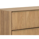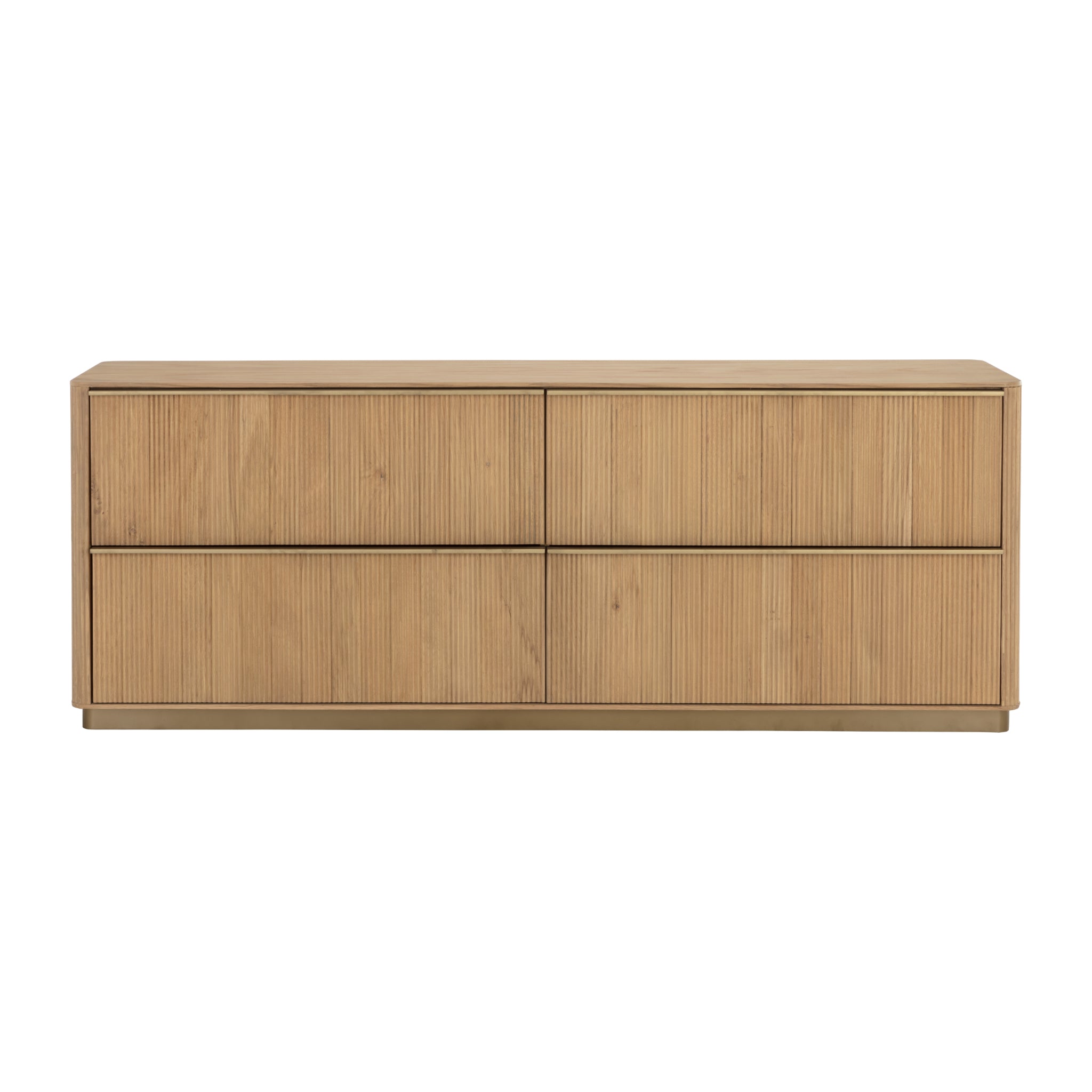 The Keaton Dresser brings form and function to life. Crafted with a rustic oak veneer with vertical reeding. A gold steel base finishes the look.