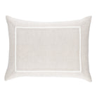 With its single ivory, tailored pleat and comfy linen chambray fabric, this neutral sham is a natural choice for the beach house or home, sweet home. Crafted to be an exact color match to our Hampton Ticking Linen Natural duvet, shams, and decorative pillows. Natural fibers. Closure: Ties. Edging: Knife Edge.