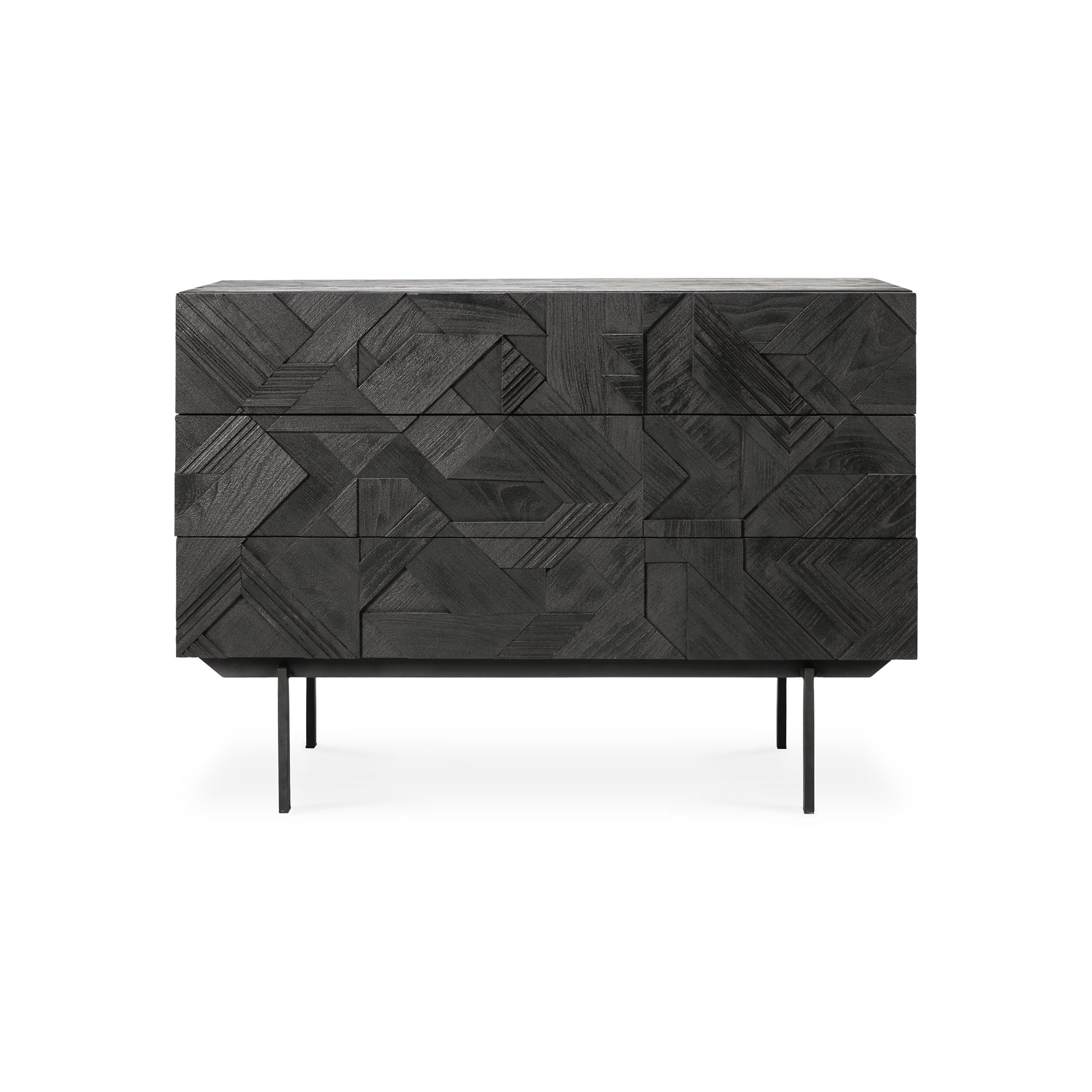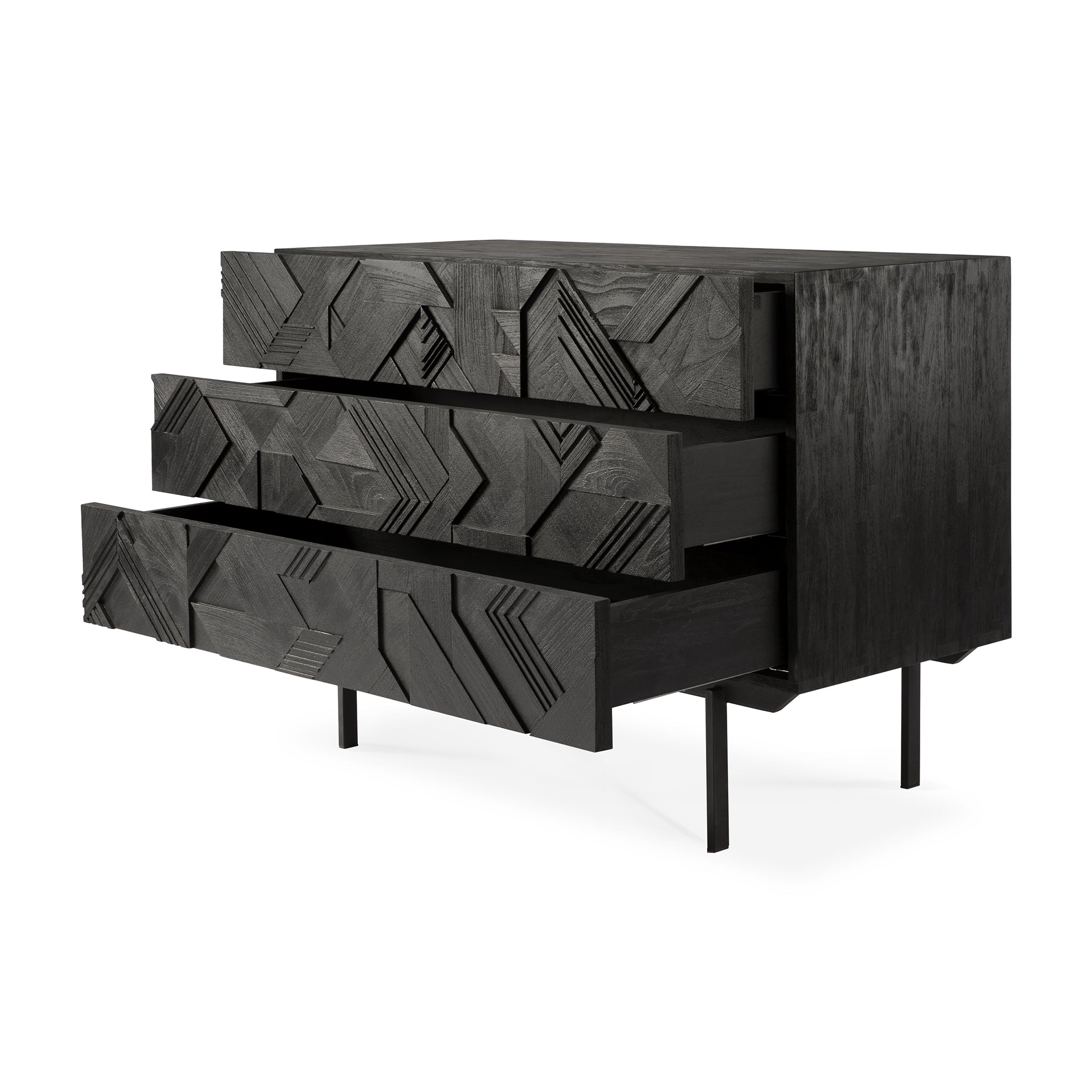 Graphic 3 Drawers Dresser in Varnished Teak Black
