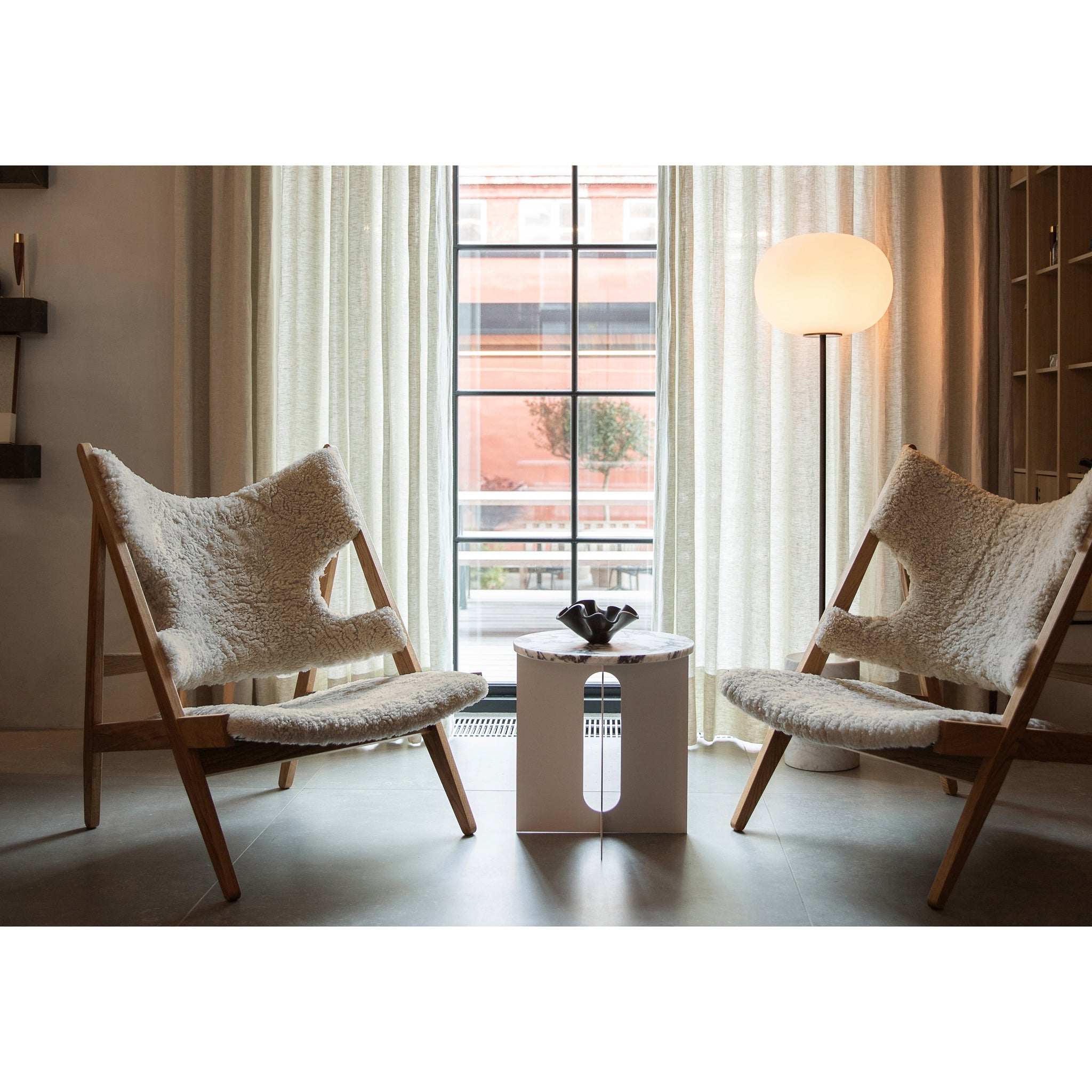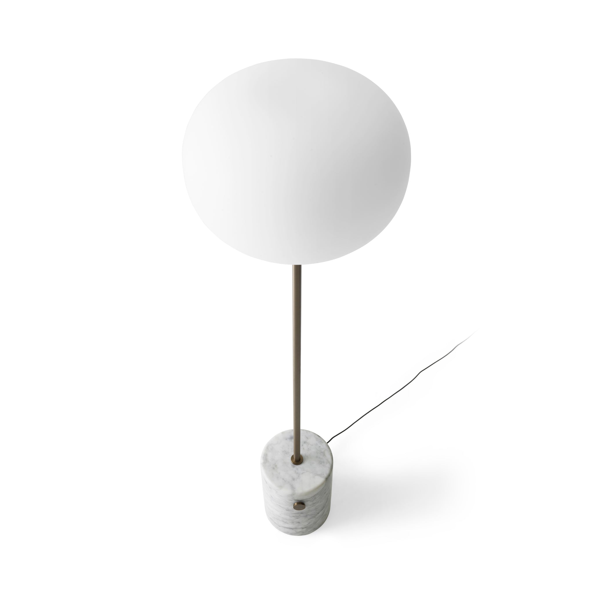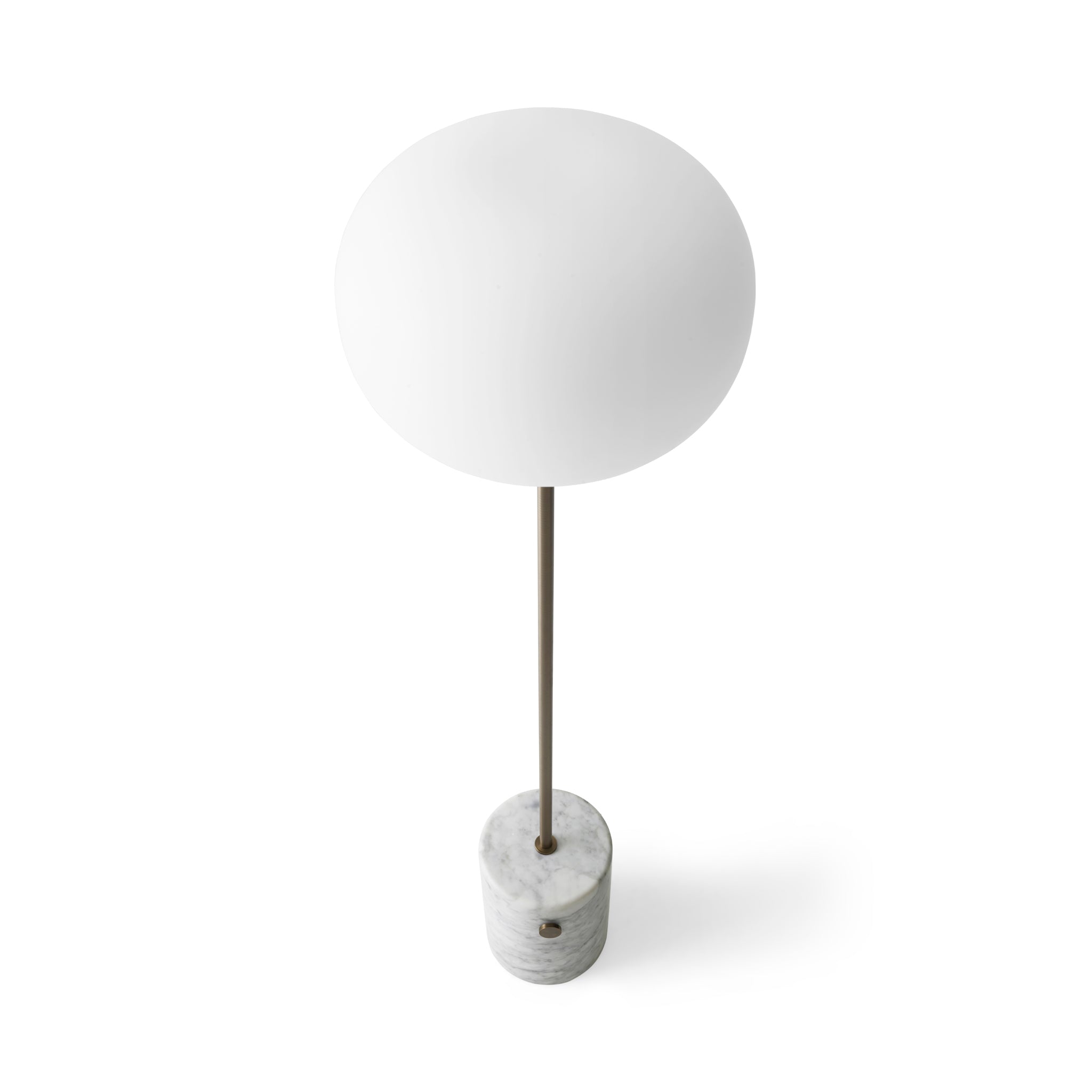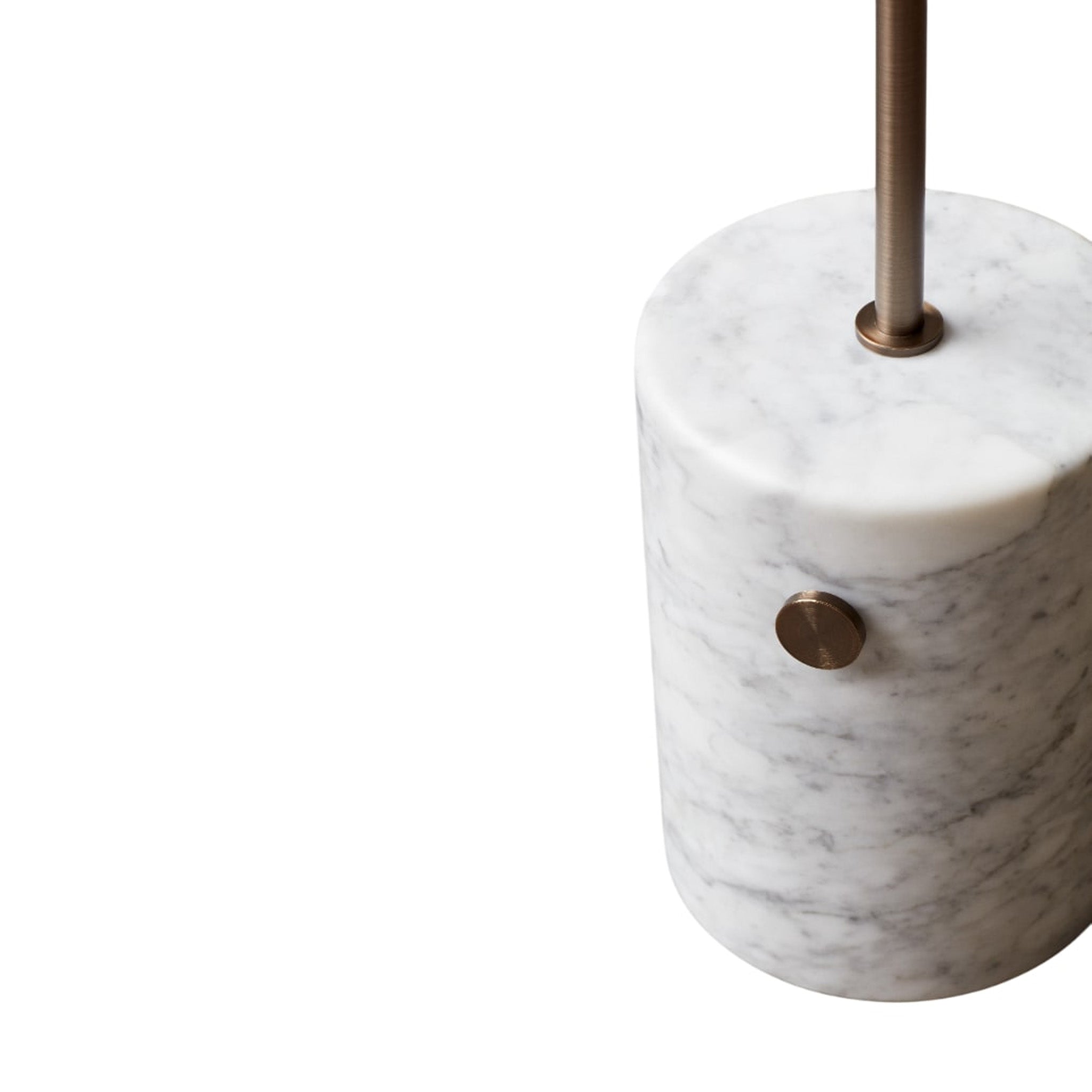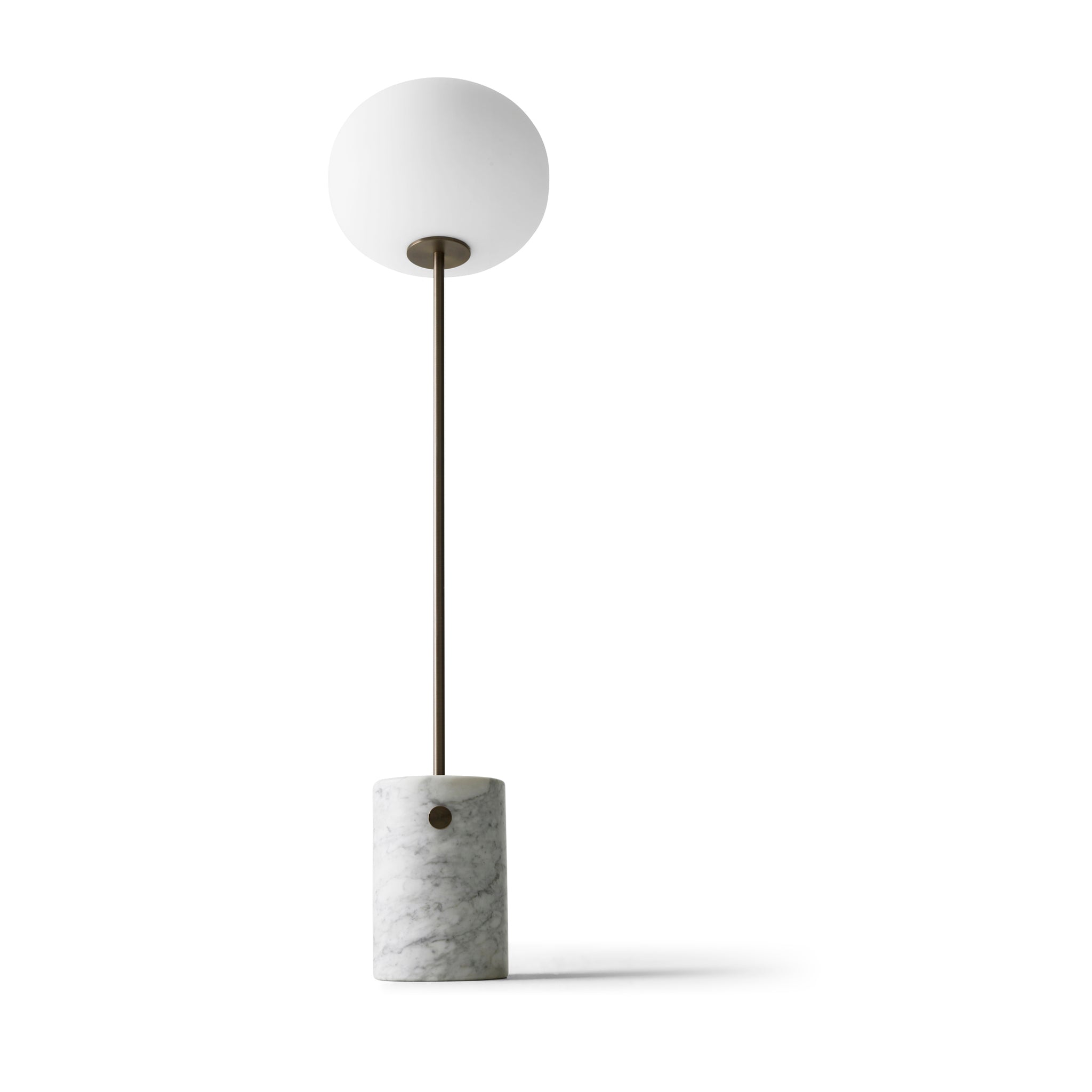 JWDA Floor Lamp is a refined, standalone design that merges contrasting elements to elegant effect. Set on a stem of powder-coated steel or solid brass, the shade is formed from opal glass into an elliptical shape, while the base retains its characteristic rounded form, available in either two types of marble or red travertine stone, each with unique veining and inclusions. A brushed or bronzed brass dimmer switch lets you control the brightness of the bulb - for reading or relaxing, or simply to create ambience in a room.
