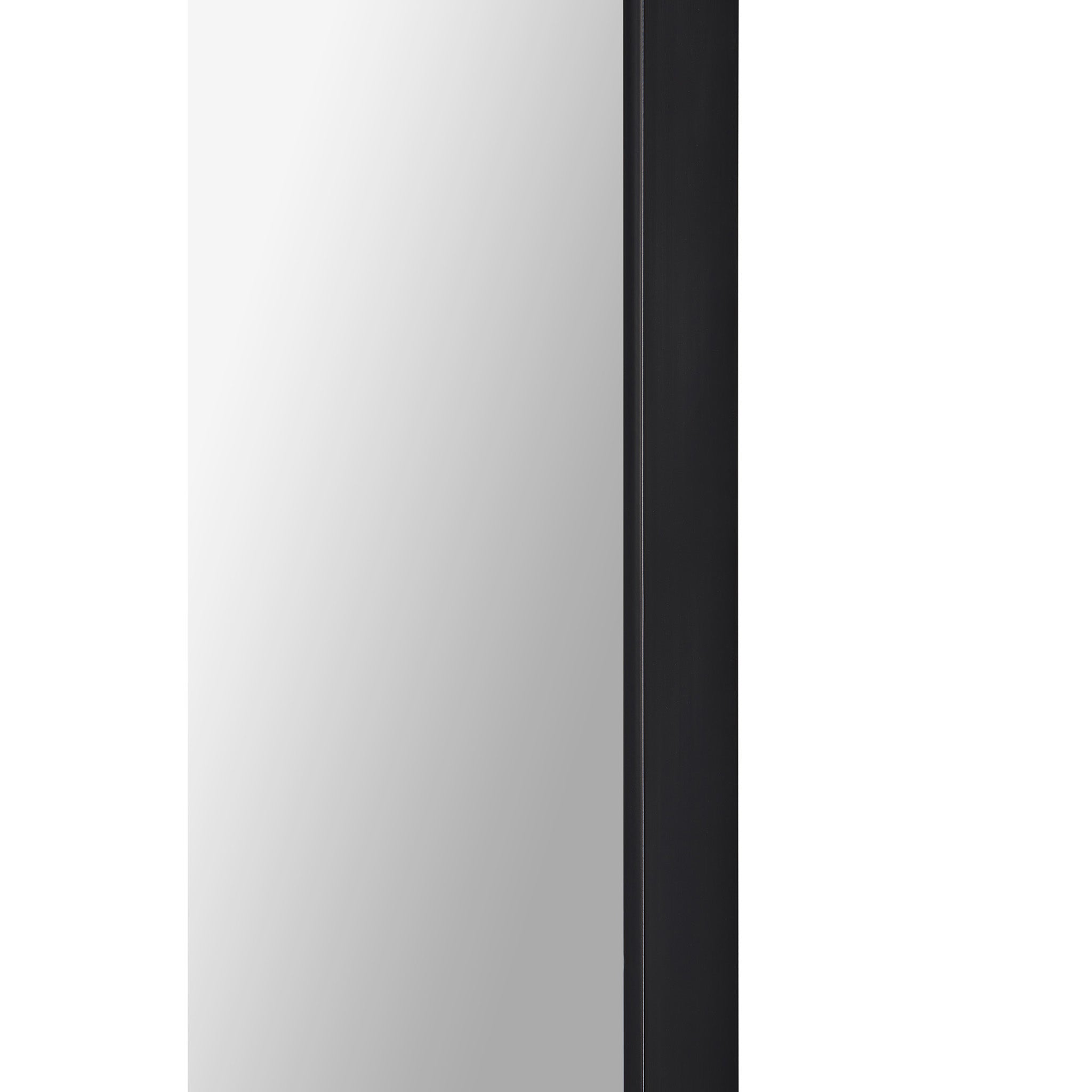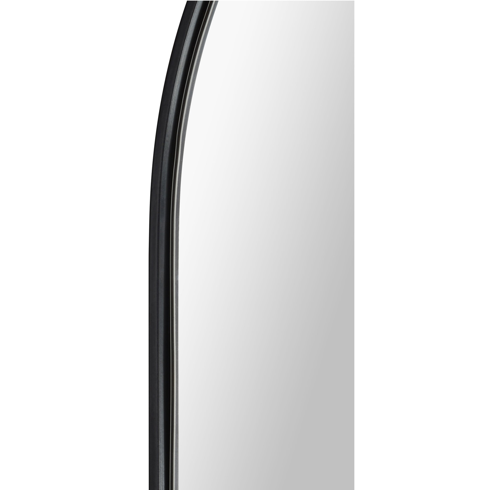 The August Mirror features a matte black powder-coated, curved iron frame. It seamlessly integrates into modern, industrial, and contemporary interiors alike. Its 40-inch by 60-inch build can hang horizontally or vertically offering a variety of styling options.