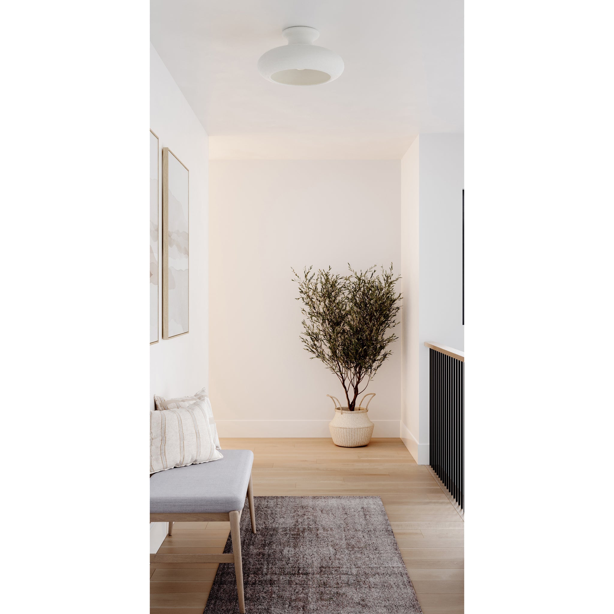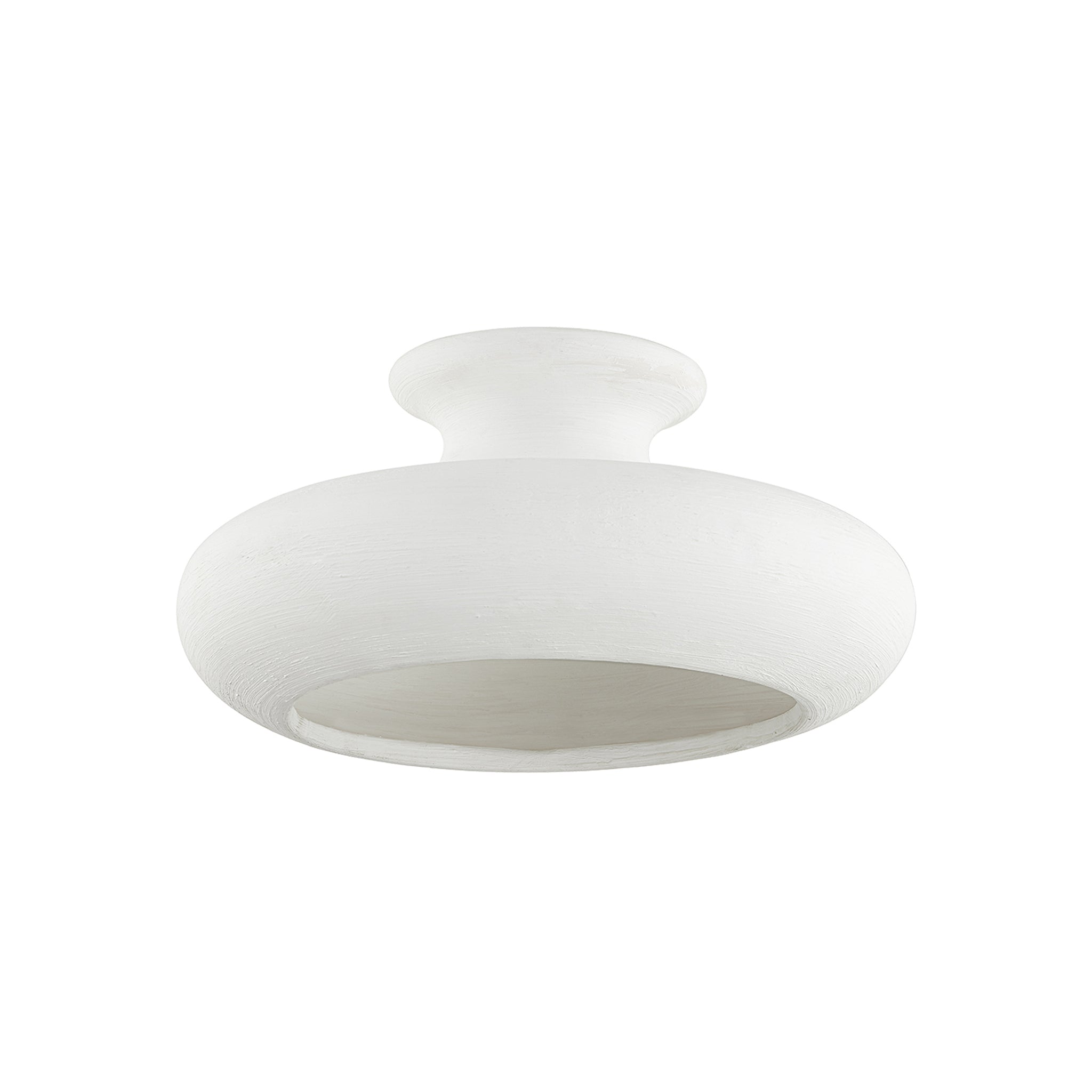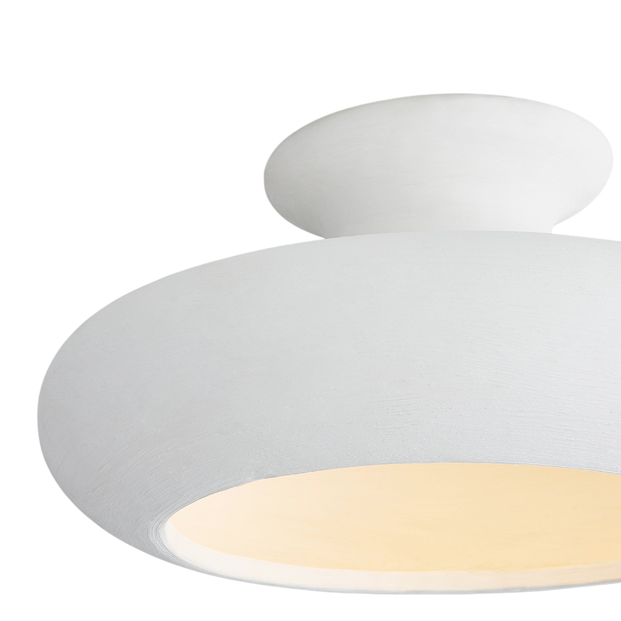 Reminiscent of a hand-thrown bowl, Annie is both modern and inviting. This soothing yet stylish white ceramic semi-flush is finely textured both inside and out, giving the fixture an earthy feel. When lit, light fills the shade with a soft, calming glow. Becki Owens for Hudson Valley Lighting.