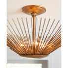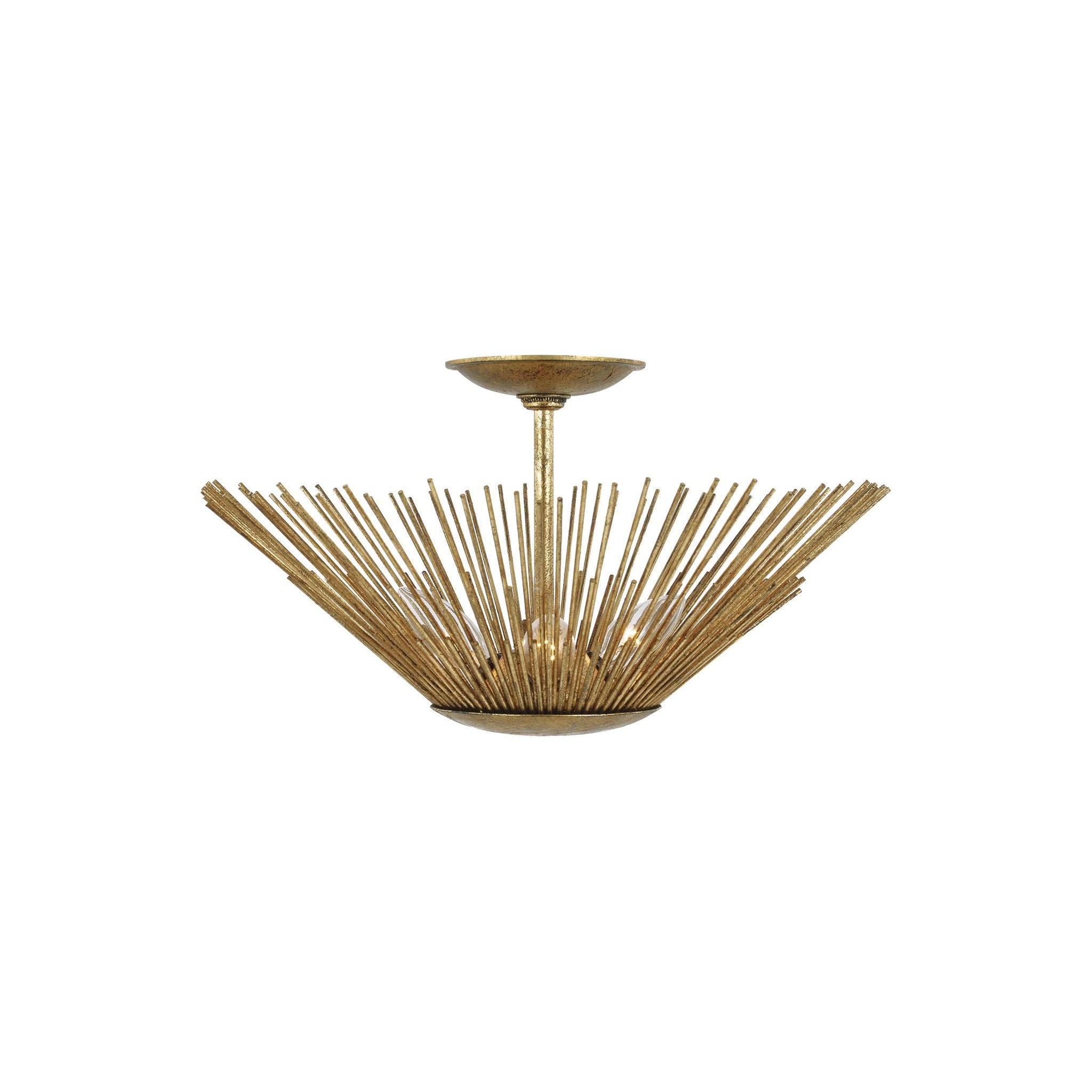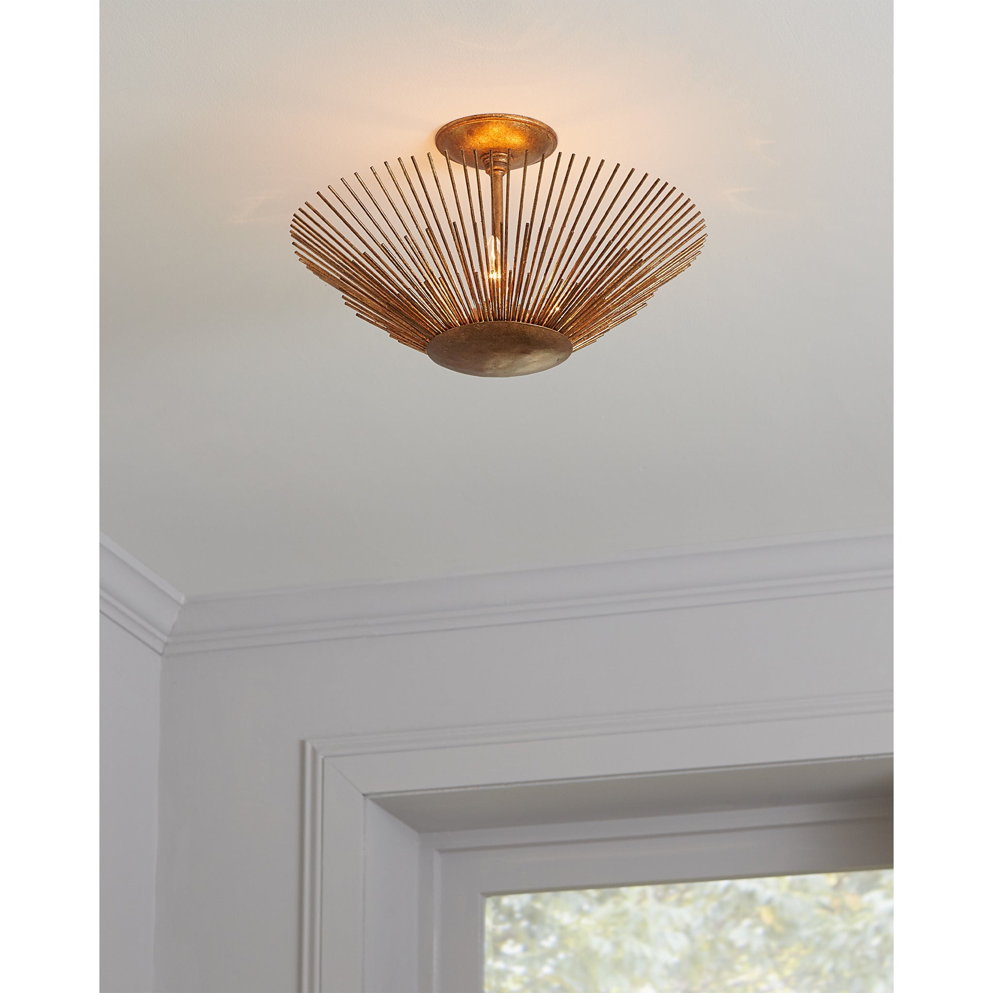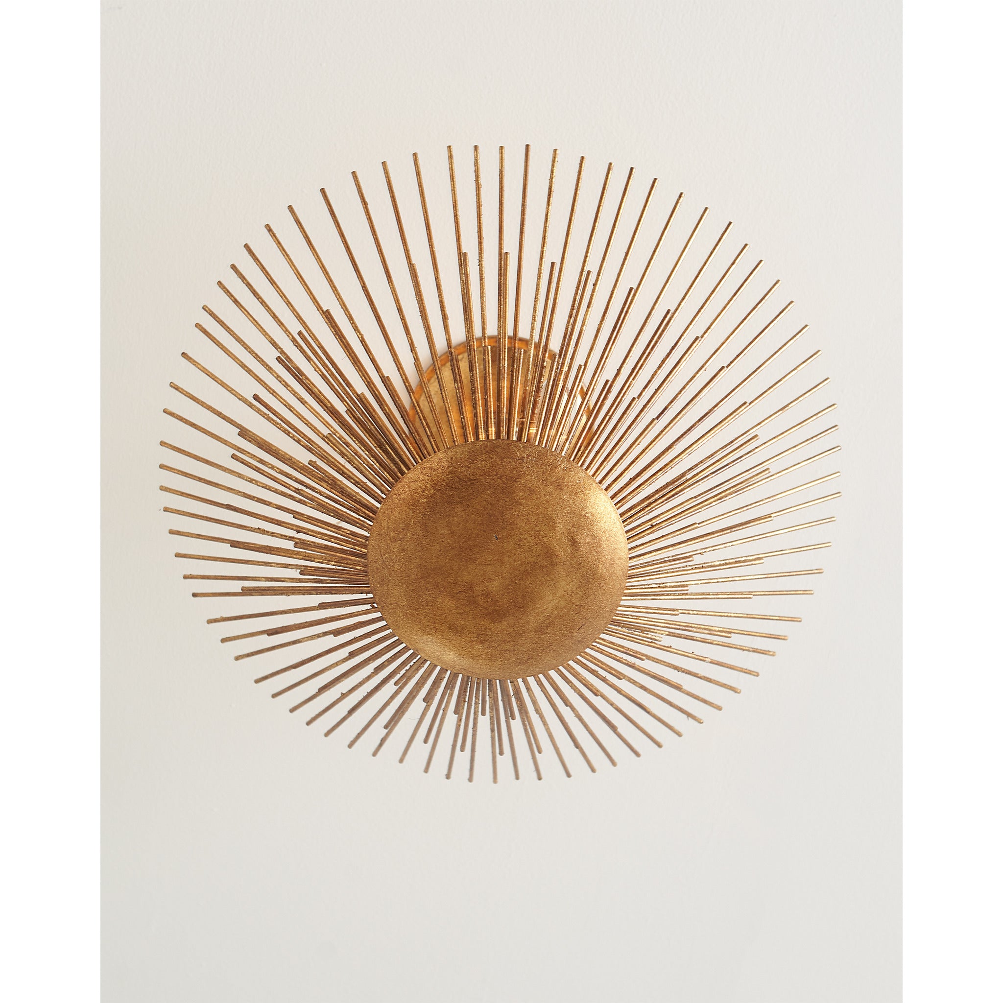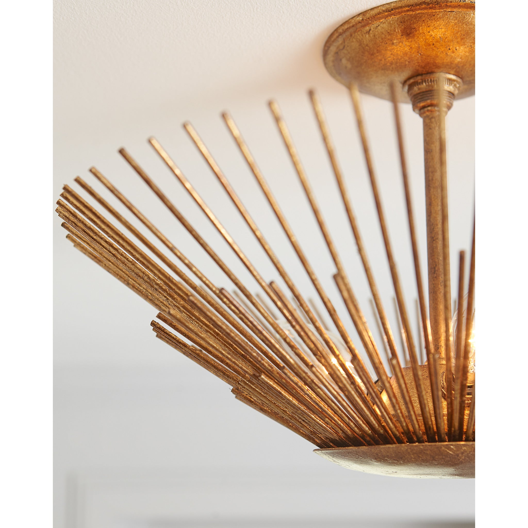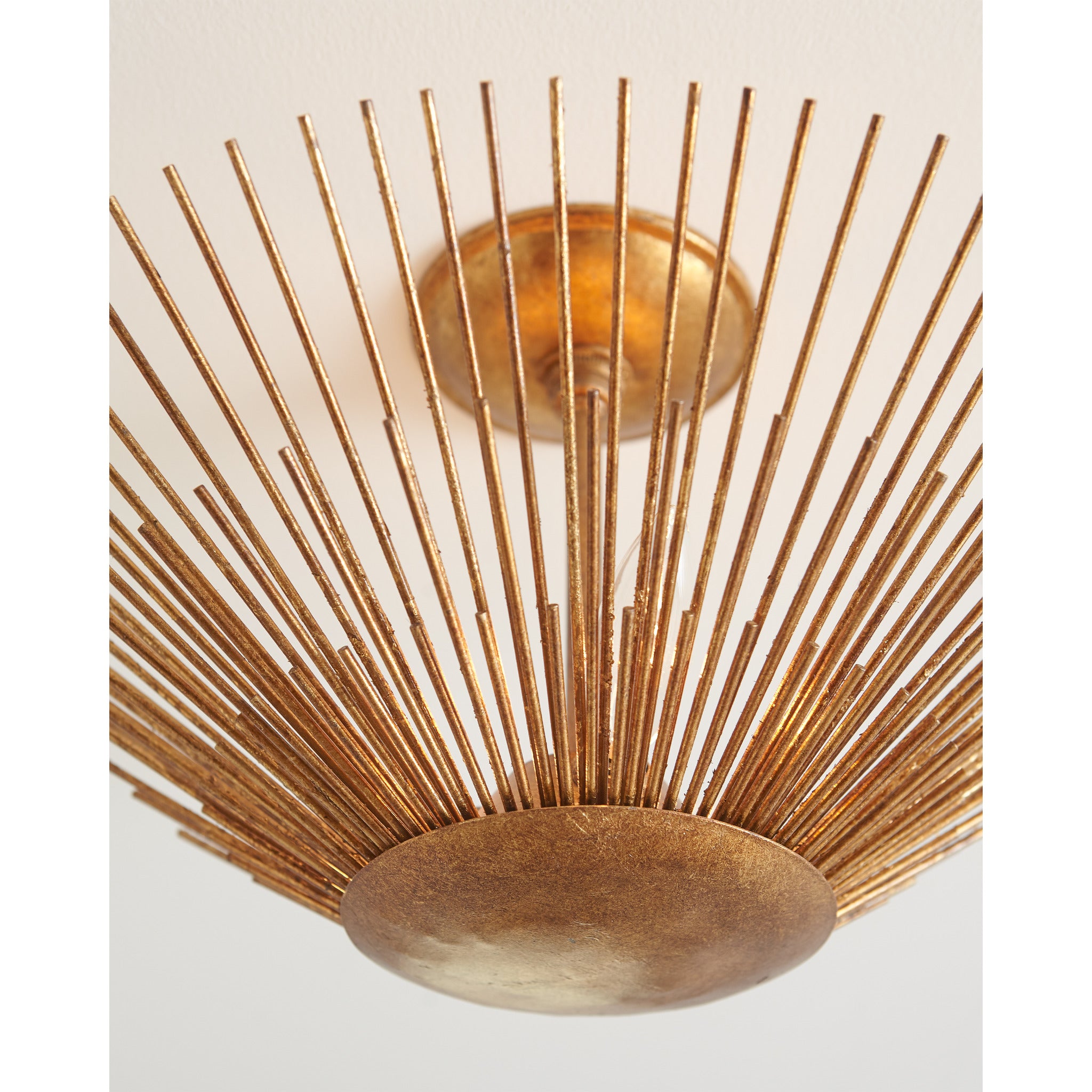 Helios is the Greek God of the Sun. Taking shape from its name, the Helios flush mount features a dynamically cut, sun-like form and gilded iron finish.