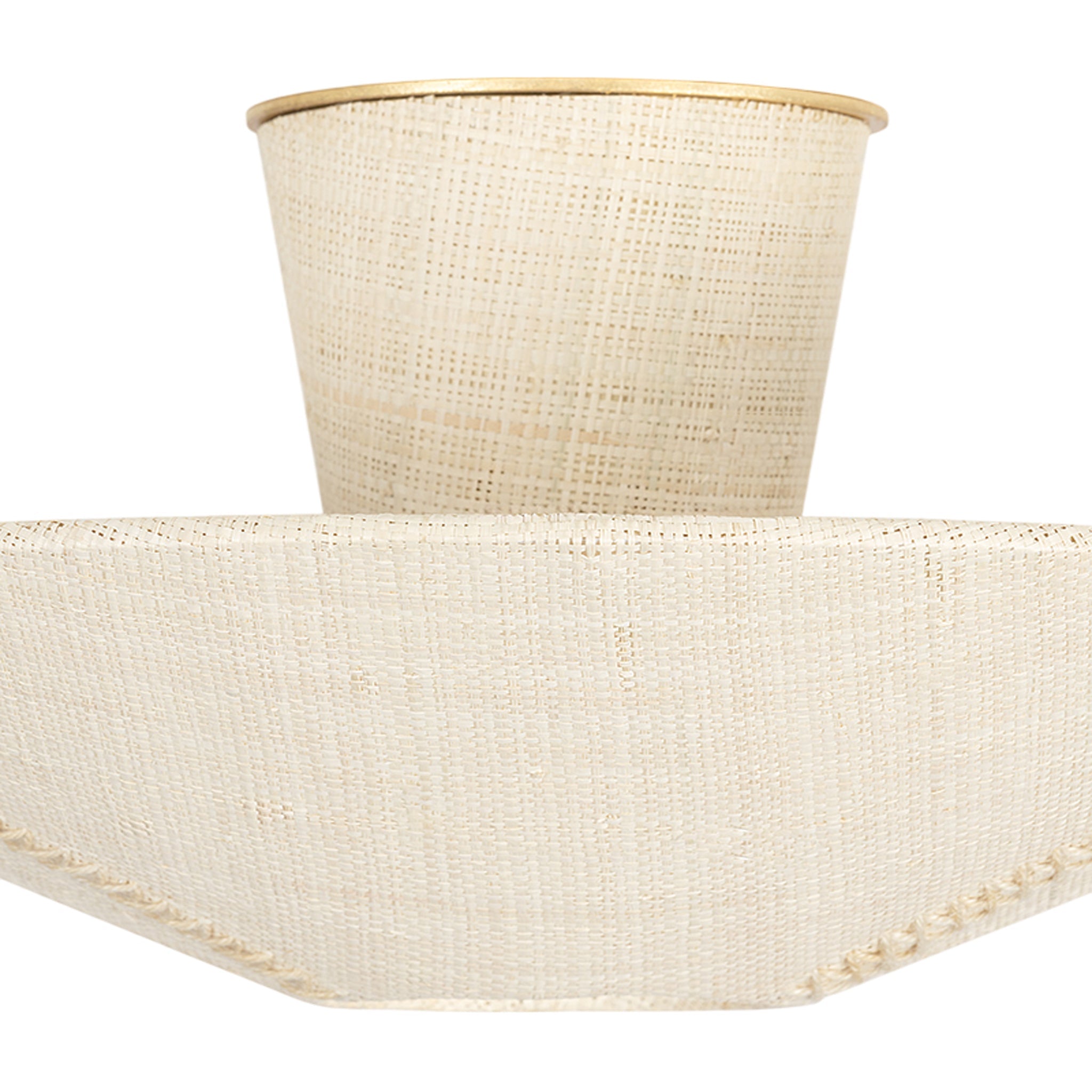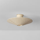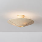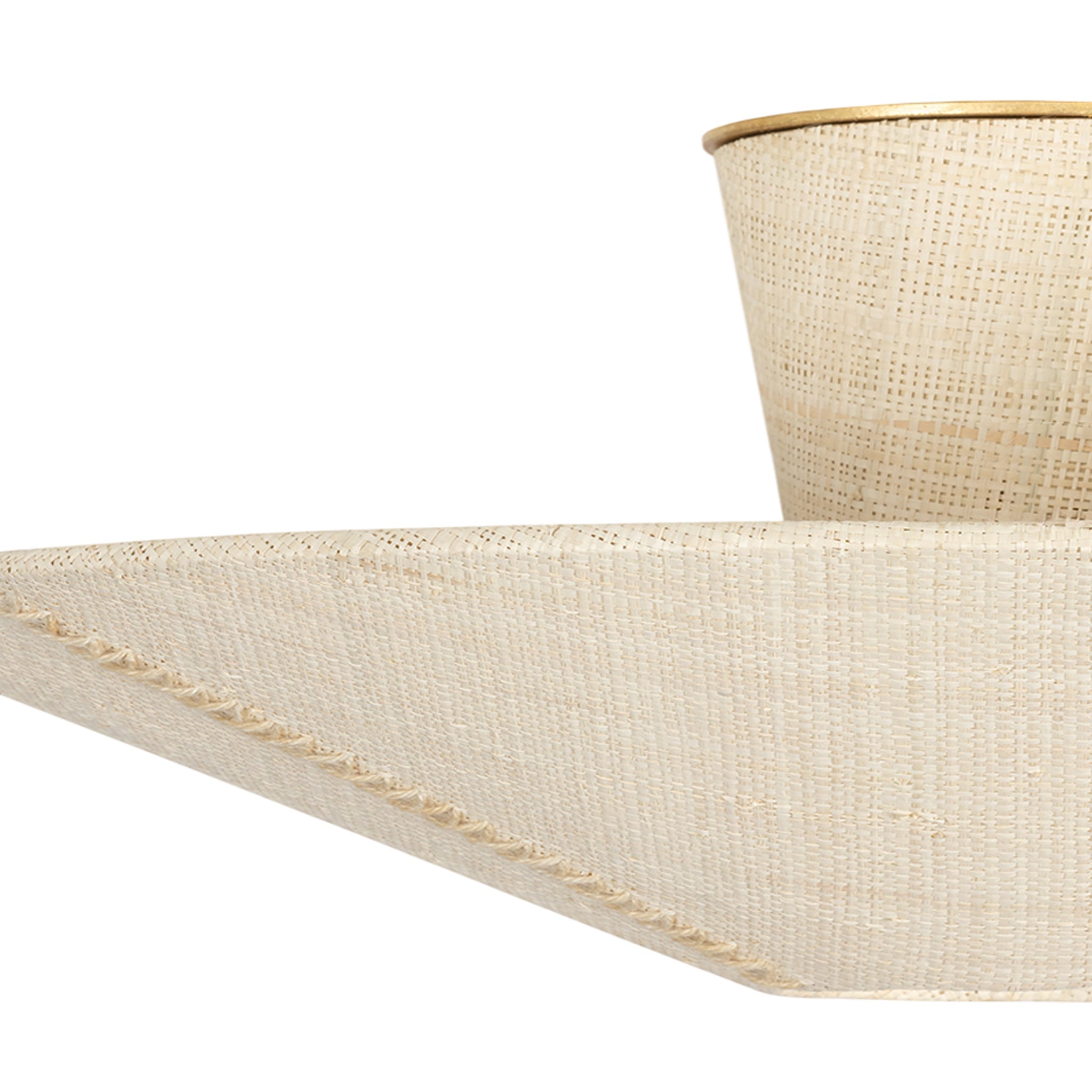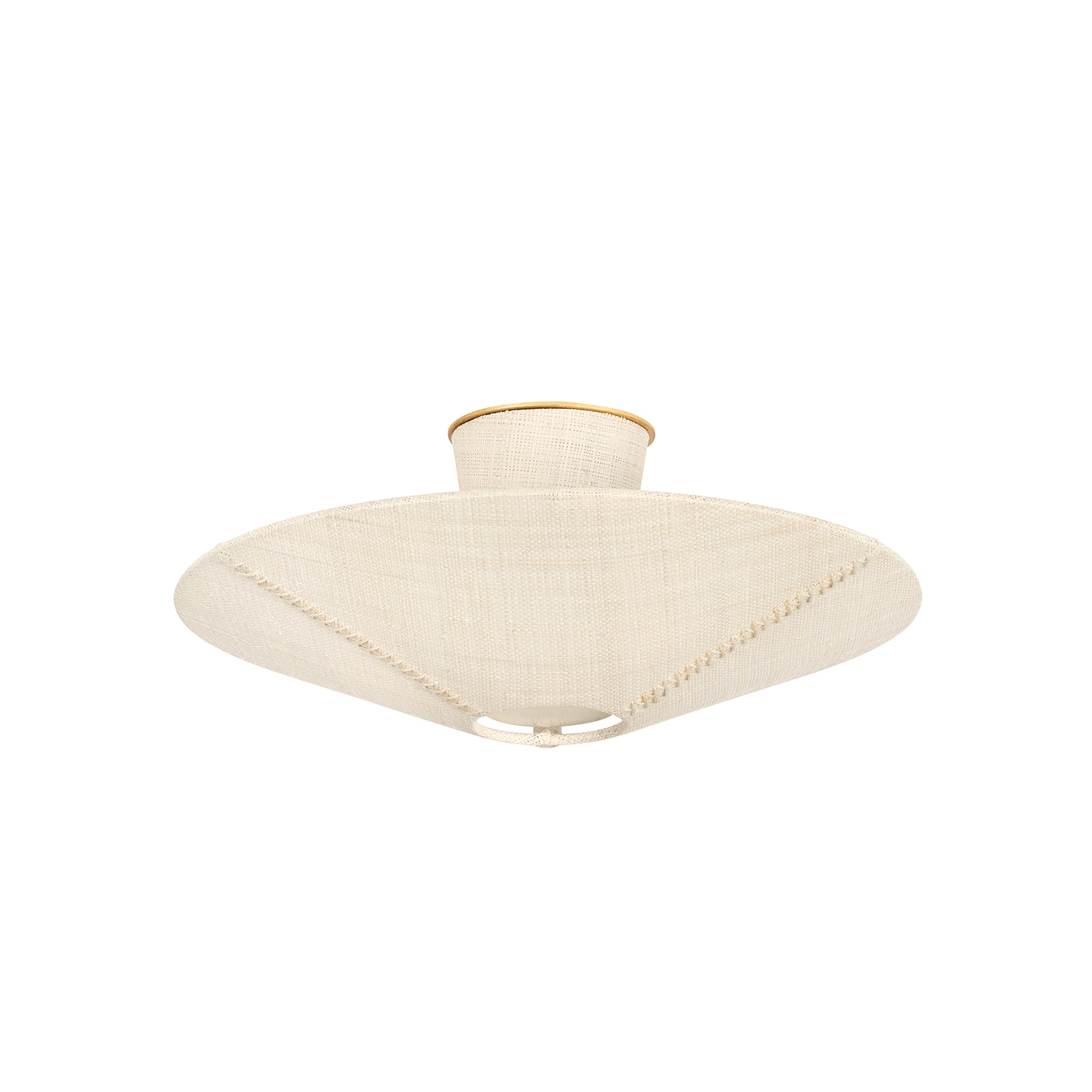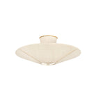 Salisbury Mills tells a natural material story that adds instant freshness to a coastal or bohemian space. Woven from Saguran Fabric, the shade serves as a gentle diffuser. The canopy and lower plate of this artisanal semi flush mount are finished in Gold Leaf, adding a luxe note. *Due to the one-of-a-kind nature of the medium, exact colors and patterns may vary slightly from the image shown.