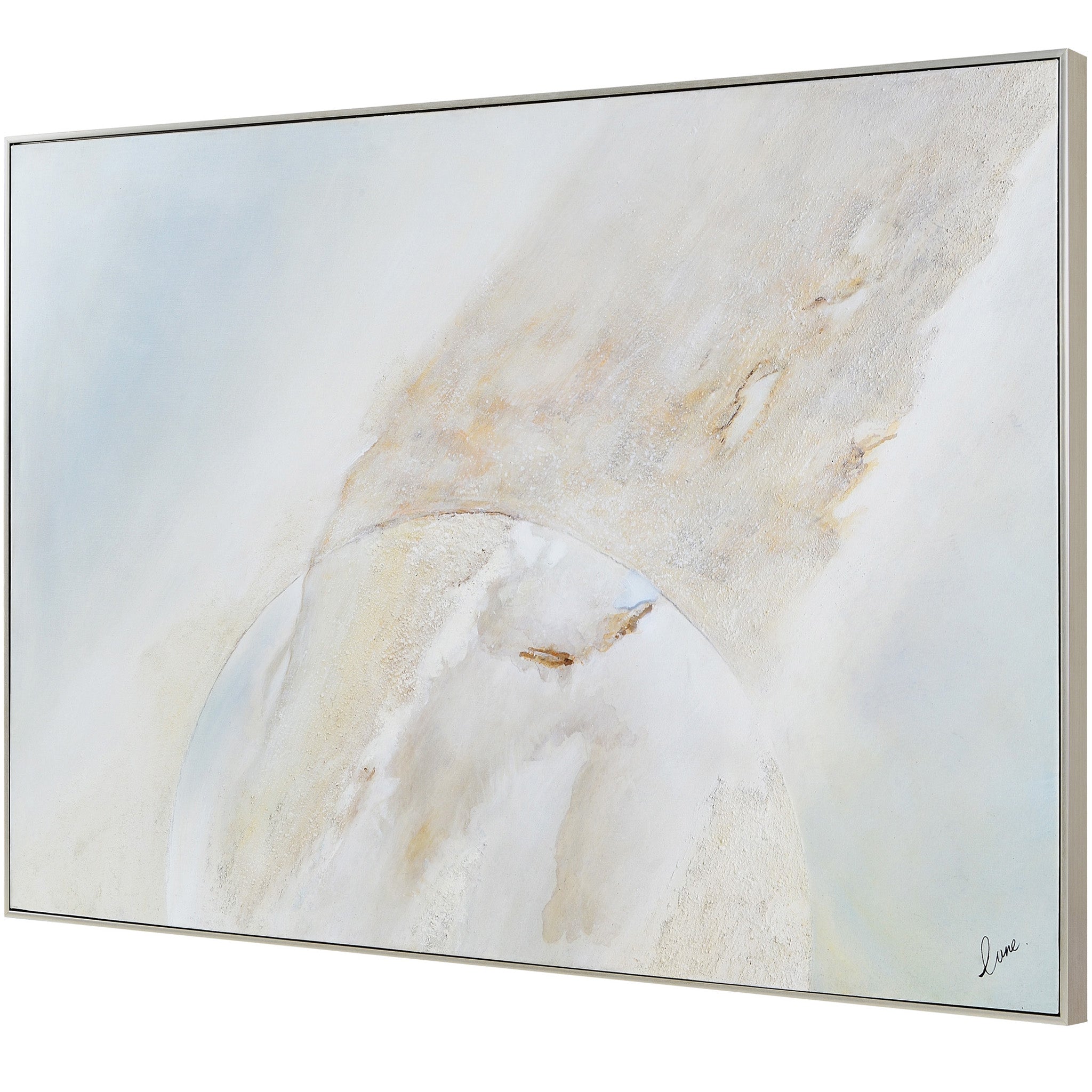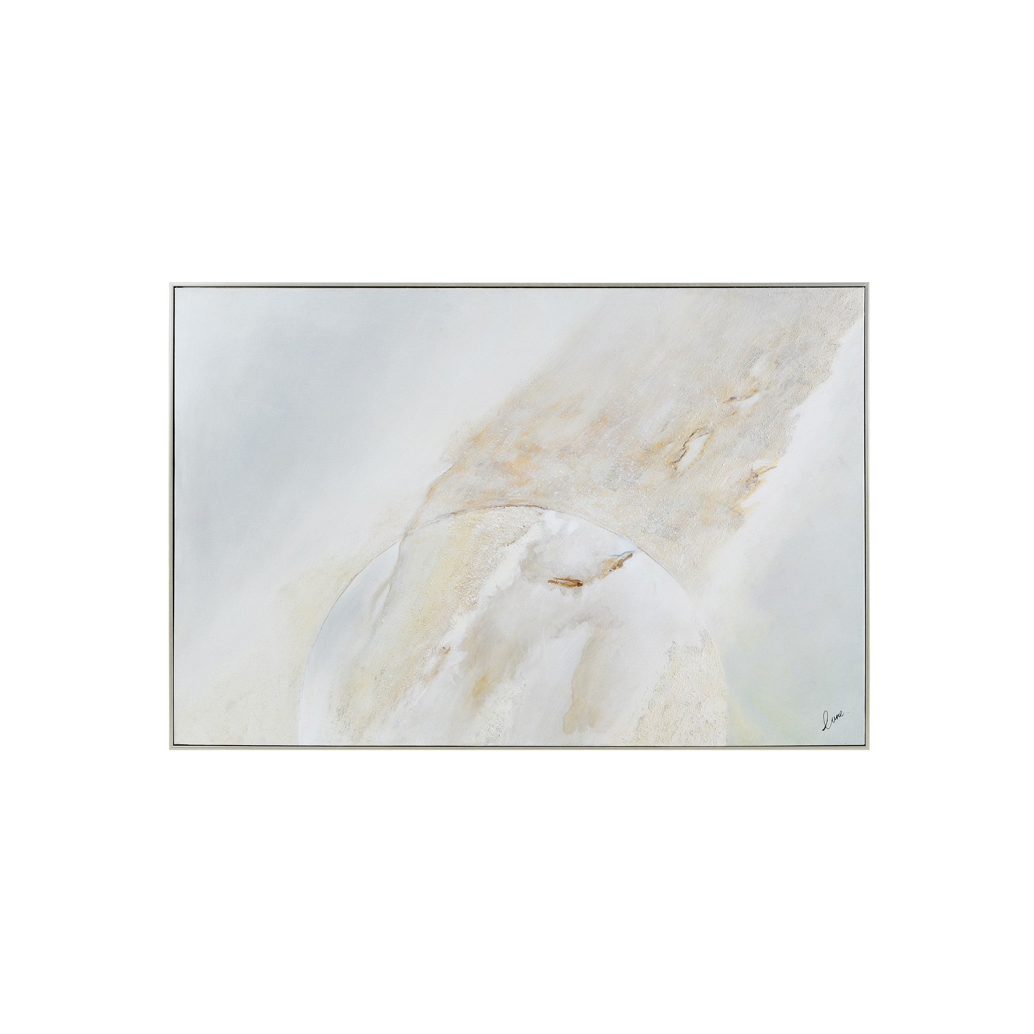 Evocative of marble and the moon, one can decide what the Dimitri Canvas work of art depicts while styling within the interior. The soothing, heavy textured hand-painted print is optimal for a bedroom space where creating a calm atmosphere is key. A thin champagne/silver frame corresponds idyllically with the gray palette of the piece.
