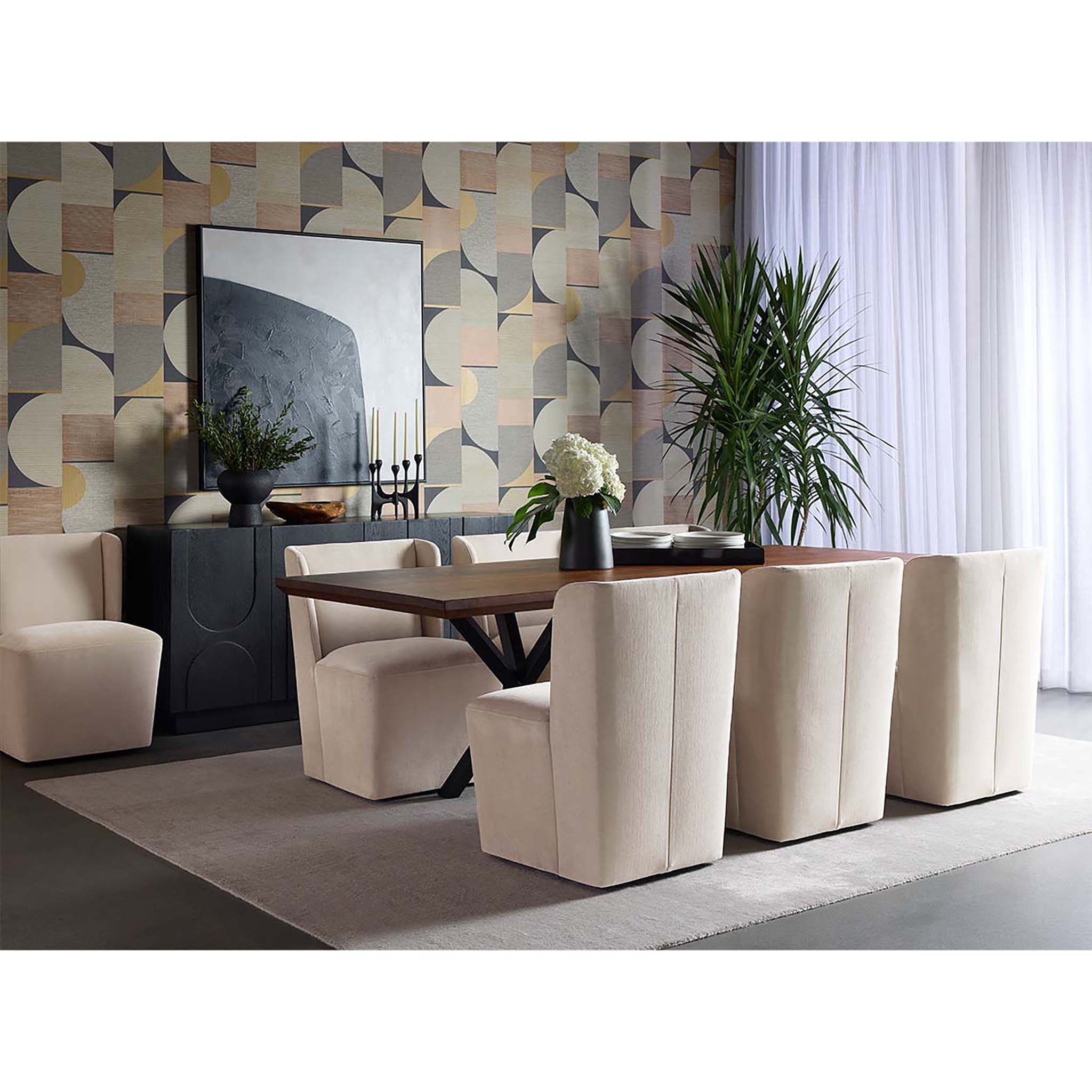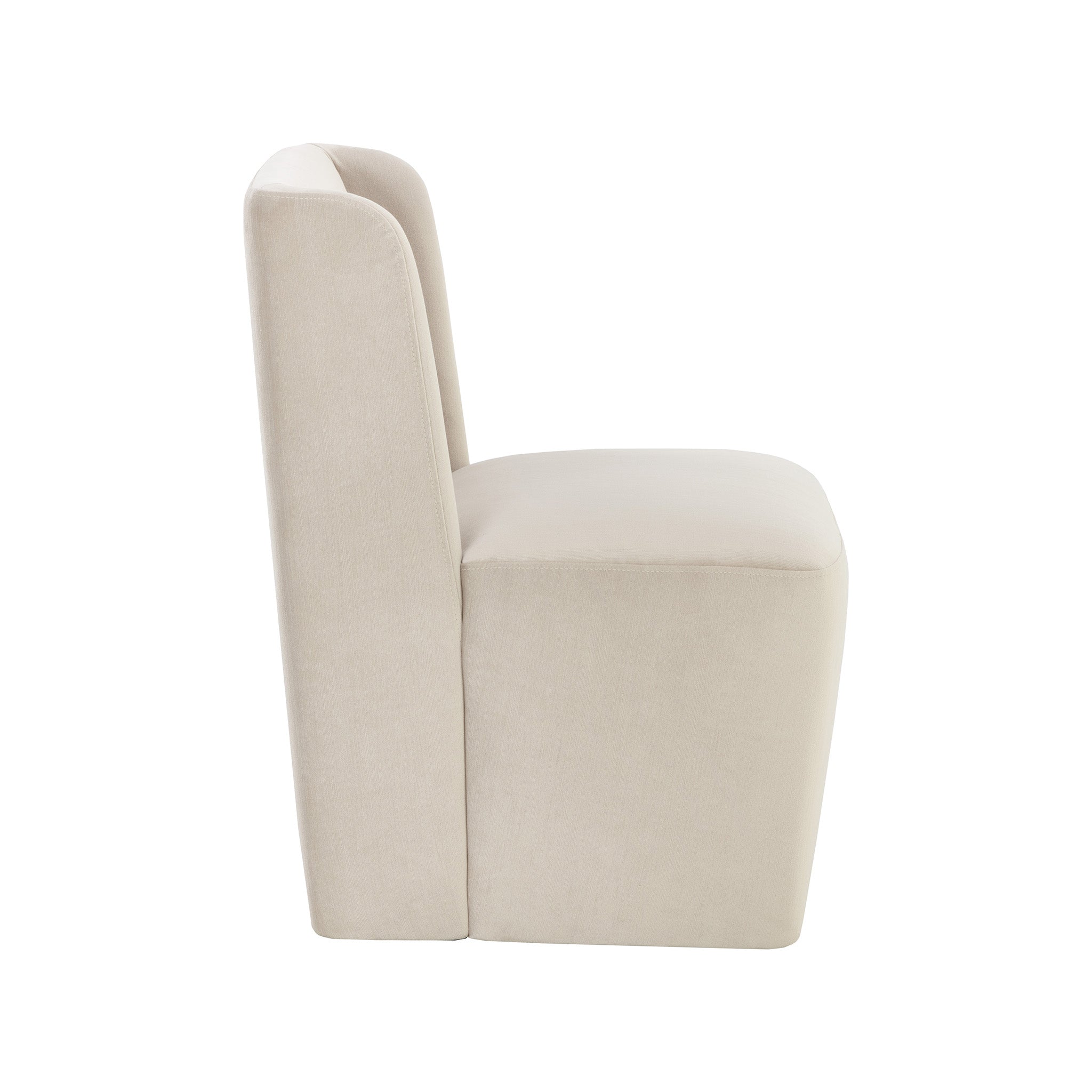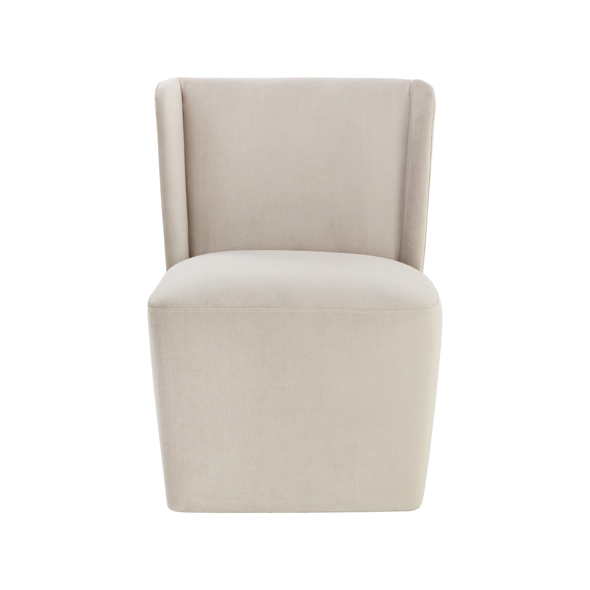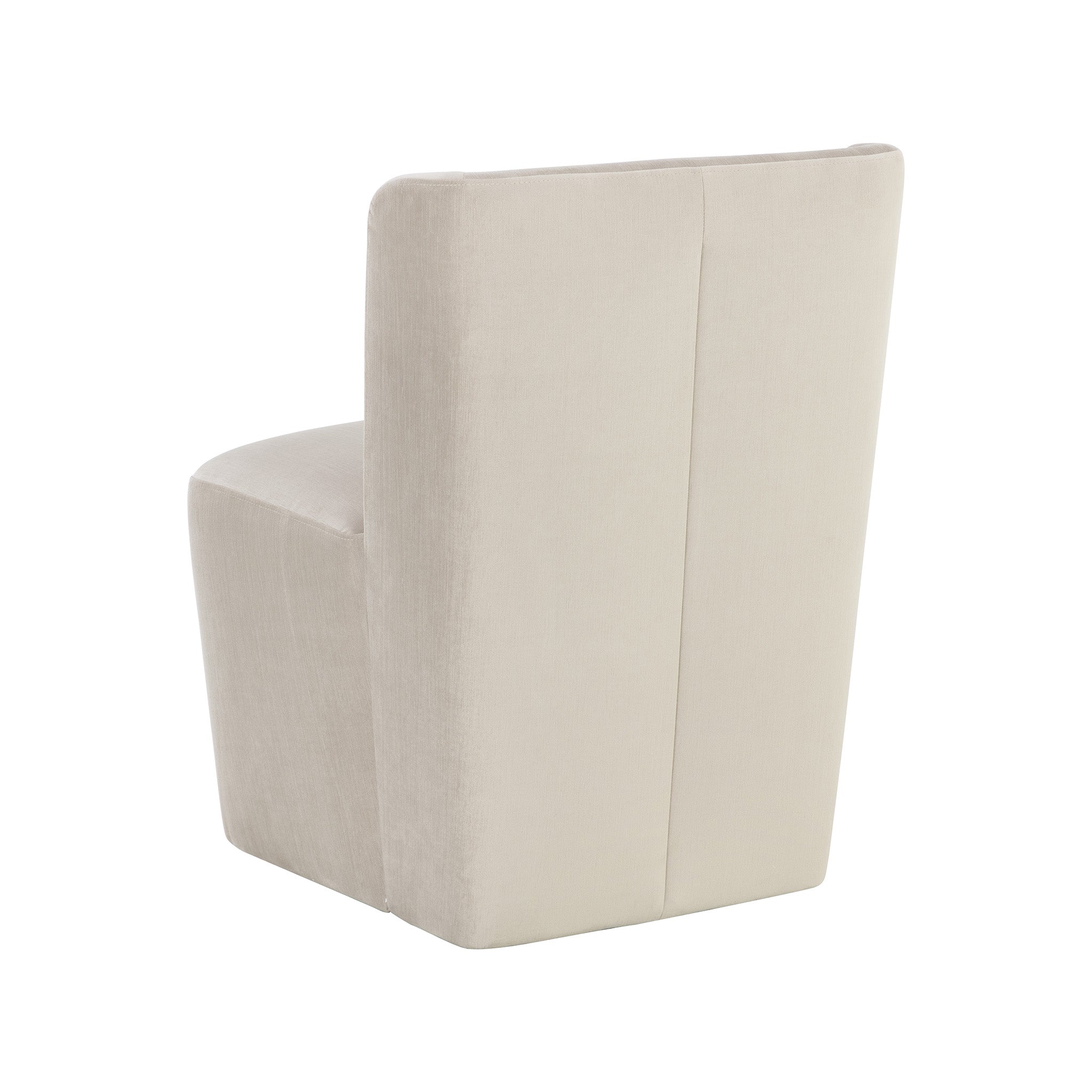Soft curves define the classic silhouette of the Collins Wheeled Dining Chair. Fully upholstered in our piccolo prosecco performance fabric for soft comfortable seating. Performance fabric is moisture repellent, durable and easy to clean.