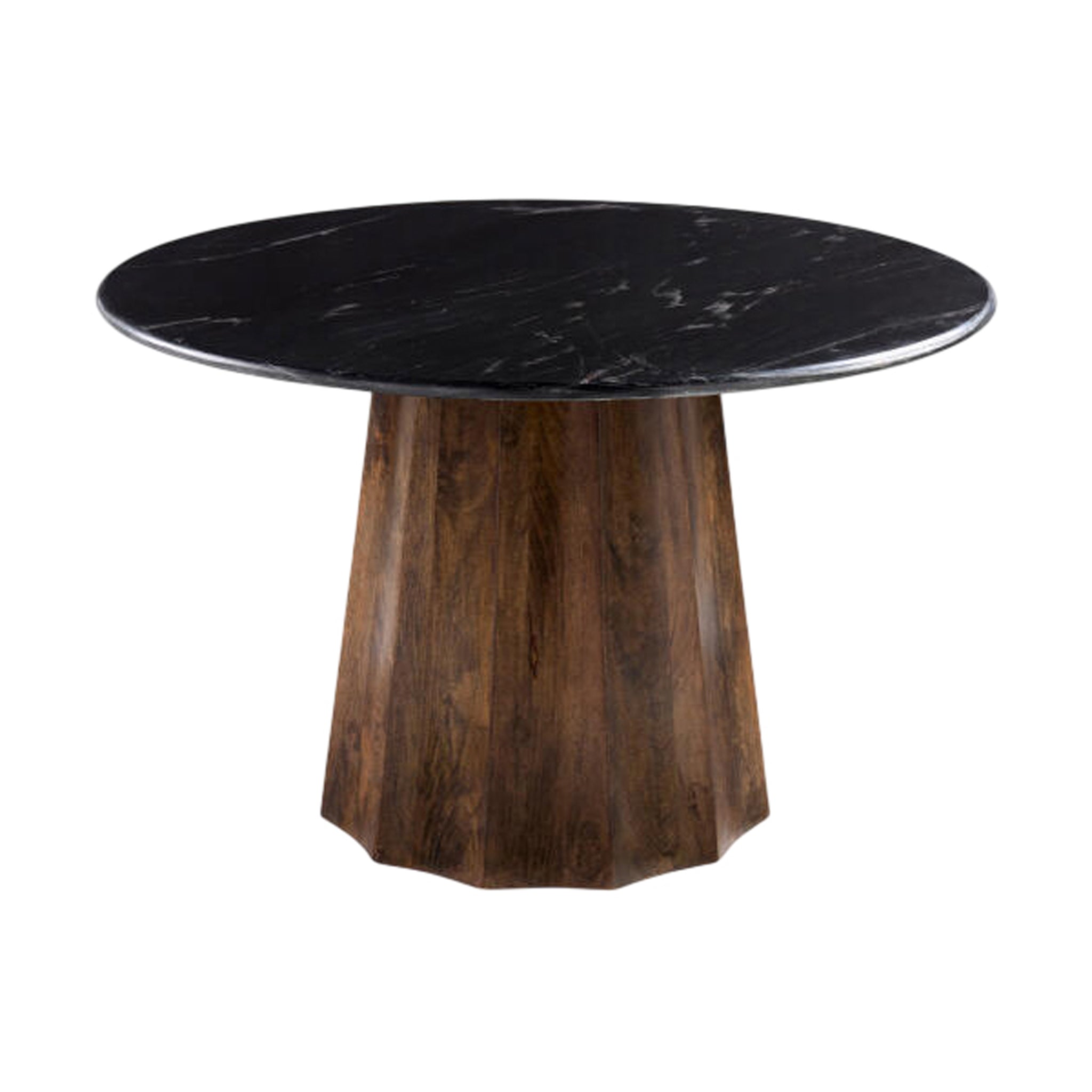 Dine in elegant style with the Linus Dining Table. This gorgeous table features a lustrous marble top that lends a touch of sophistication to any meal, while its sturdy mango wood base ensures durability and stability. Manufactured in India, this table combines tradition with modern flair to create a unique centerpiece for your dining area. Its beautiful style can effortlessly elevate any space, from casual breakfast nooks to formal dining rooms. Easy to maintain, this table only requires a simple wipe-down with a dry cloth, keeping it looking brand new without the need for harsh cleaners. Bring home the Linus Dining Table today and transform your dining experience into an exquisite affair!