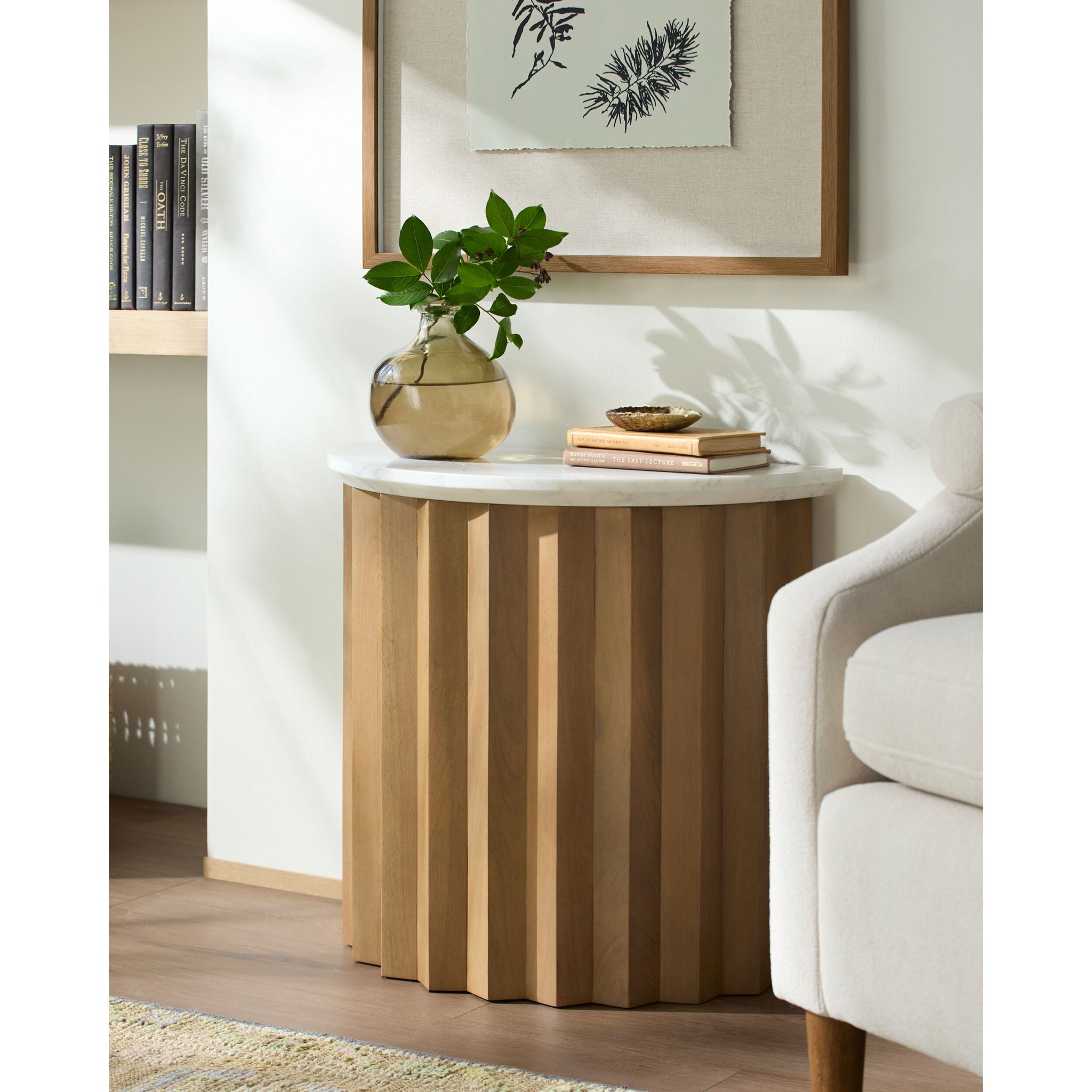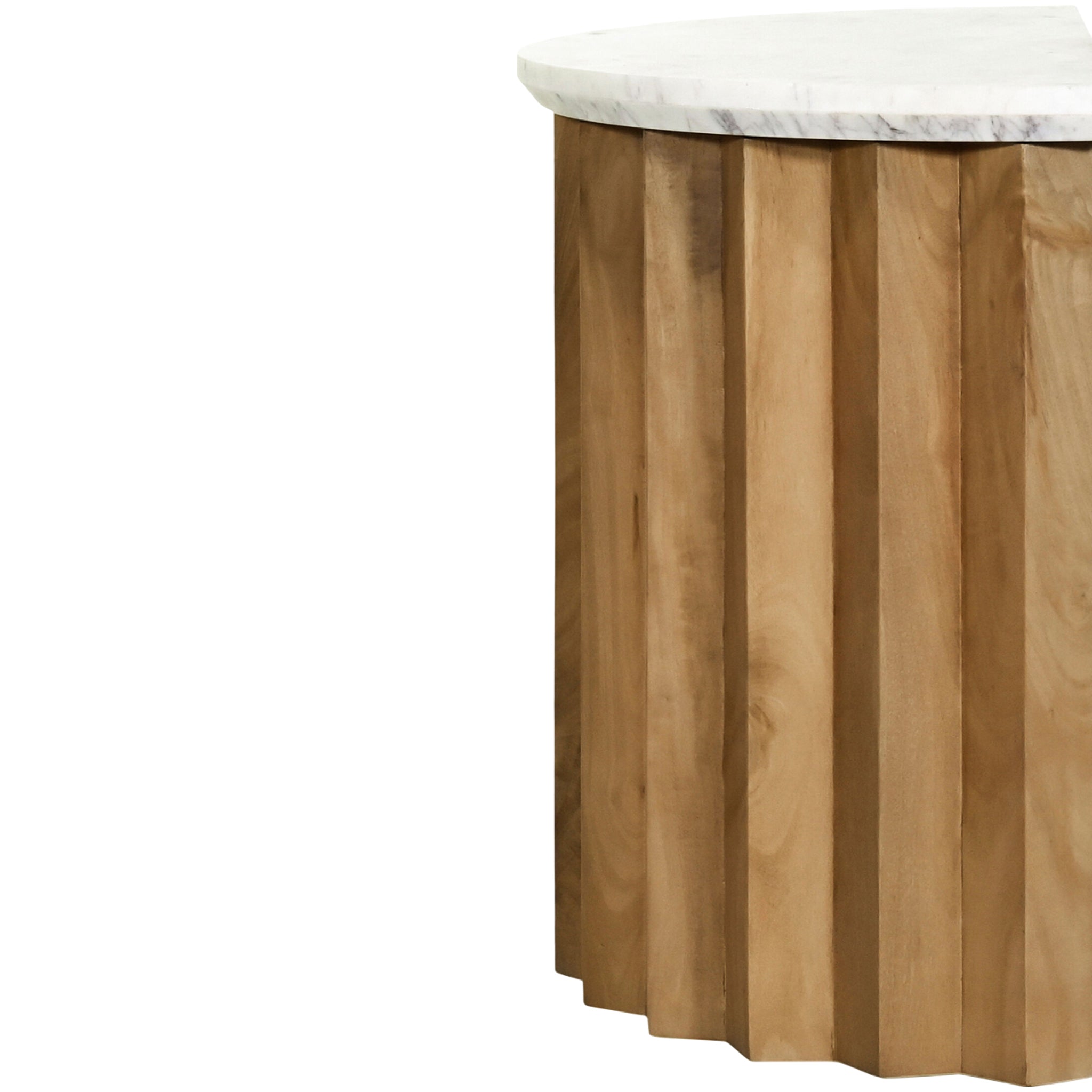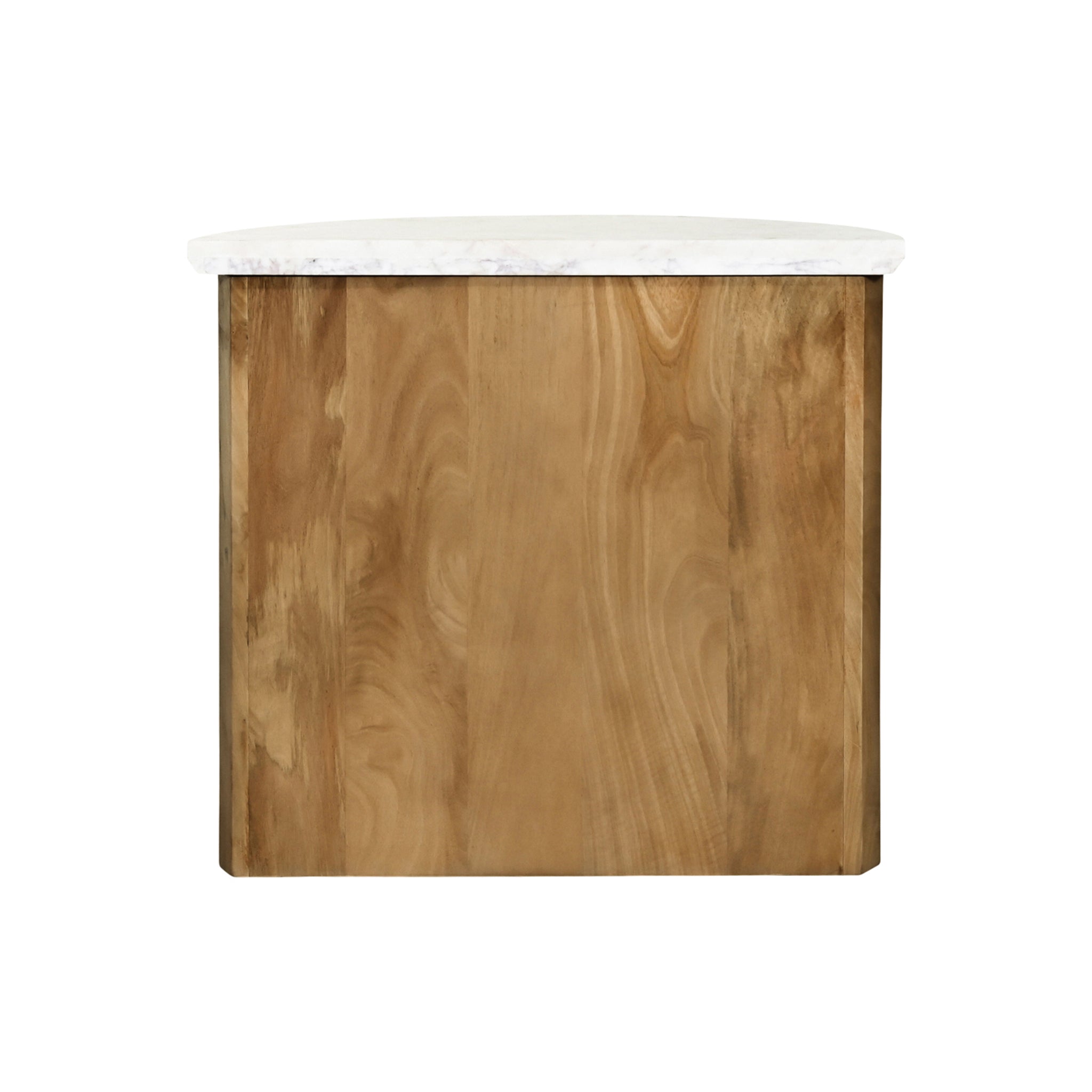 Introducing the Piestra End Table, an exemplary fusion of Minimalist Modern style with a touch of classic elegance. The stunning marble top exhibits a natural beauty that is both timeless and trendy, while the robust mango wood base provides excellent stability. This exquisite piece has been skillfully manufactured in India, ensuring its unique aesthetic aligns perfectly with your sophisticated taste. The Piestra End Table is easy to maintain; simply wipe it clean with a dry cloth to keep it looking its best. Please avoid harsh cleaners as they could potentially damage the impeccable finish. Add this versatile end table to your living space for a significant boost in both function and style!