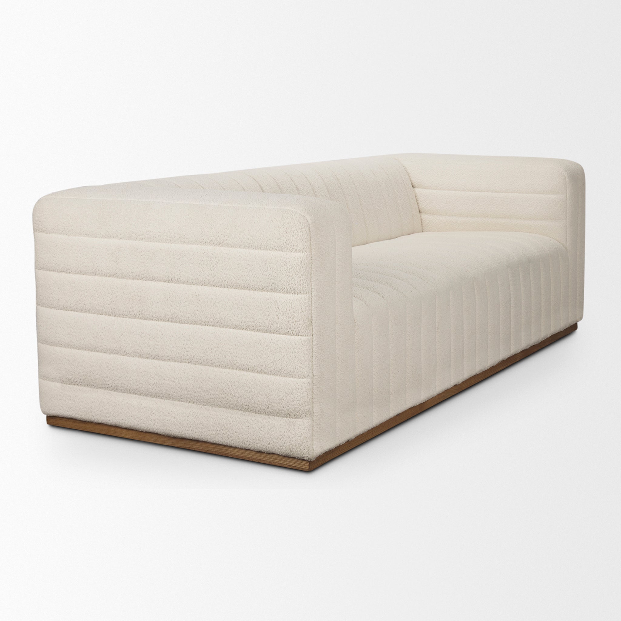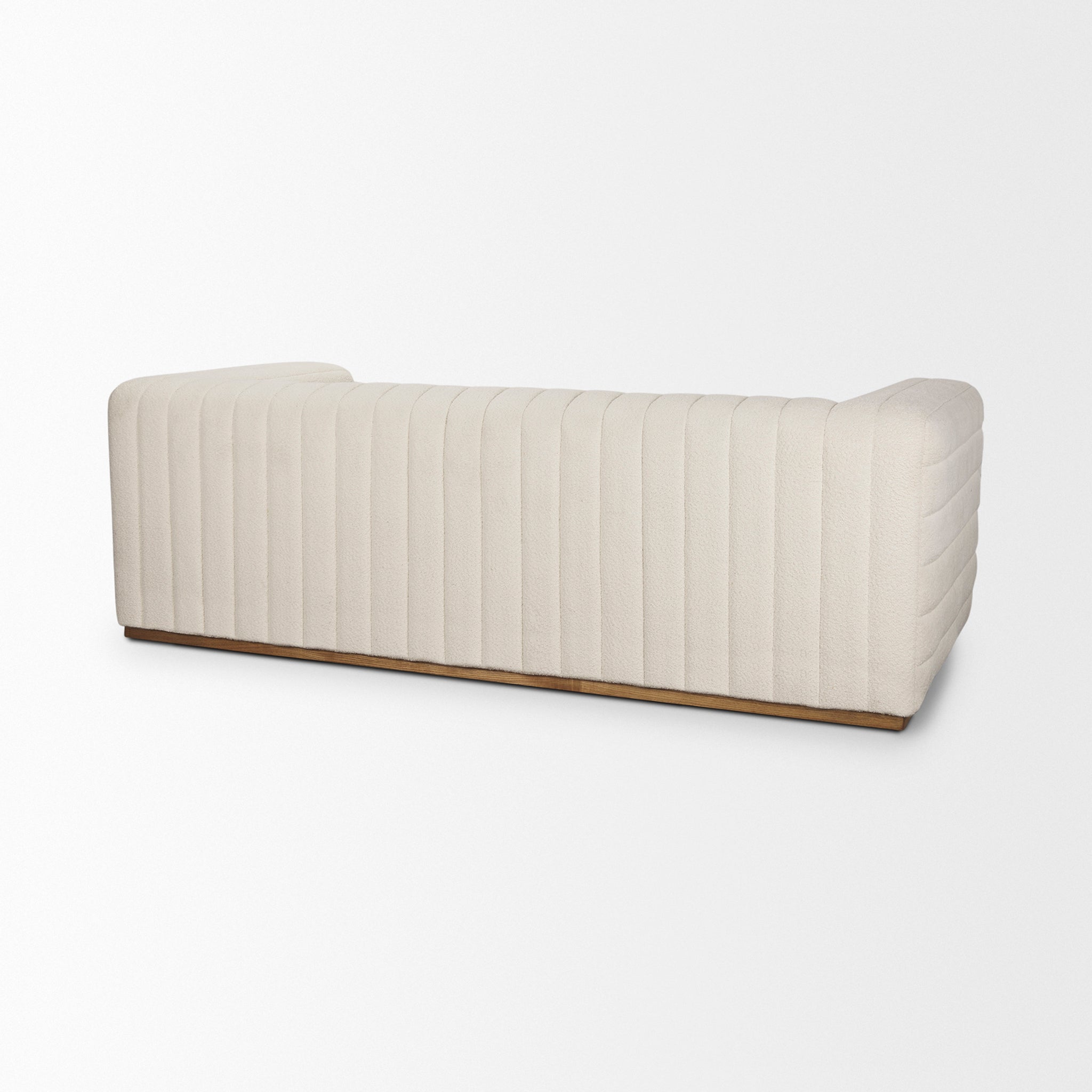 Update your living room with our stunning Randolph Bouclé 3-Seater Sofa, which is both a masterpiece of comfort and style. Featuring plush exquisite bouclé fabric in a neutral cream tone to match any decor, our sofa is designed with ribbed channels that evoke texture and visual appeal. Sink into its comfy cushions and experience the perfect setting for both relaxation and entertaining guests. Crafted with durability in mind, this couch boasts a sturdy frame for long-lasting quality. Upgrade your living space with the Randolph Cream Bouclé 3-Seater Sofa, where every detail, from the textured fabric to the overall design, exudes luxury and refinement.