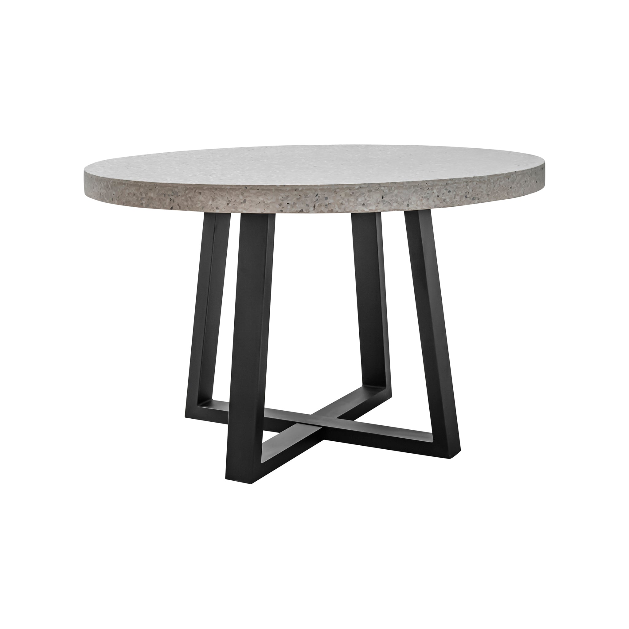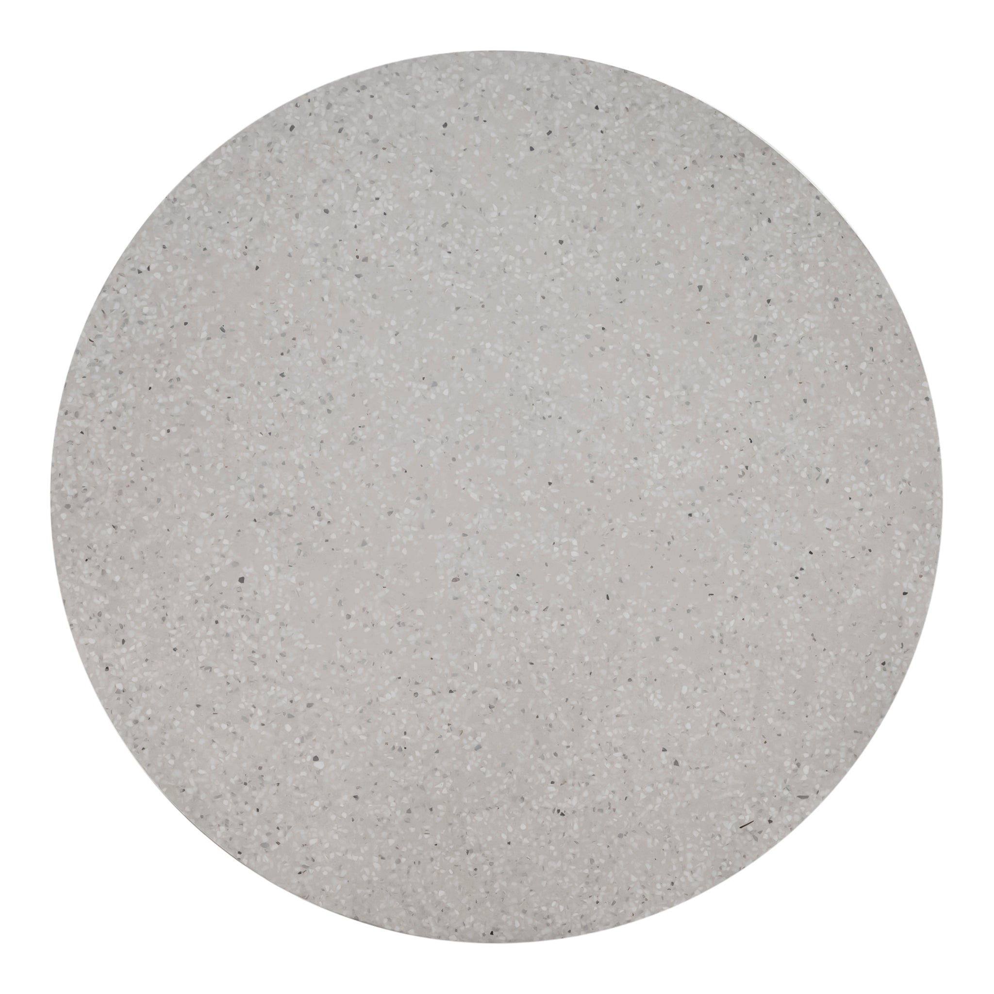 The Dieppe dining table is a solid addition to your modern dining room. This dining table features white, lightweight terrazzo atop an iron base. The round shape of the table allows for easy flow in your living space.