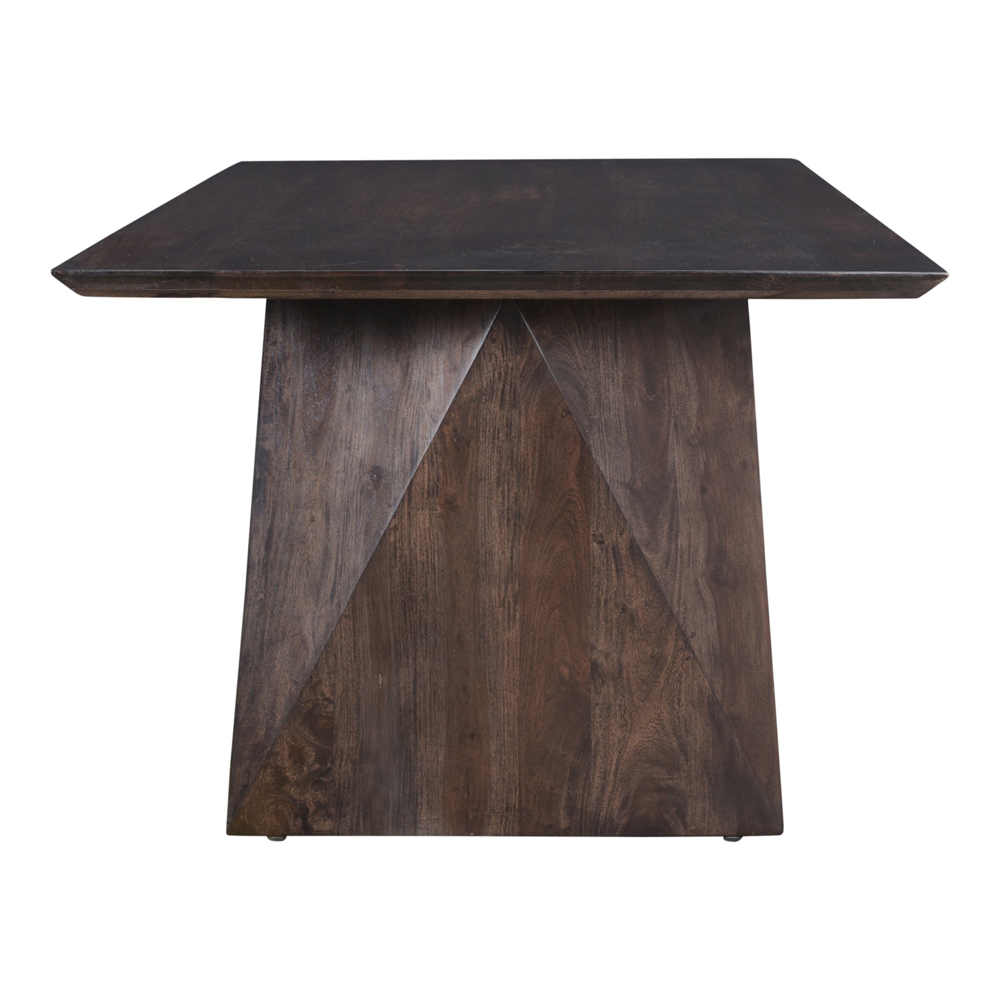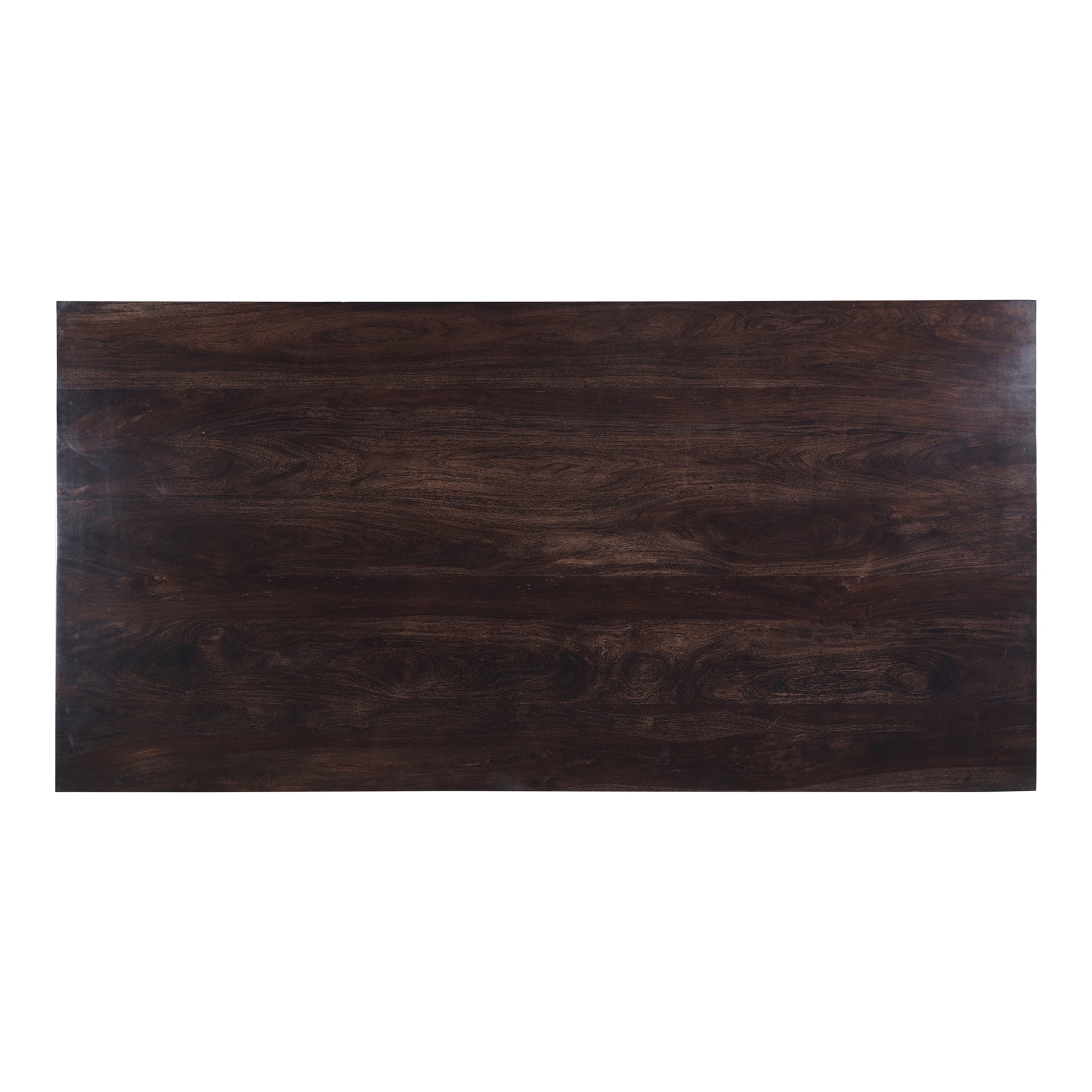 The Rotherdam dining table is a contemporary piece of dining room furniture that seats up to 8 people. Crafted from solid Sheesham wood with a smoky brown finish, it is incredibly durable and easy to care for. Its beauty lies in the details, from the inward sloping edges to the mirrored leg design.