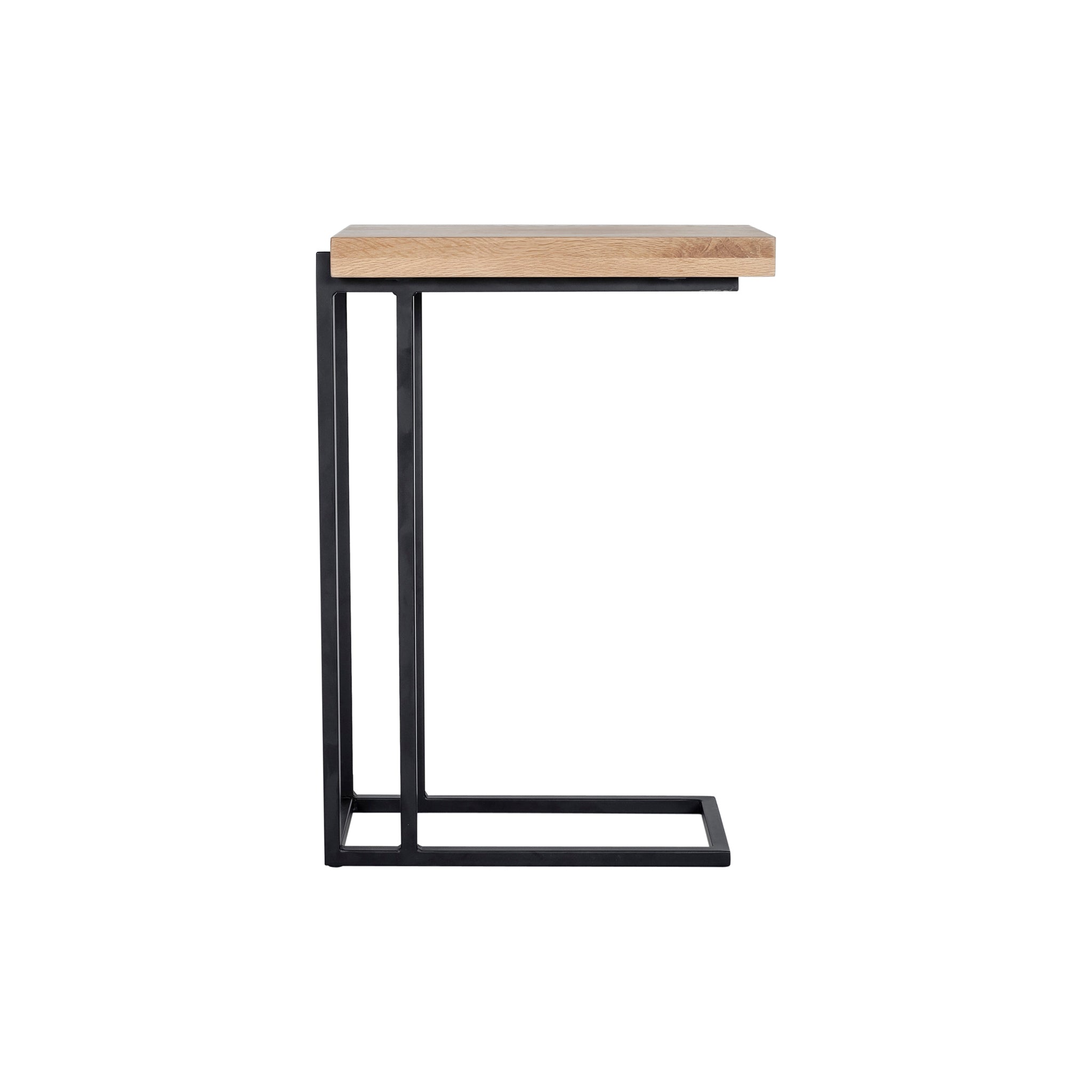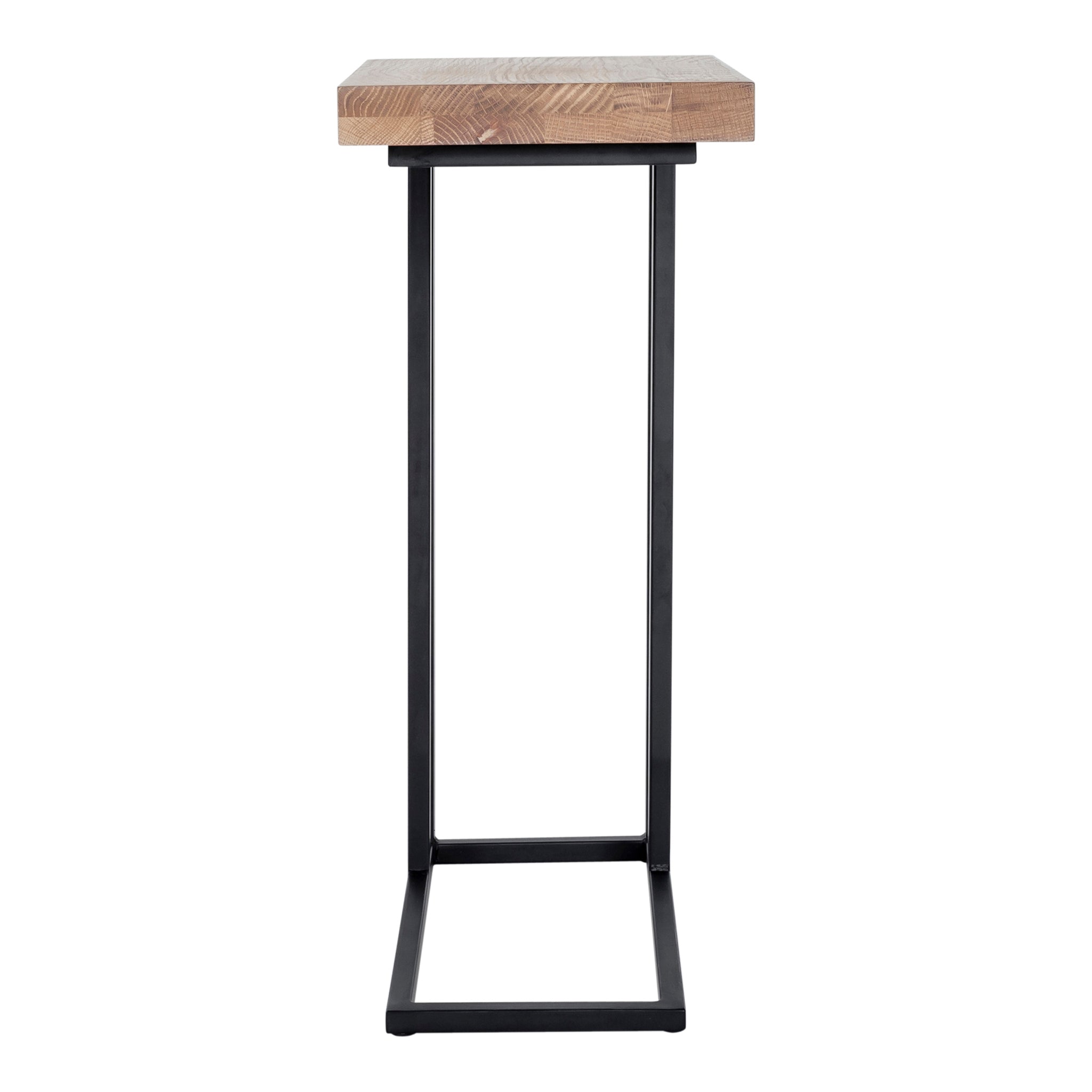 The Glasgow collection features richly textured solid oak with its own unique knots, whorls, and woodgrain. Strong metal legs give it a stylish industrial finish. With one tier and a slim frame, the Glasgow C shape side table comfortably fits into any space in your home for a put-together look that keeps everything from keys to mail to accessories safe.