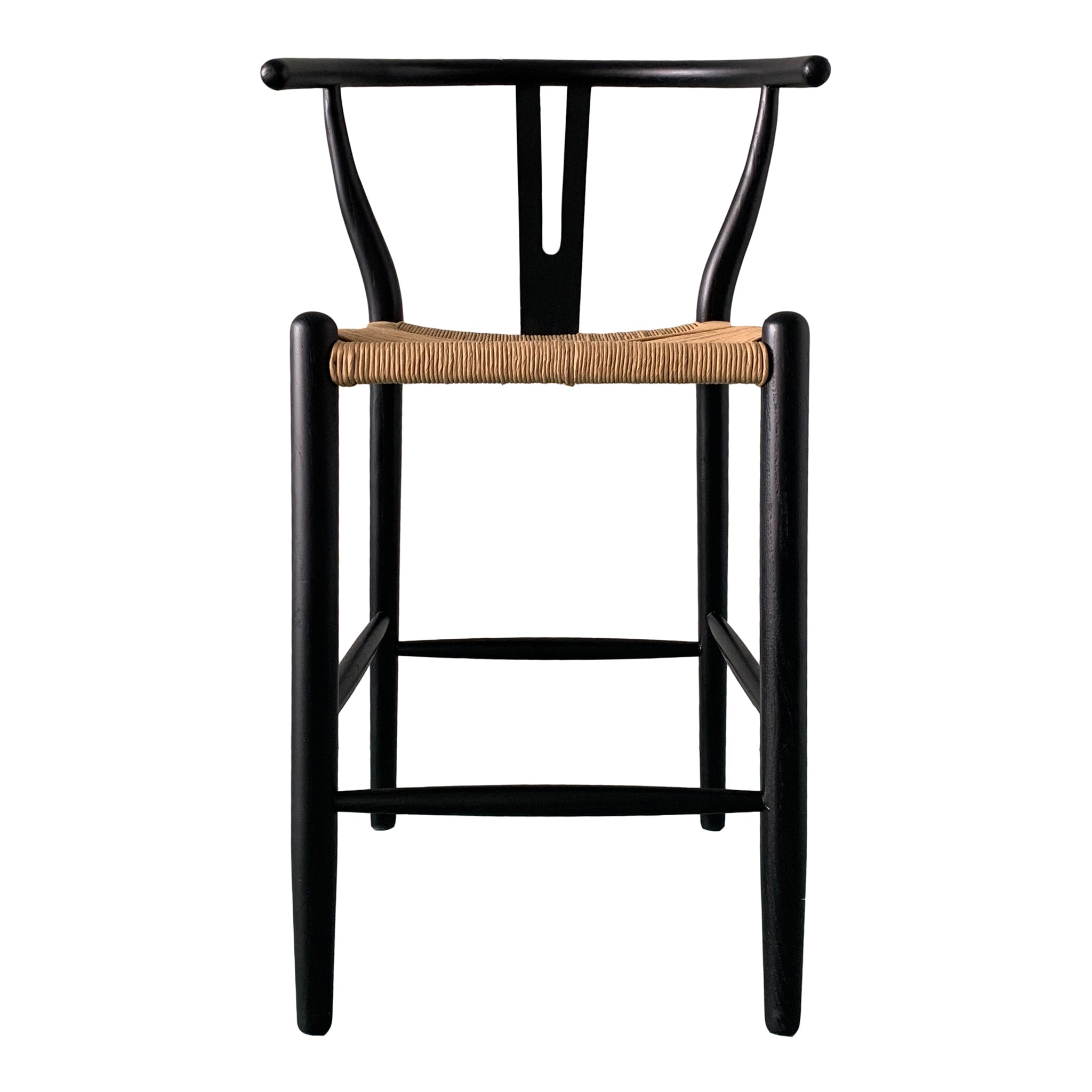 The Fleetwood counter stool flaunts a sturdy construction, contemporary woven paper fiber seat, and convenient wrap-around footrest. Dressed in natural elements, these designs are simple but diverse. Fitting for bar or counter-height, this stylish stool’s frame is composed of solid elm wood with a black, semi-gloss finish, while its fiber seat is stunning in a natural color scheme. The Fleetwood design comes in various heights and shapes to better suit your home needs.